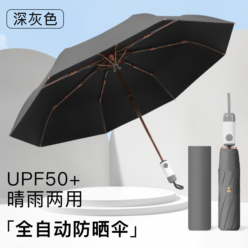 완전 자동 3 배 우산 접히는 우산 검은 고무 선 스크린 햇살 우산 맑고 비 이중 사용 우산 로고 광고 선물 우산