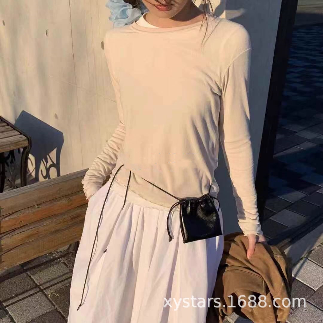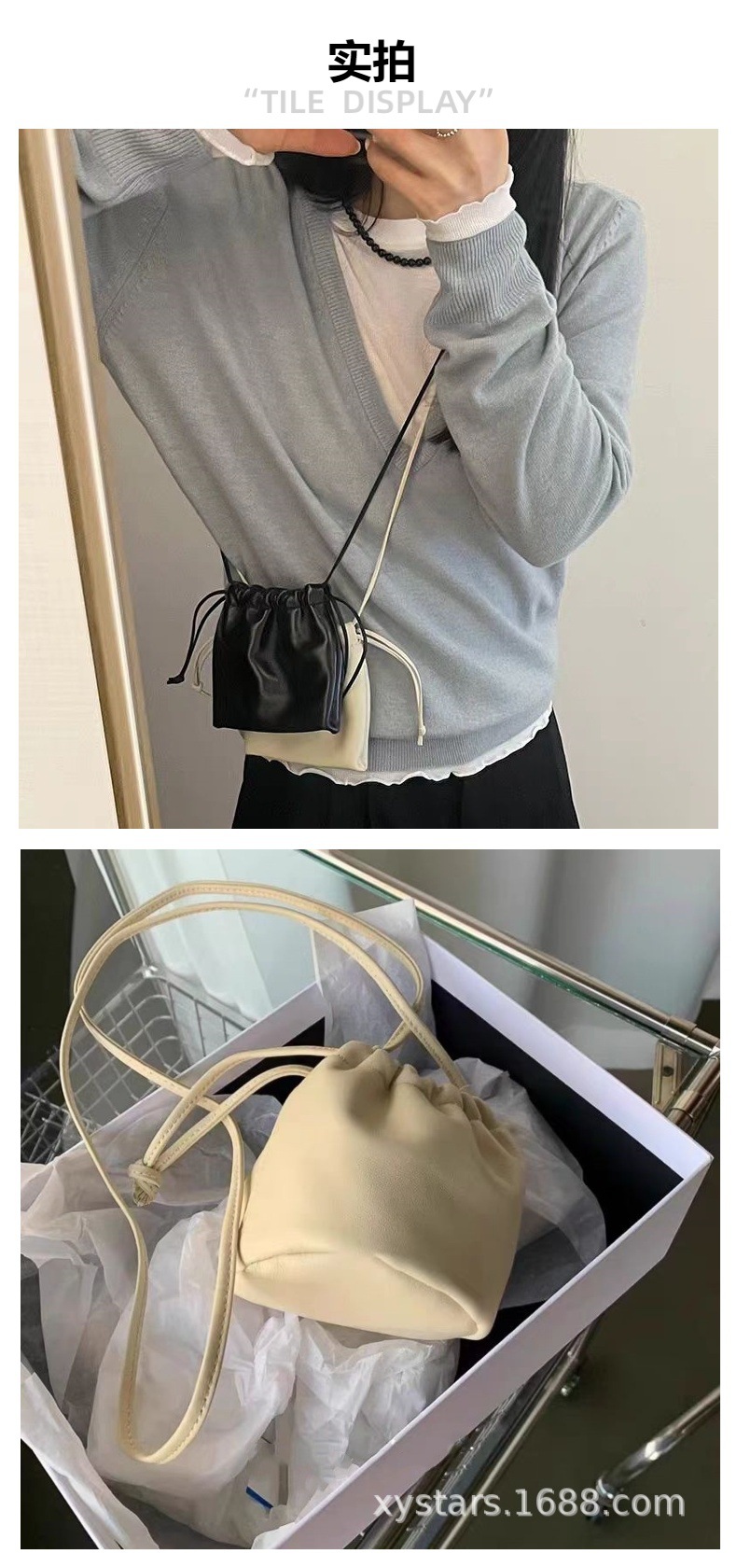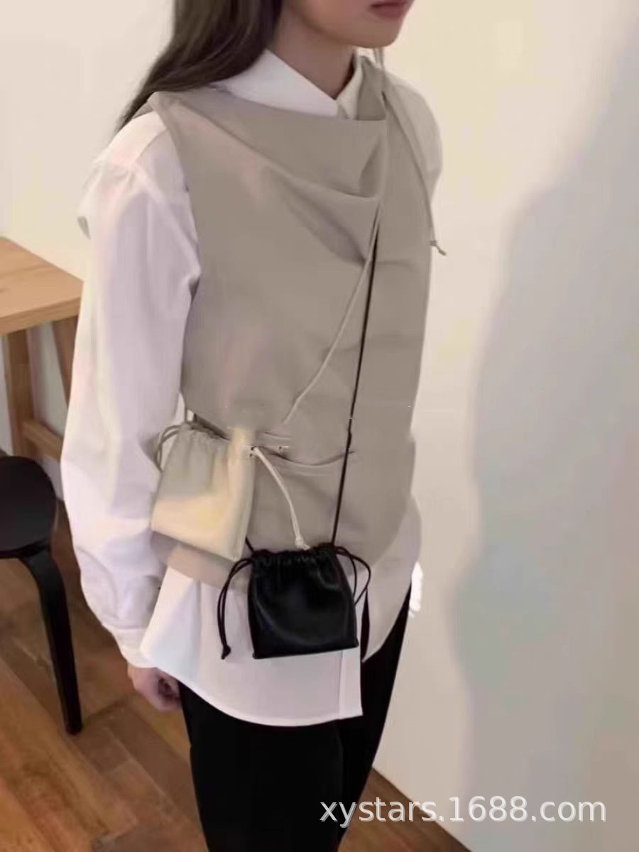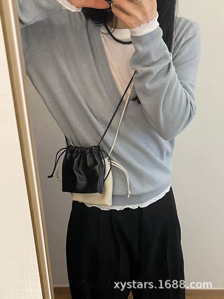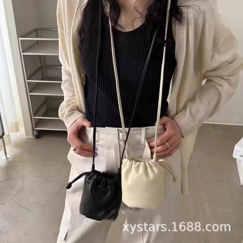 한국 동대문 드로스트링 크로스 바디 버킷 작은 가방 한국 가방 목 동전 지갑 버킷 가방