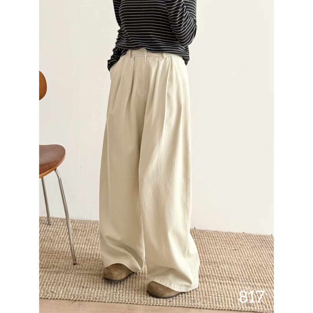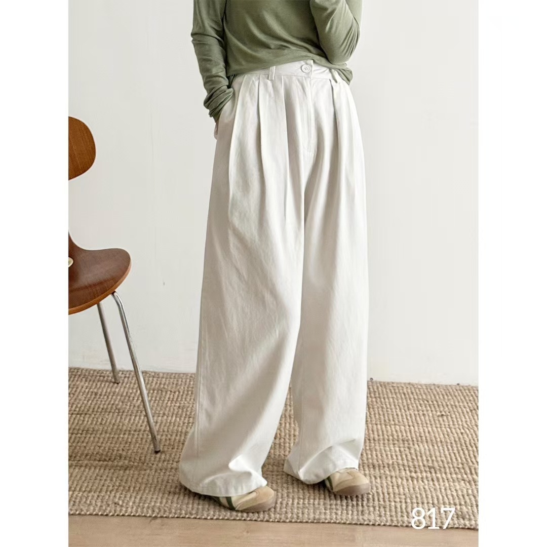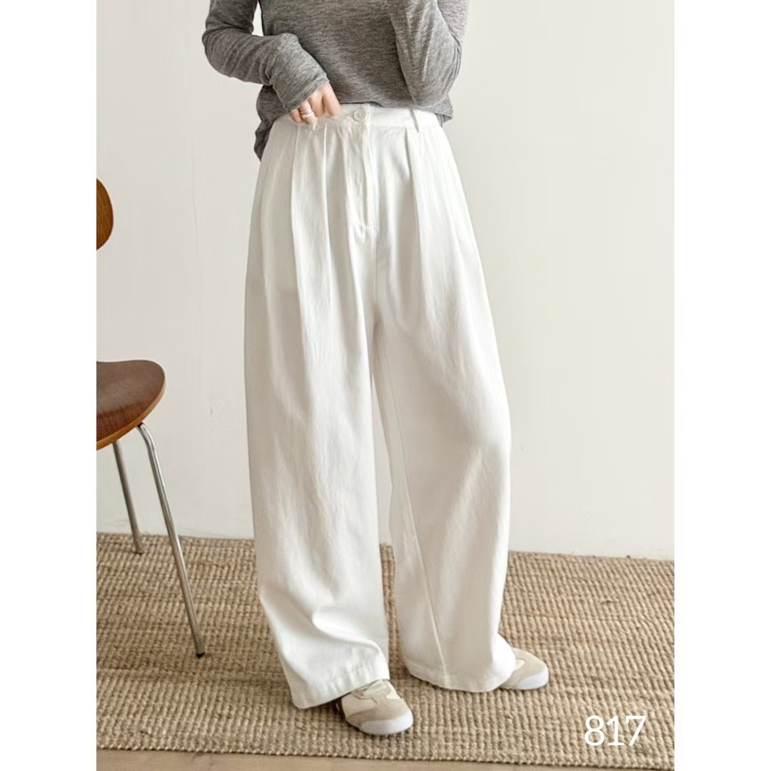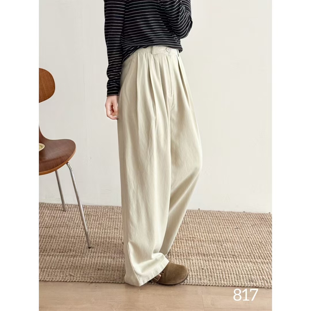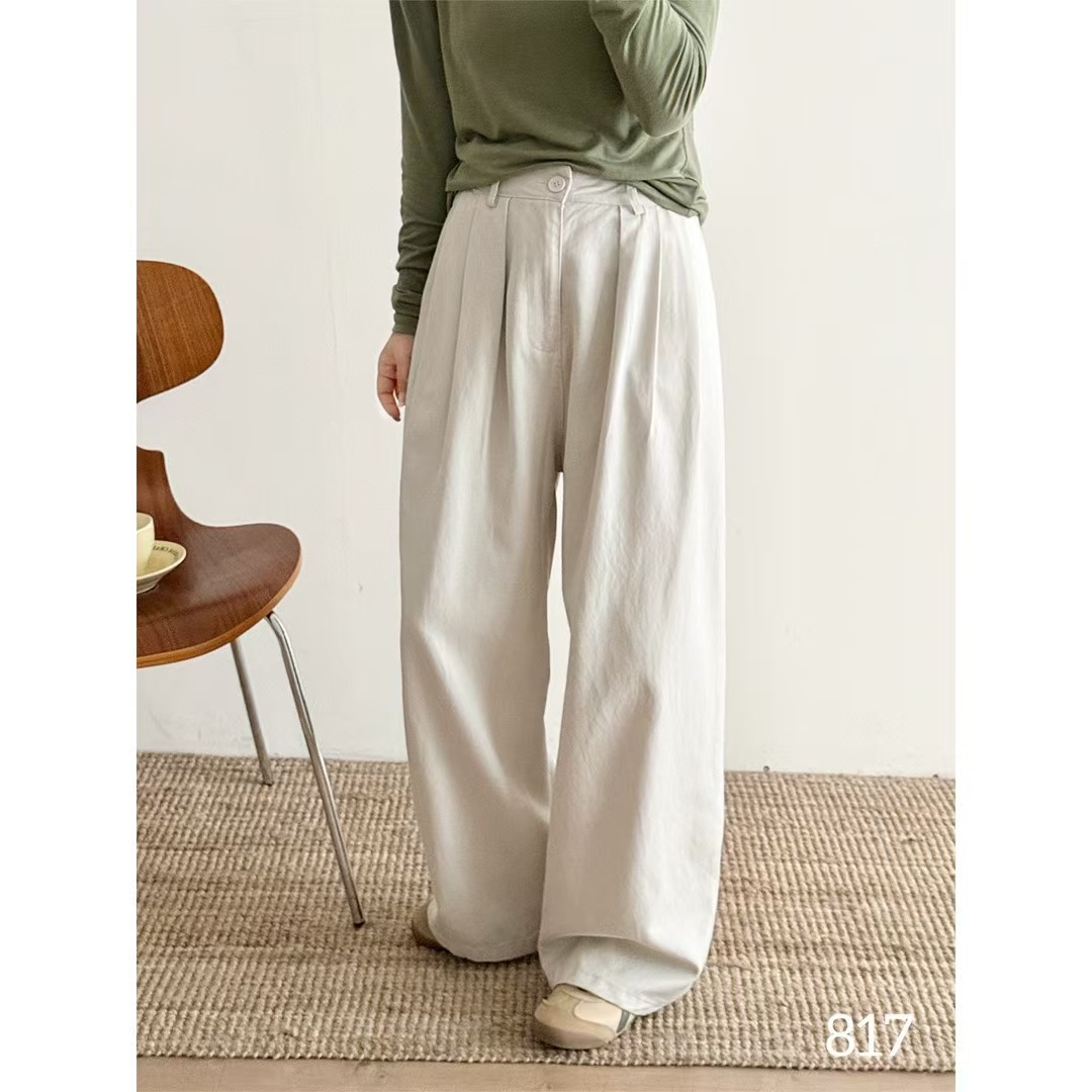 솔리드 컬러 주름 느슨한 직선 캐주얼 바지 여성의 2025 봄 새로운 높은 허리 슬리밍 넓은 다리 바지스토어 가기