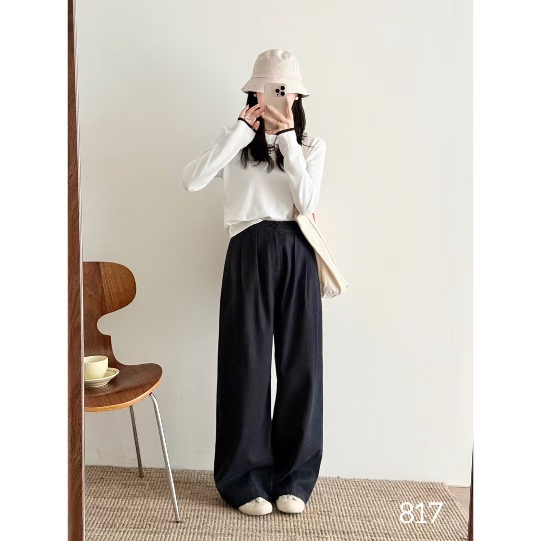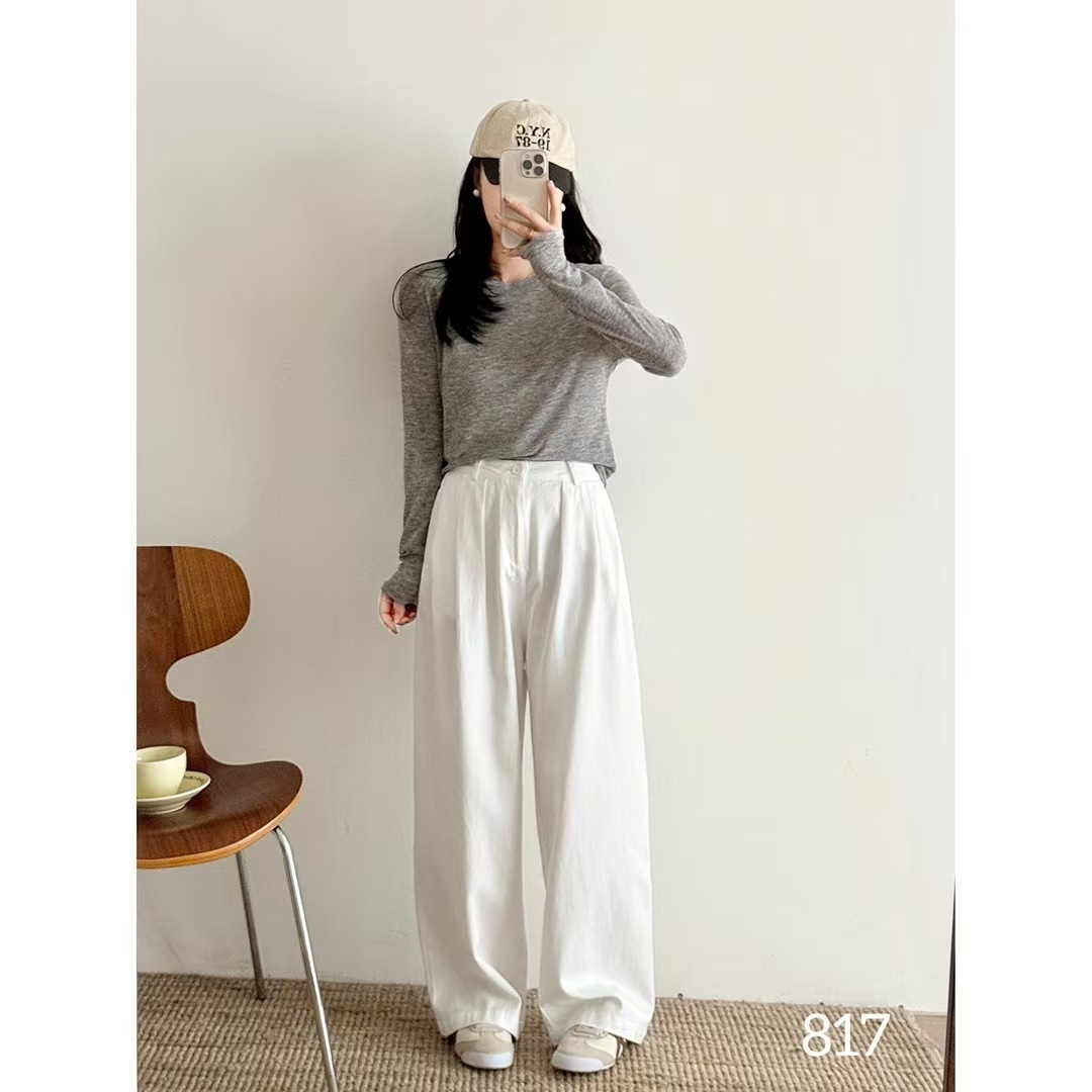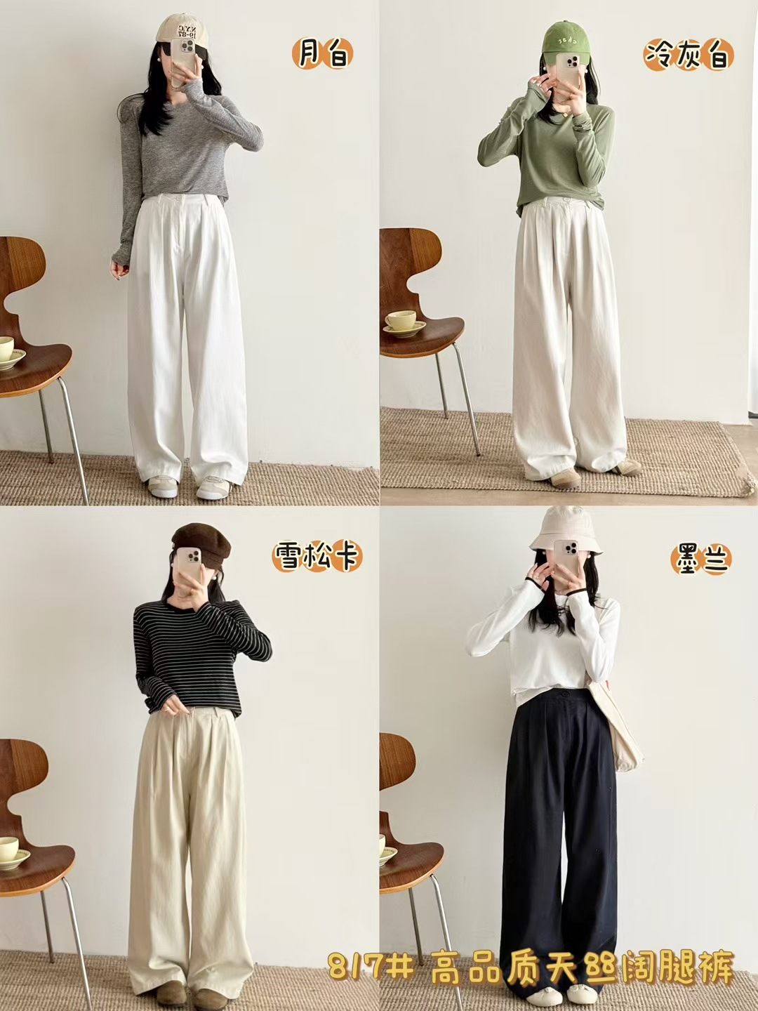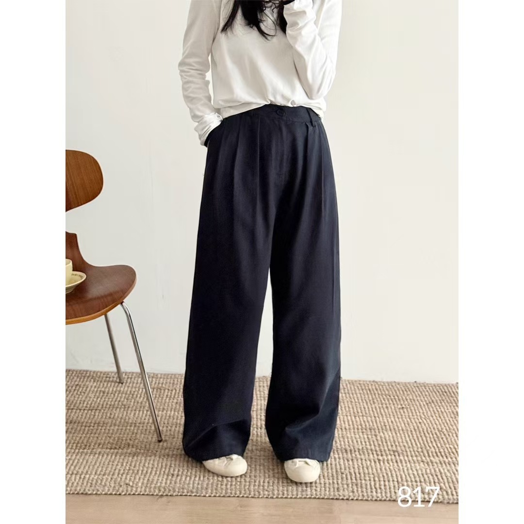 솔리드 컬러 주름 느슨한 직선 캐주얼 바지 여성의 2025 봄 새로운 높은 허리 슬리밍 넓은 다리 바지스토어 가기