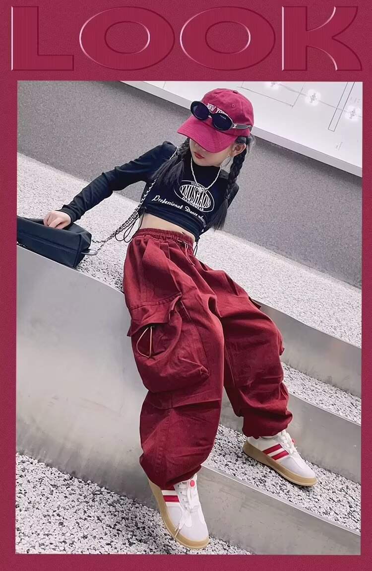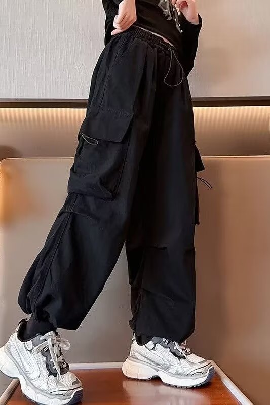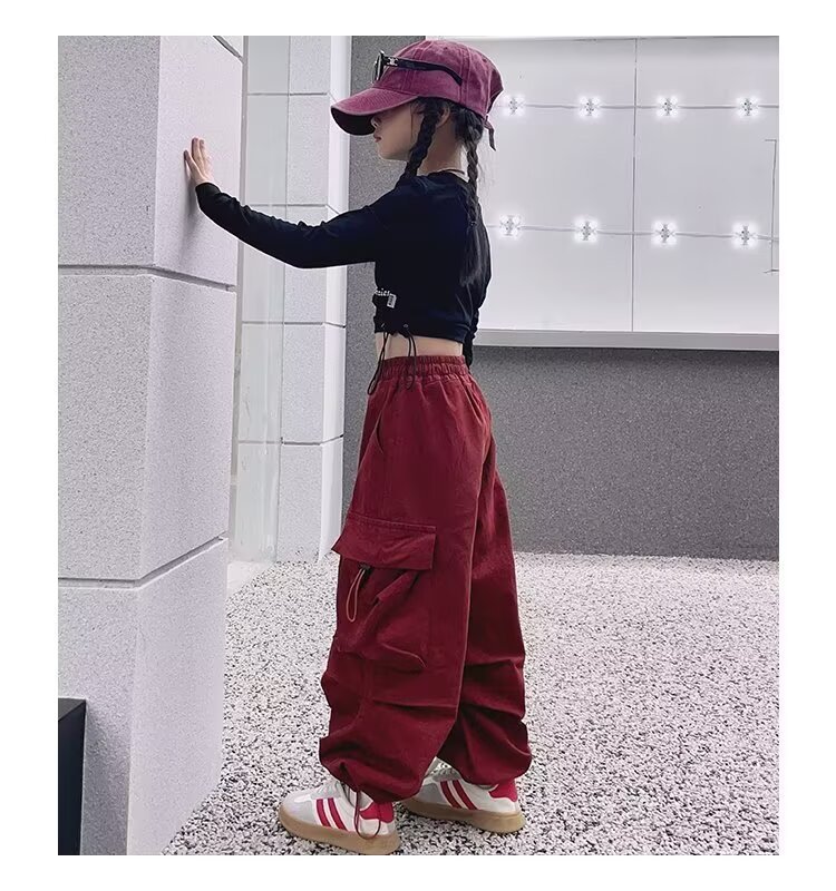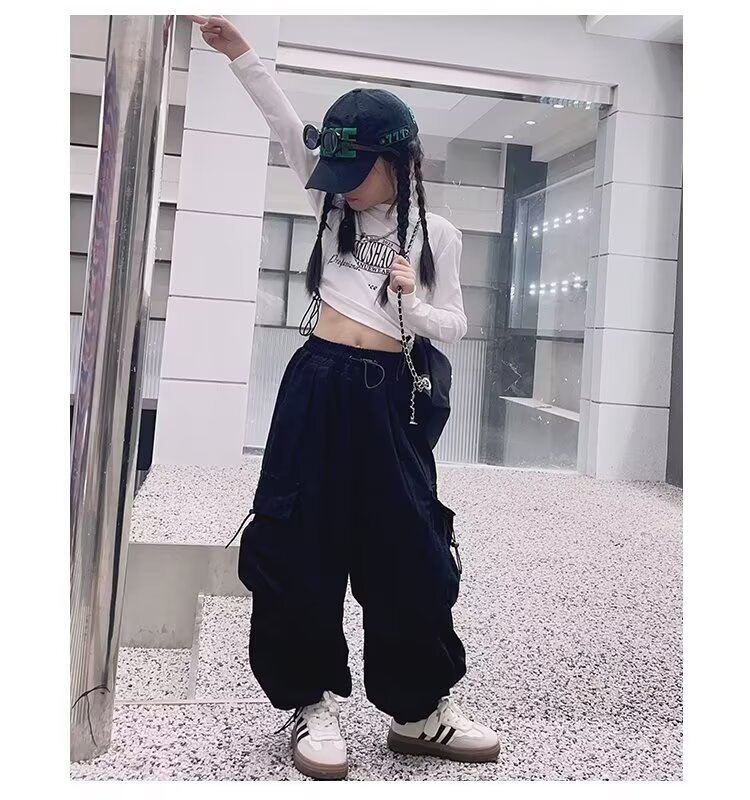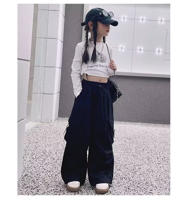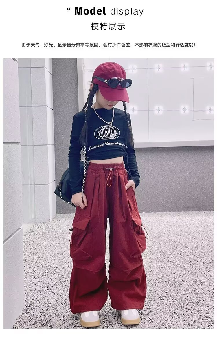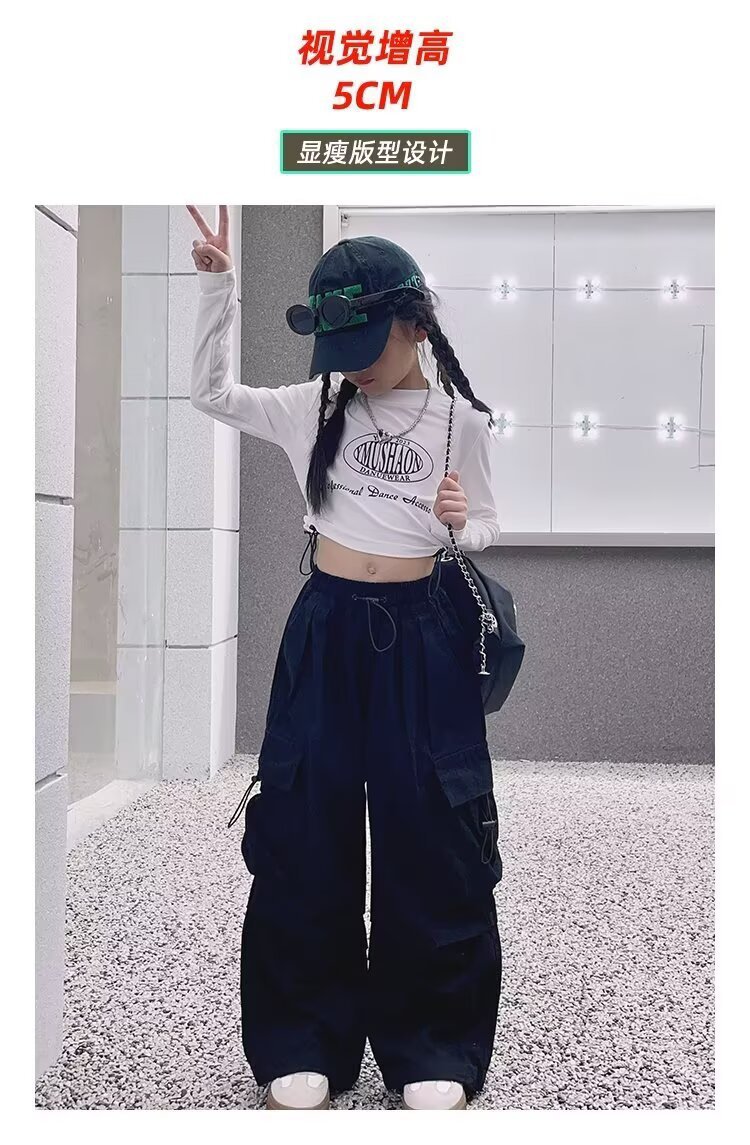 여자 바지 튀긴 거리 재즈 댄스 바지 여성용 큰 어린이 봄과 가을 넓은 다리 바지 어린이 느슨한 캐주얼 바지 외국 스타일스토어 가기