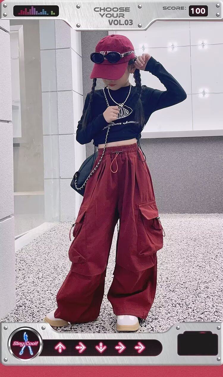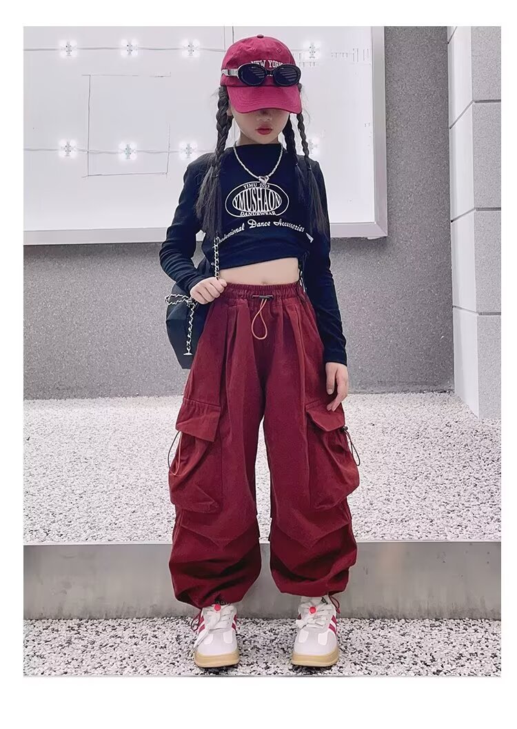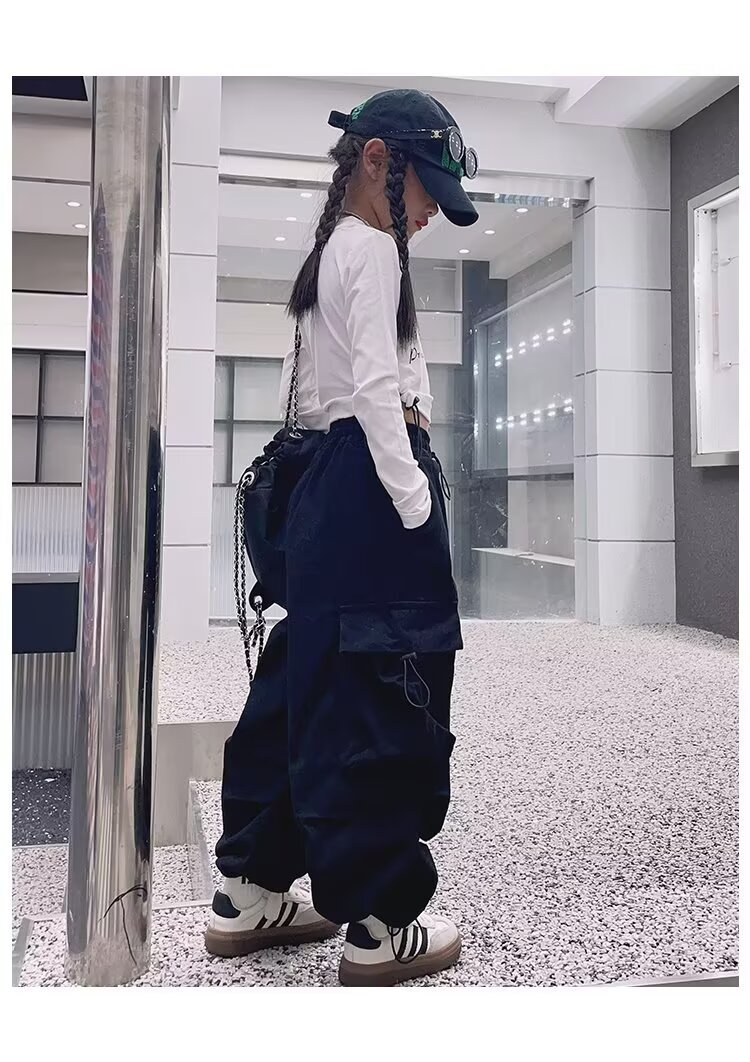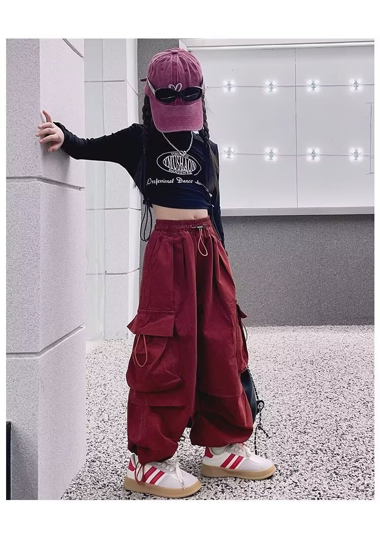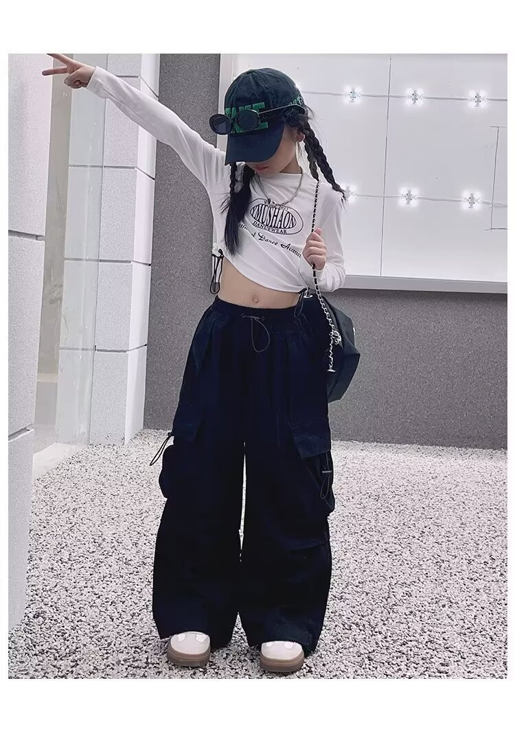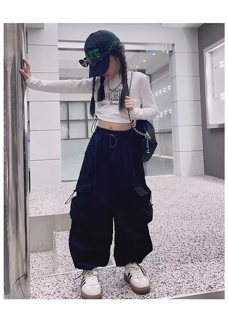 여자 바지 튀긴 거리 재즈 댄스 바지 여성용 큰 어린이 봄과 가을 넓은 다리 바지 어린이 느슨한 캐주얼 바지 외국 스타일스토어 가기