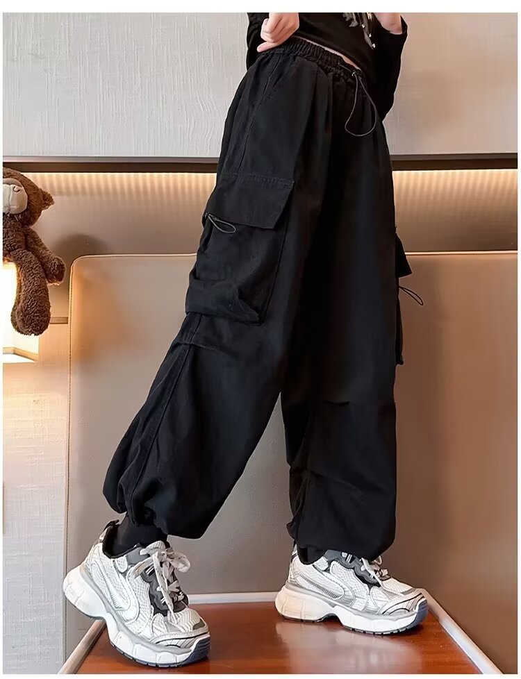 여자 바지 튀긴 거리 재즈 댄스 바지 여성용 큰 어린이 봄과 가을 넓은 다리 바지 어린이 느슨한 캐주얼 바지 외국 스타일
