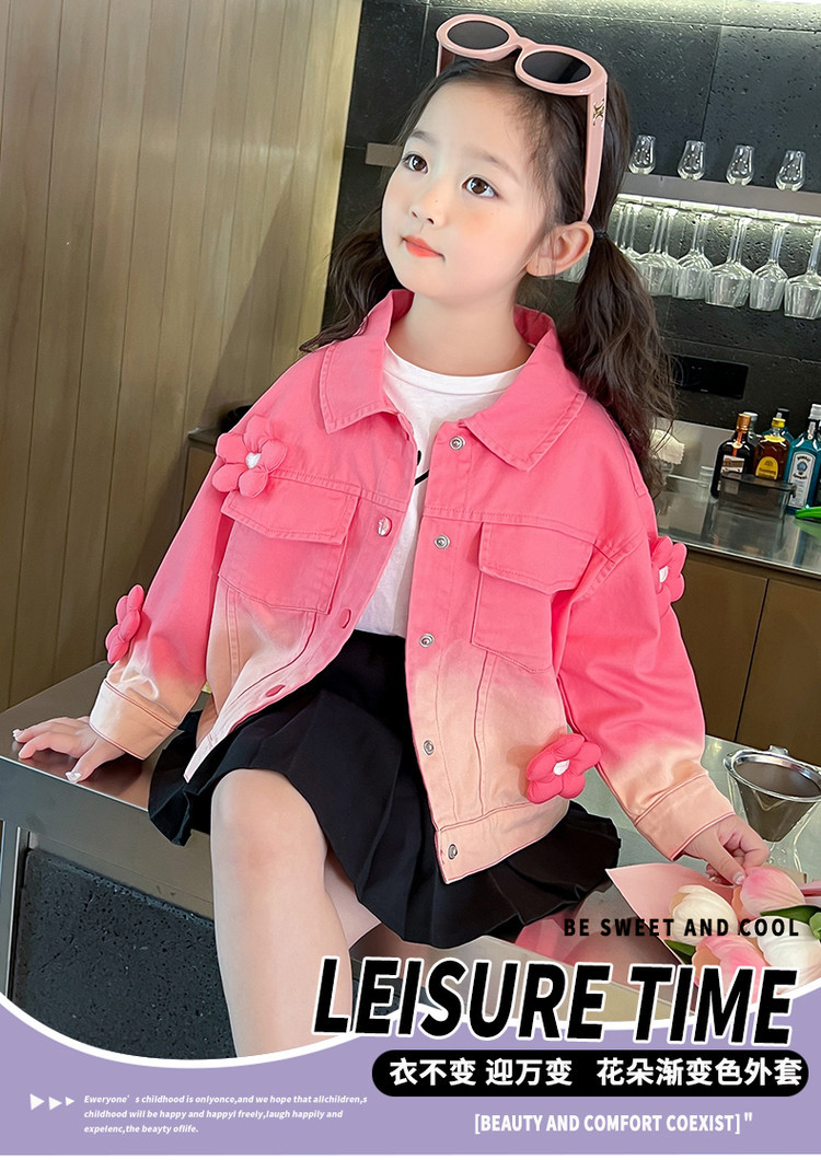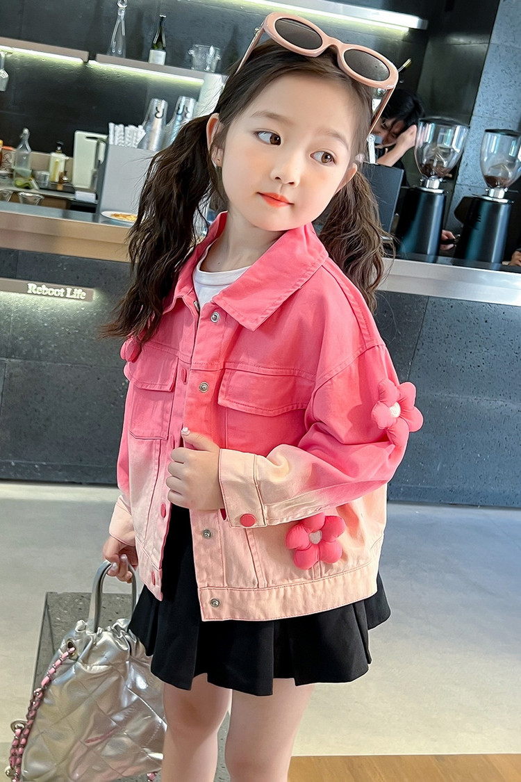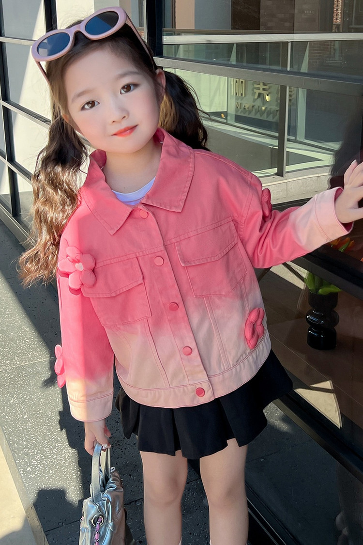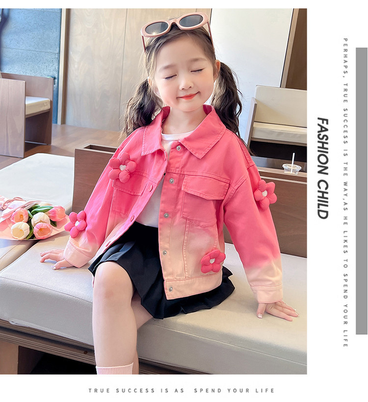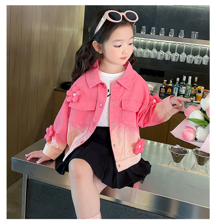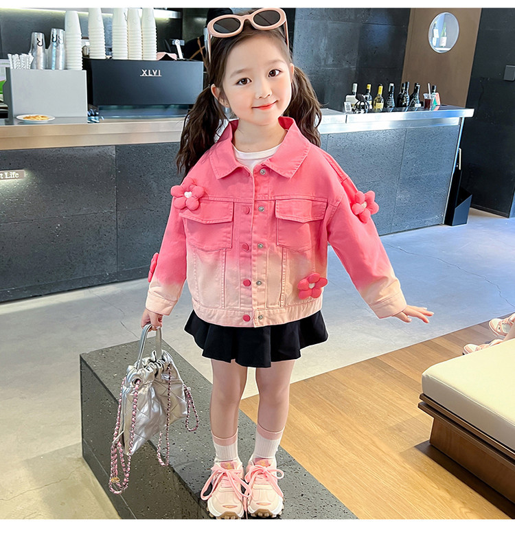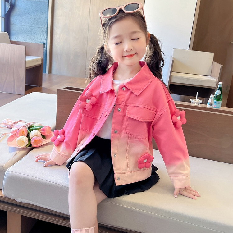 소녀의 꽃 매달려 염료 데님 코트 봄과 가을 서양 스타일 2025 새로운 도착 아기 소녀의 올 매치 캐주얼 자켓