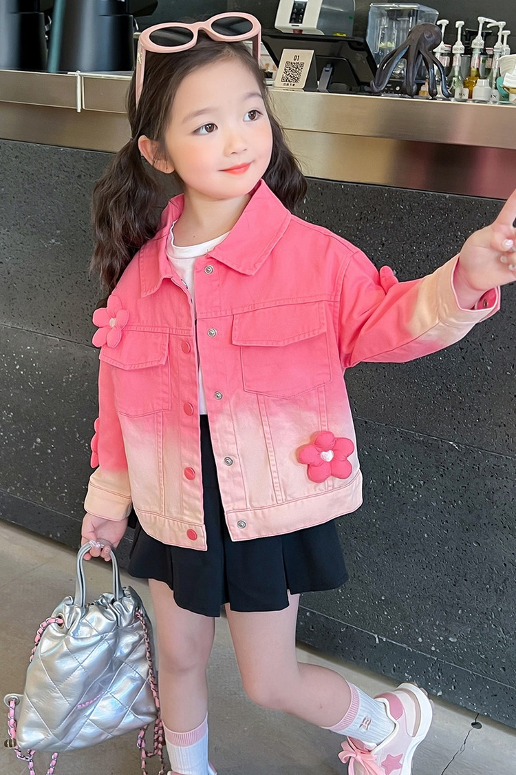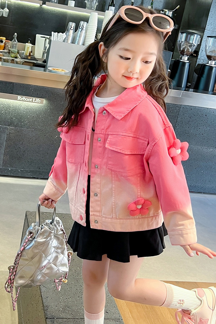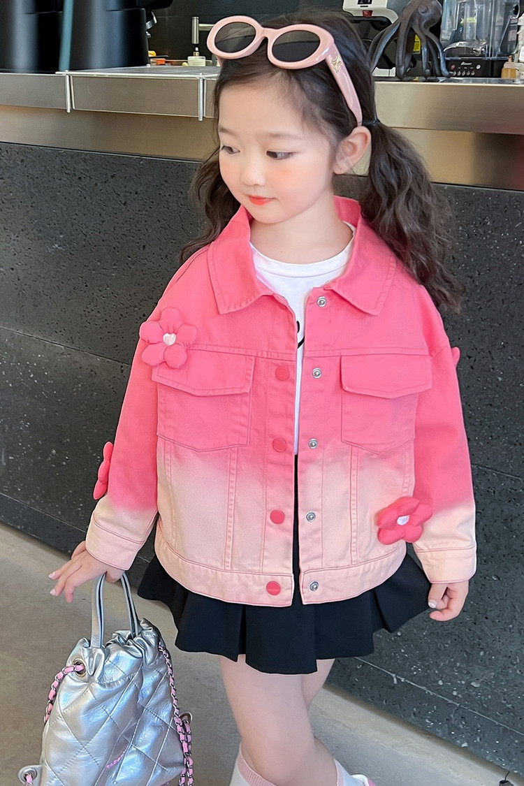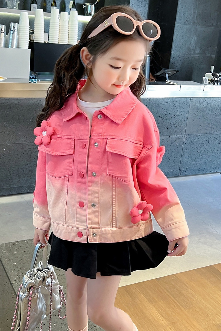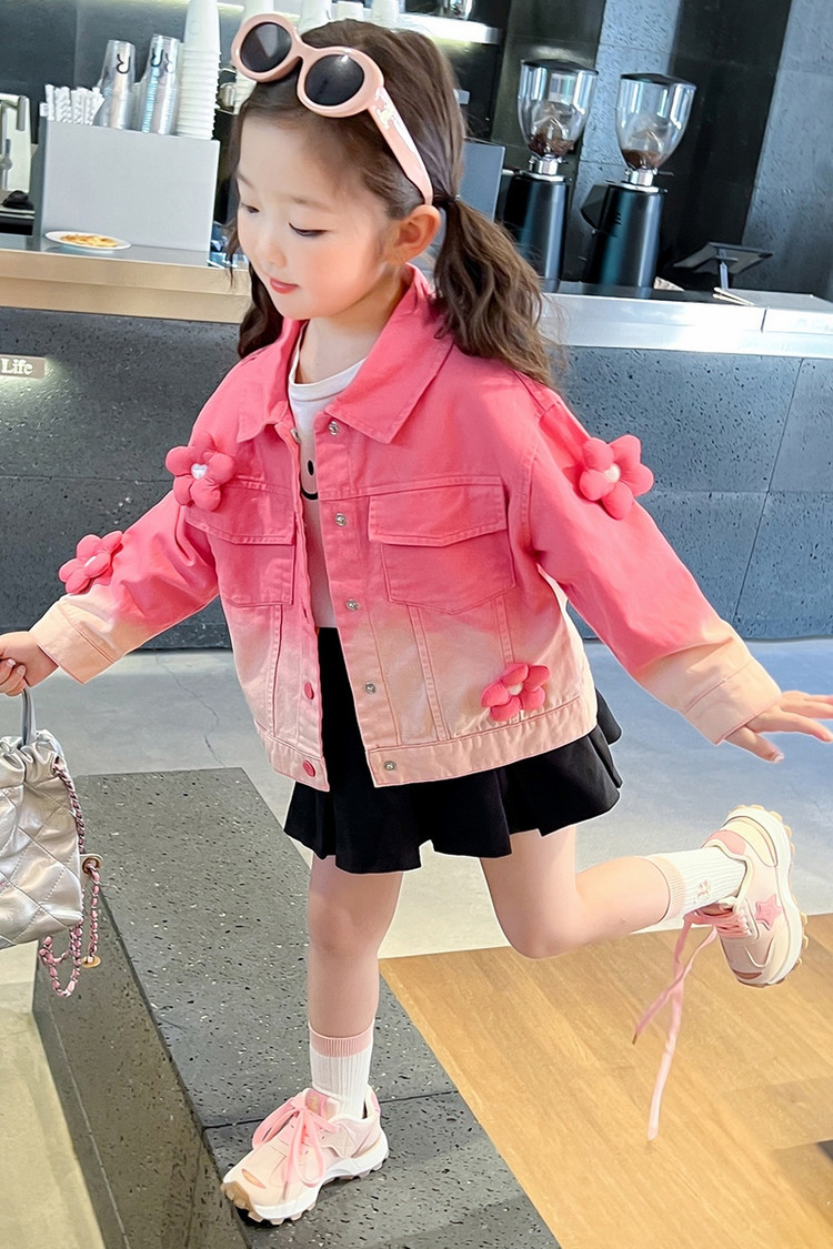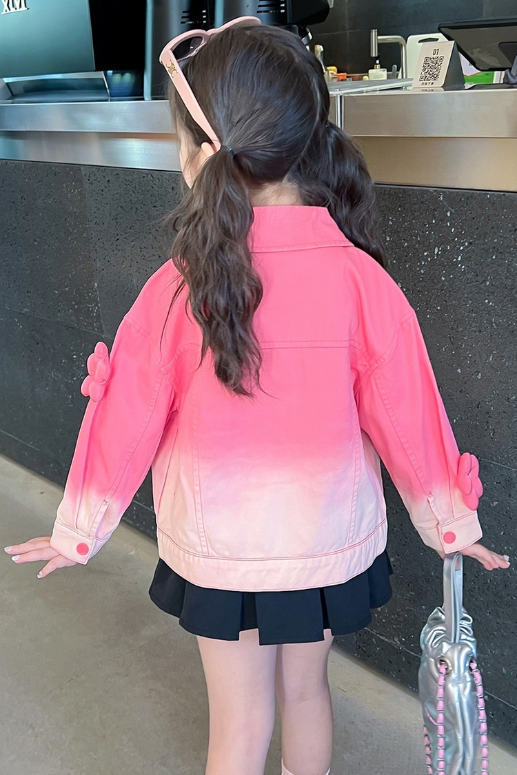 소녀의 꽃 매달려 염료 데님 코트 봄과 가을 서양 스타일 2025 새로운 도착 아기 소녀의 올 매치 캐주얼 자켓