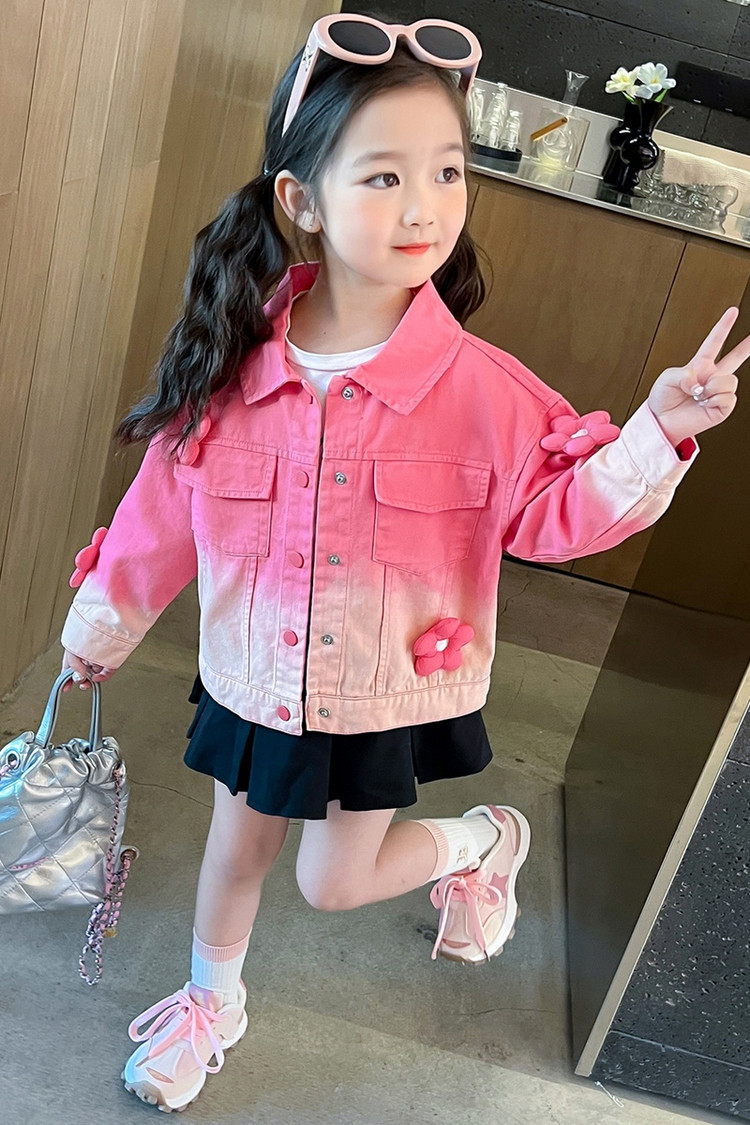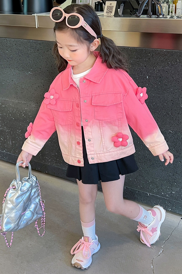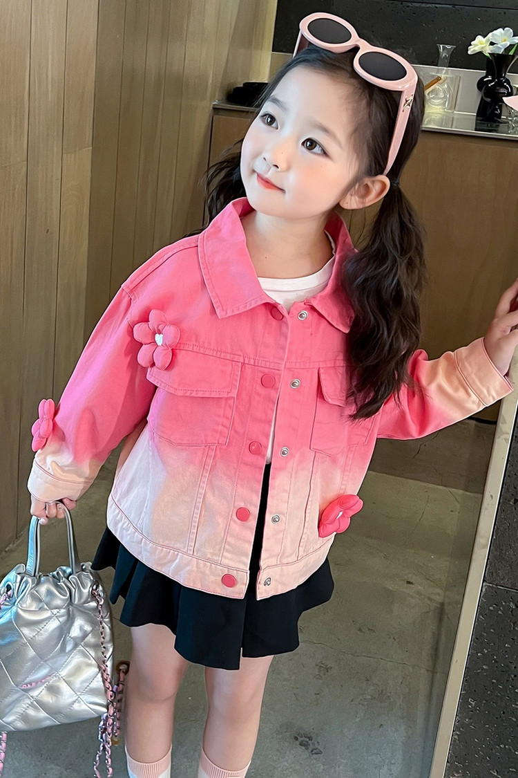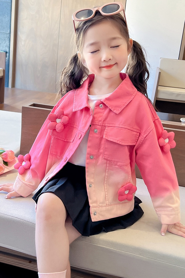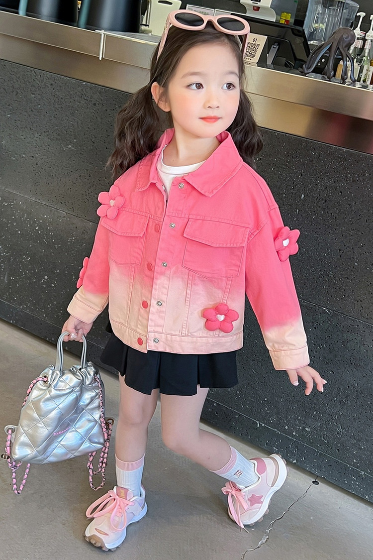 소녀의 꽃 매달려 염료 데님 코트 봄과 가을 서양 스타일 2025 새로운 도착 아기 소녀의 올 매치 캐주얼 자켓
