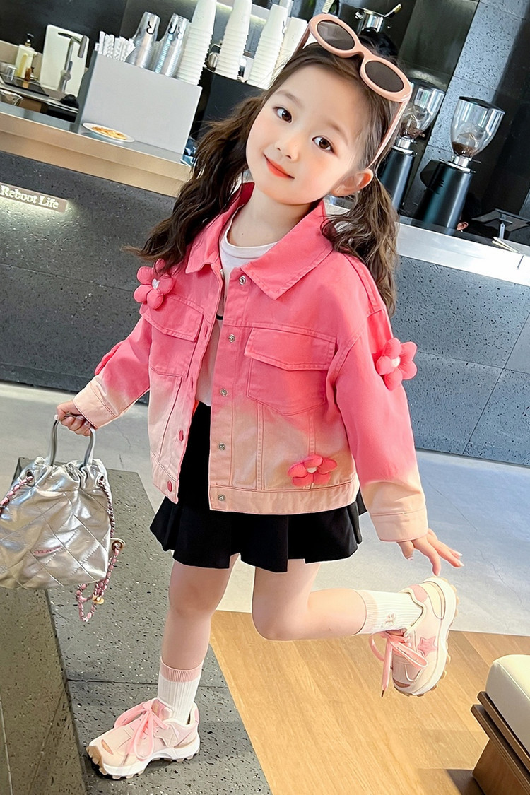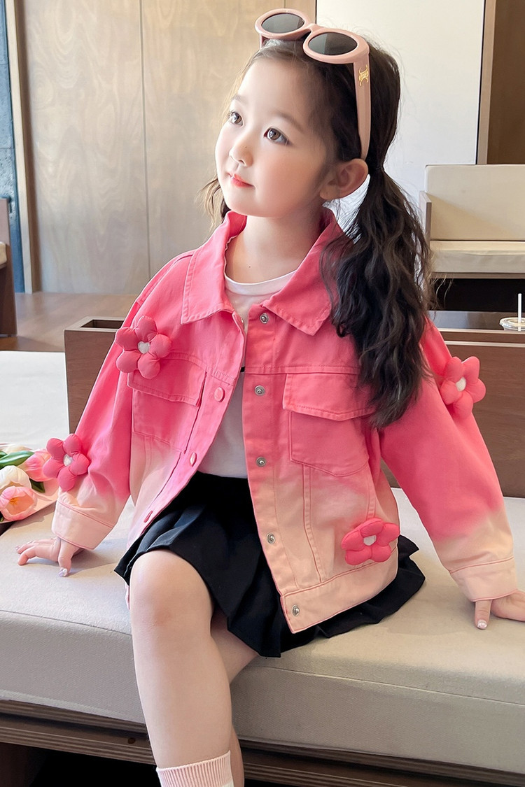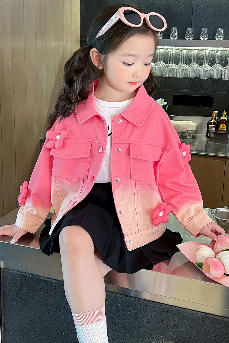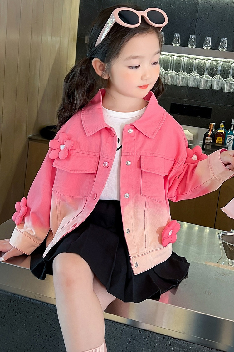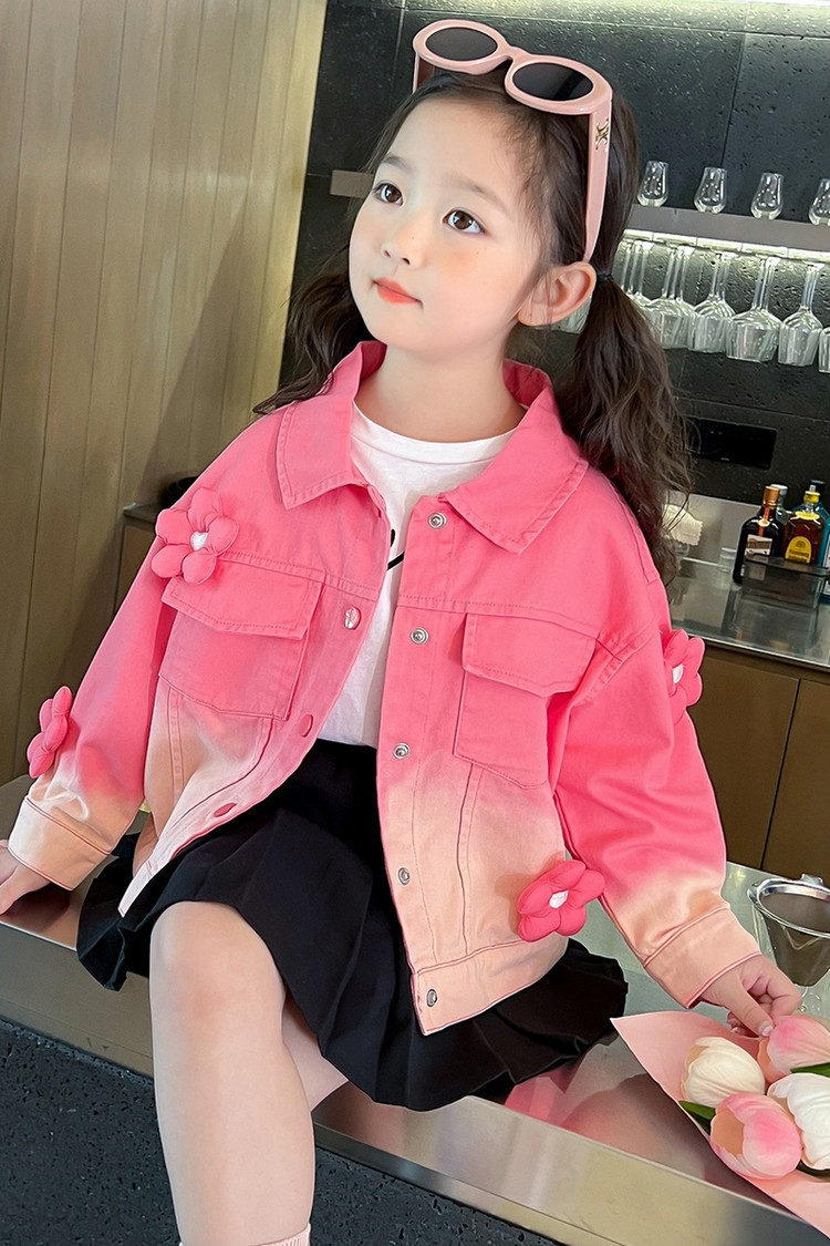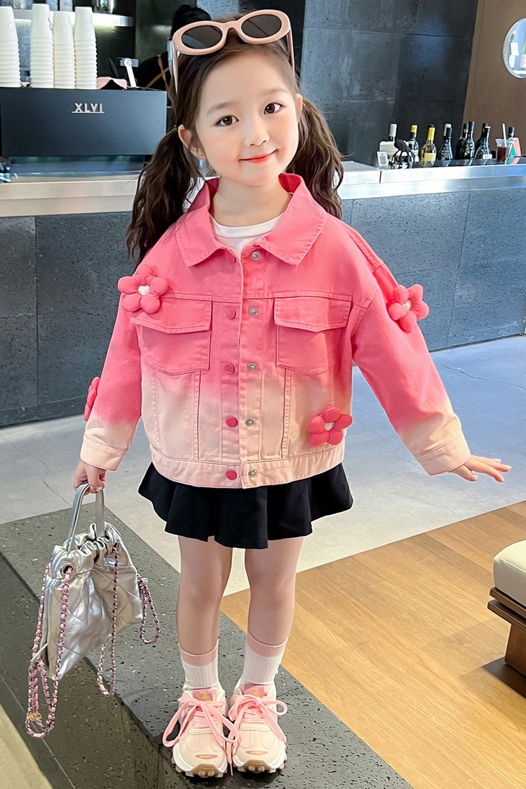 소녀의 꽃 매달려 염료 데님 코트 봄과 가을 서양 스타일 2025 새로운 도착 아기 소녀의 올 매치 캐주얼 자켓