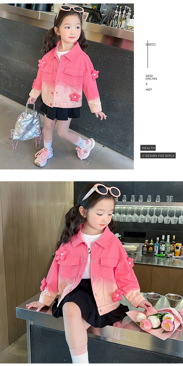 소녀의 꽃 매달려 염료 데님 코트 봄과 가을 서양 스타일 2025 새로운 도착 아기 소녀의 올 매치 캐주얼 자켓스토어 가기