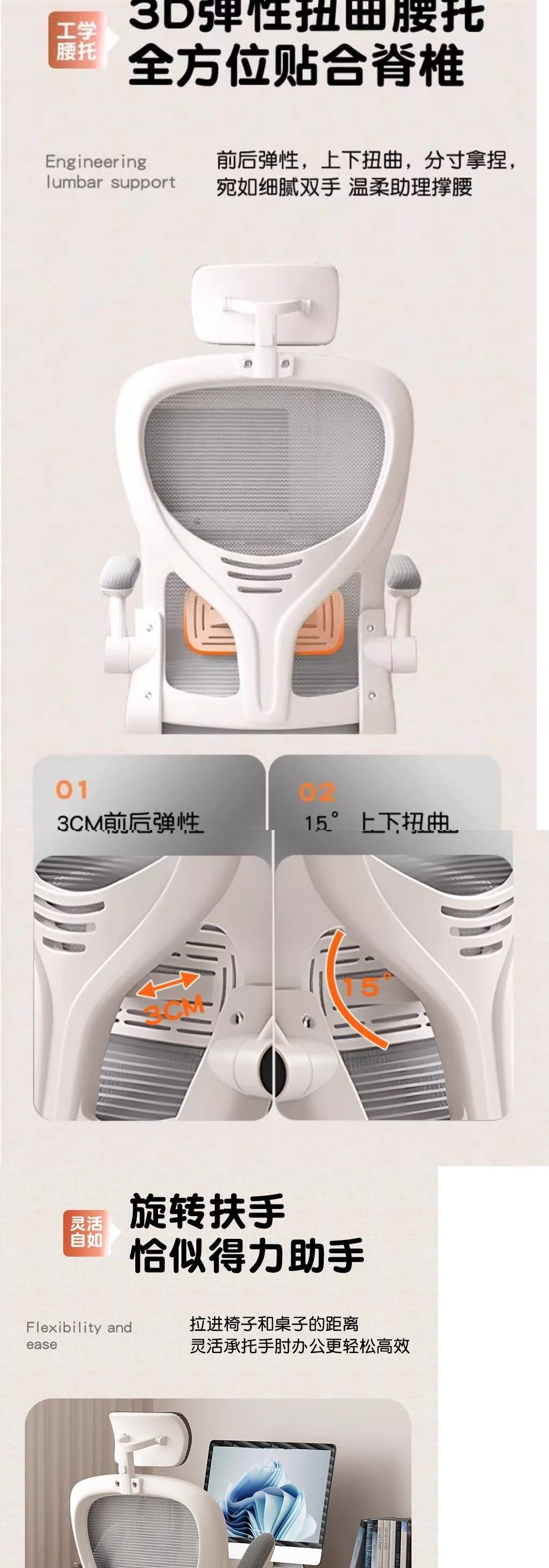 • [업그레이드 및 강화] 화이트 프레임과 블랙 메쉬 + 머리 받침 + 라텍스 쿠션