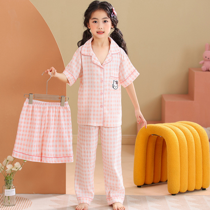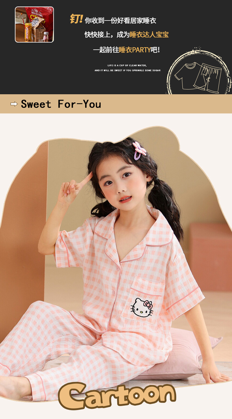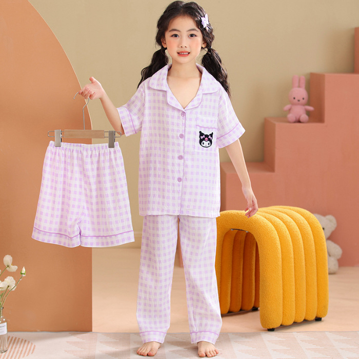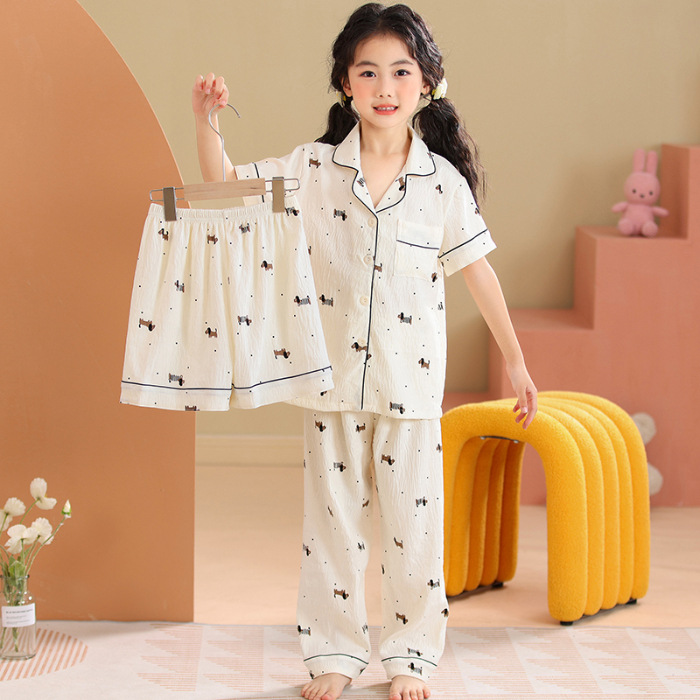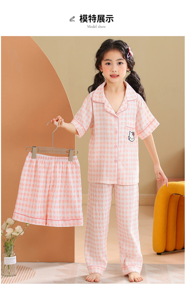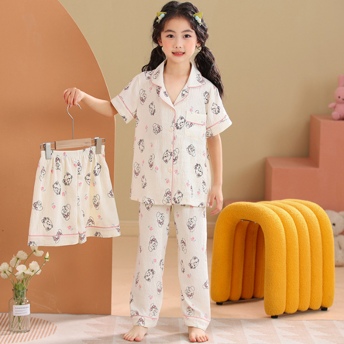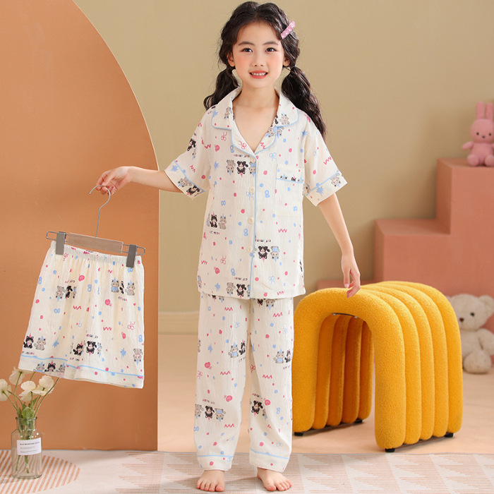 소녀 잠옷 구름 면화 여름 세 조각 세트 어린이 반팔 바지 얇은 소녀 중 큰 어린이 부모 자식 잠옷 집스토어 가기