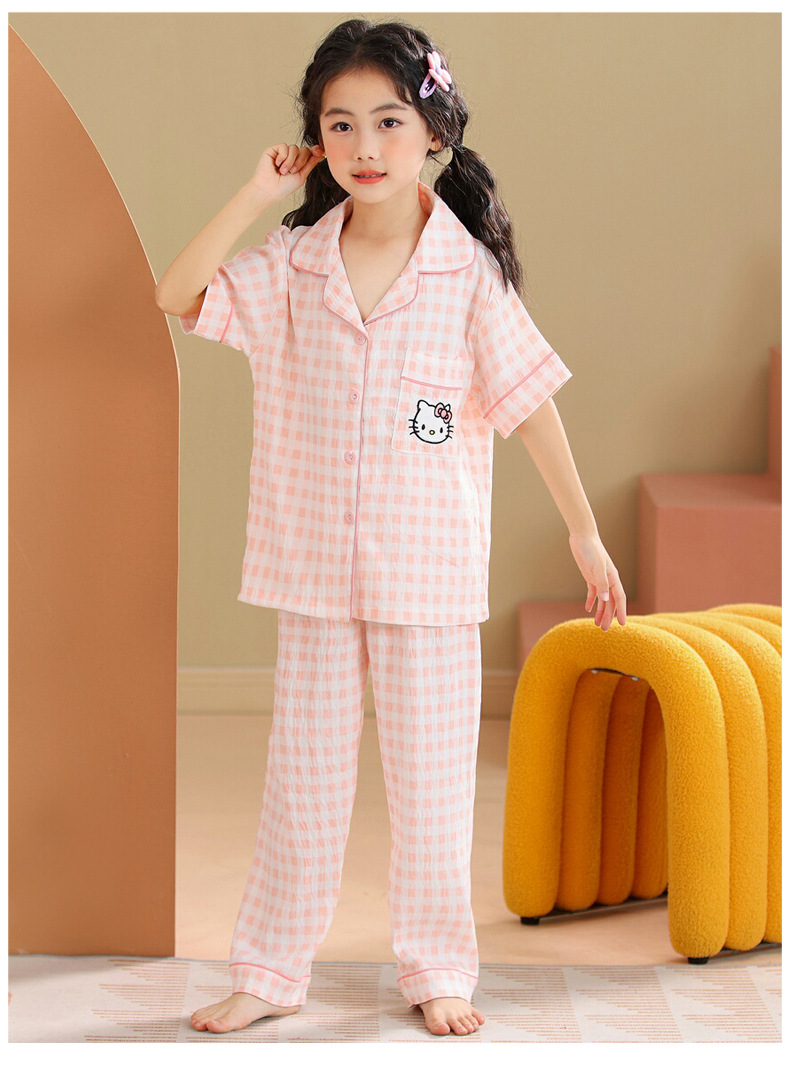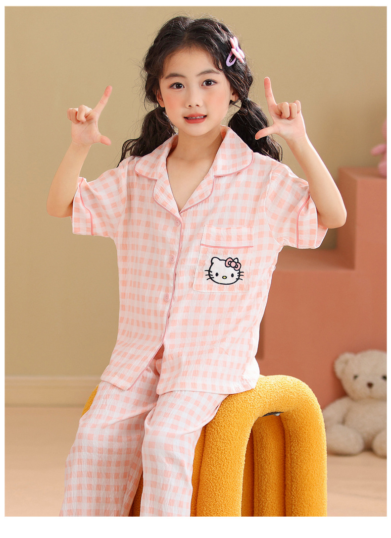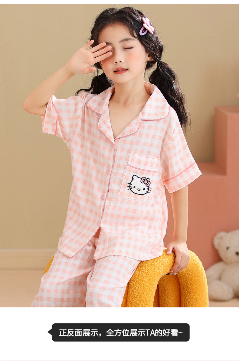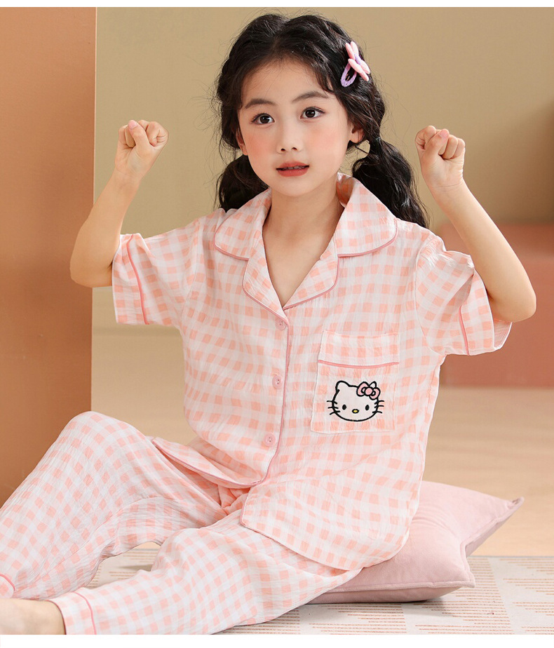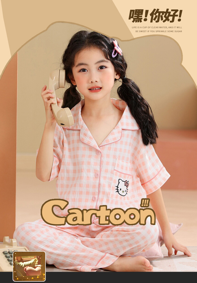 소녀 잠옷 구름 면화 여름 세 조각 세트 어린이 반팔 바지 얇은 소녀 중 큰 어린이 부모 자식 잠옷 집스토어 가기