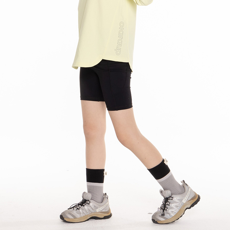 소녀 스포츠 상어 반바지 2025 여름 어린이 높은 허리 탄성 5 점 요가 바지 캐주얼 승마 레깅스