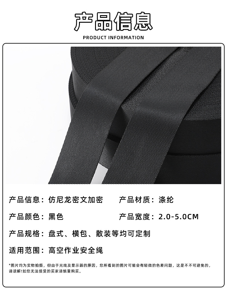 재고 검은 모조 나일론 웨빙 야외 등산 안전 로프 두꺼운 모조 나일론 웨빙스토어 가기