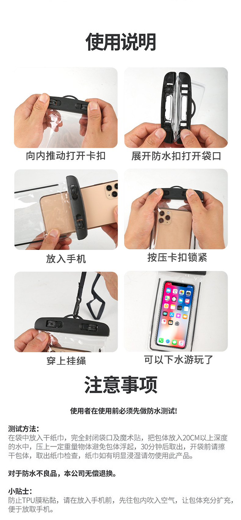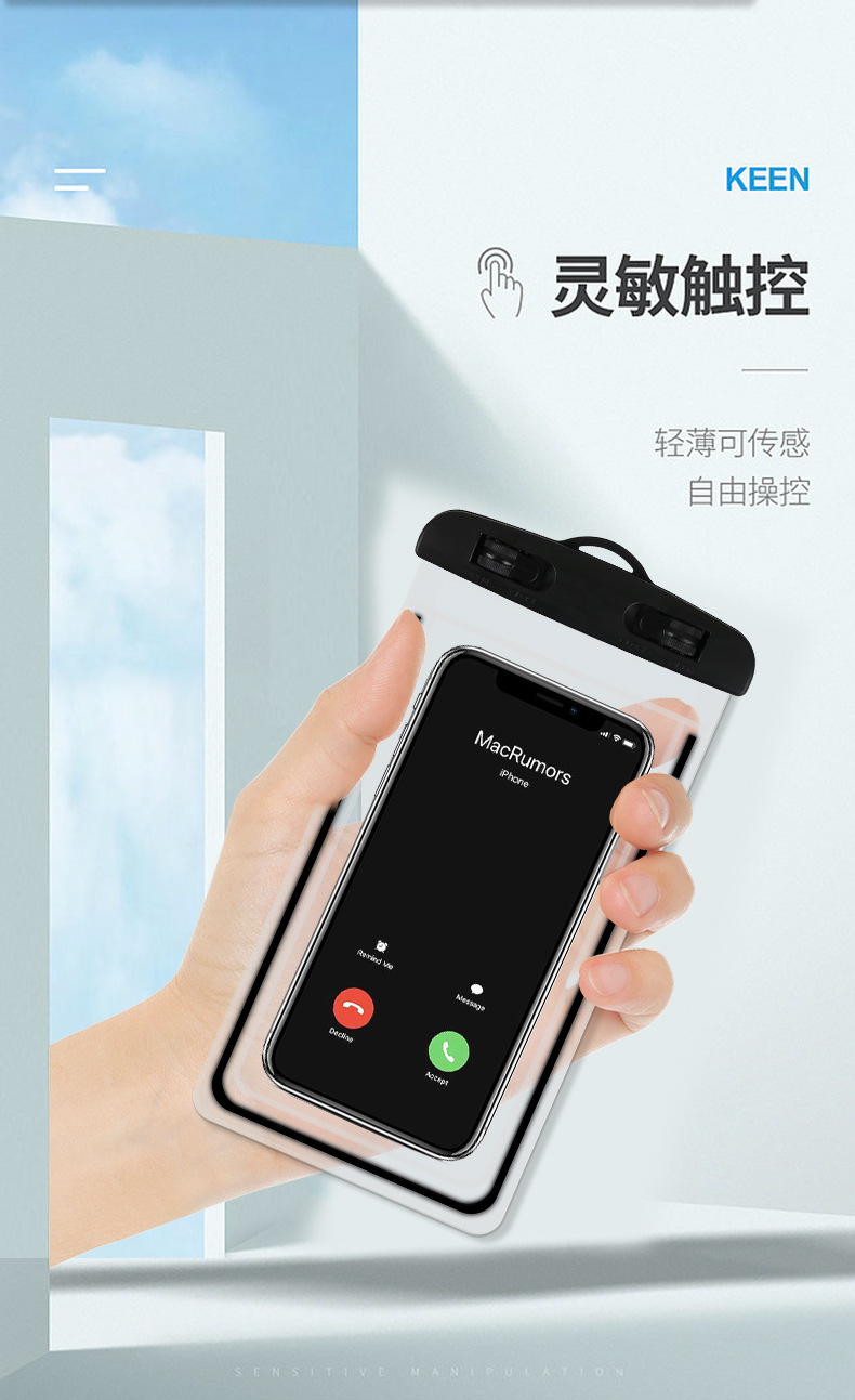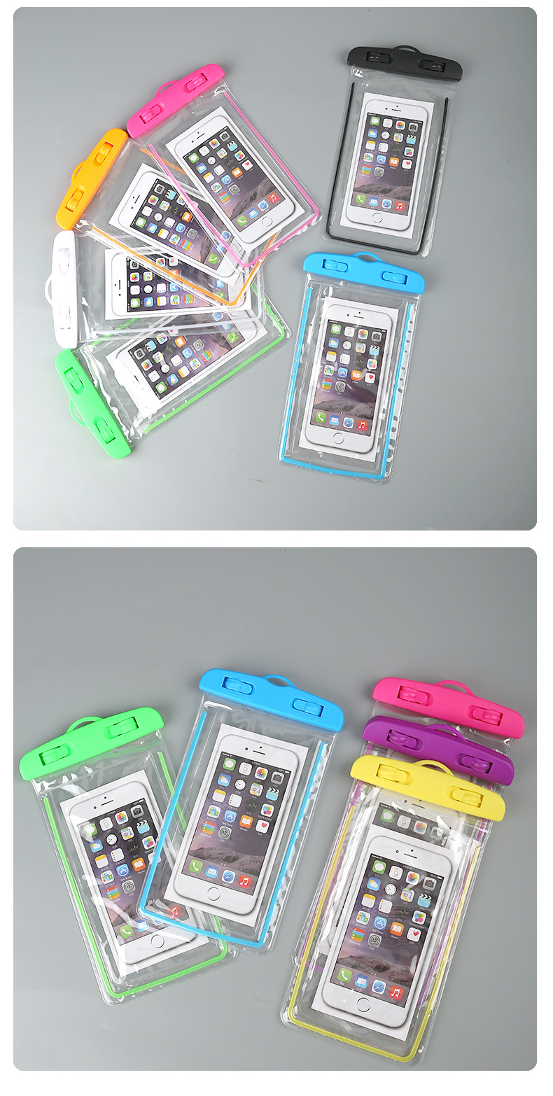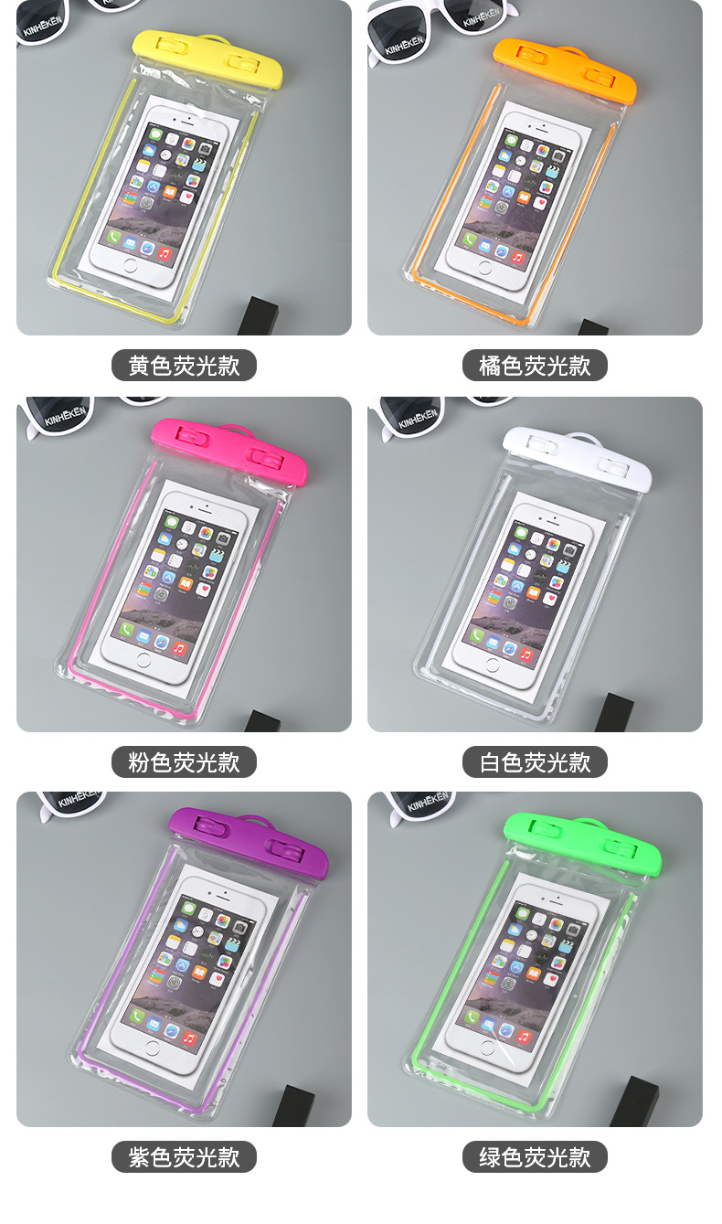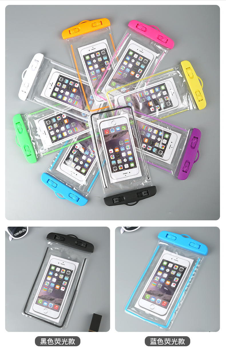투명한 터치 스크린 휴대 전화 케이스 야외 온천 수영 다이빙 빛나는 방수 케이스 PVC 형광 휴대 전화 방수 가방스토어 가기