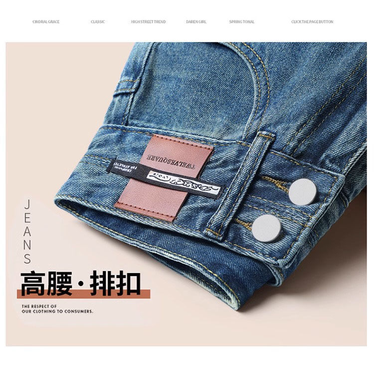 패션 우아한 더블 버클 디자인 청바지 높은 허리 2025 고기 커버 넓은 다리 바지 여성용 캐주얼 스트레이트 드랩스토어 가기