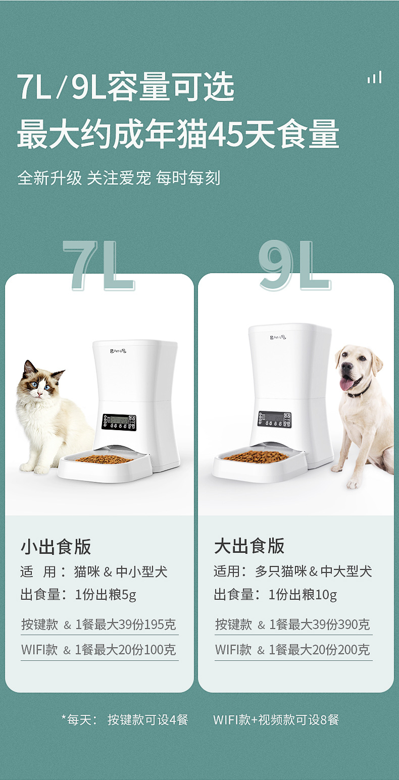 애완동물 스마트 급식기 버튼형 7L 대용량 정확한 급식 쉽게 애완동물의 식사를 관리