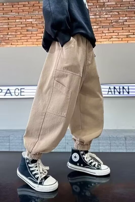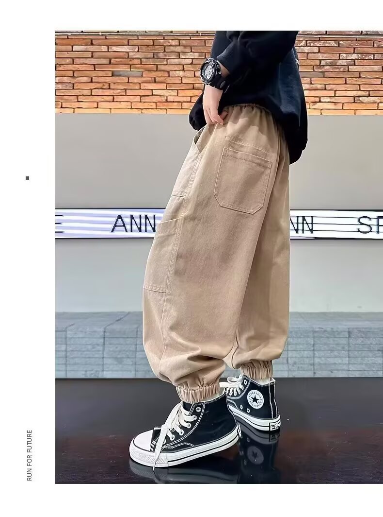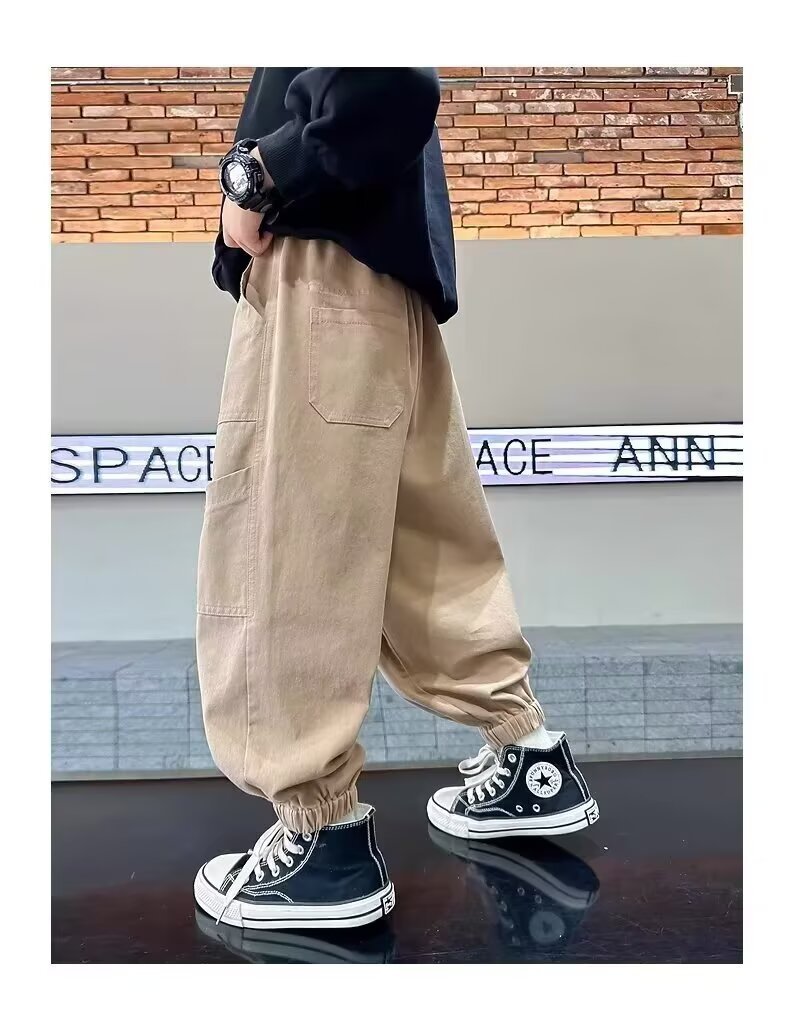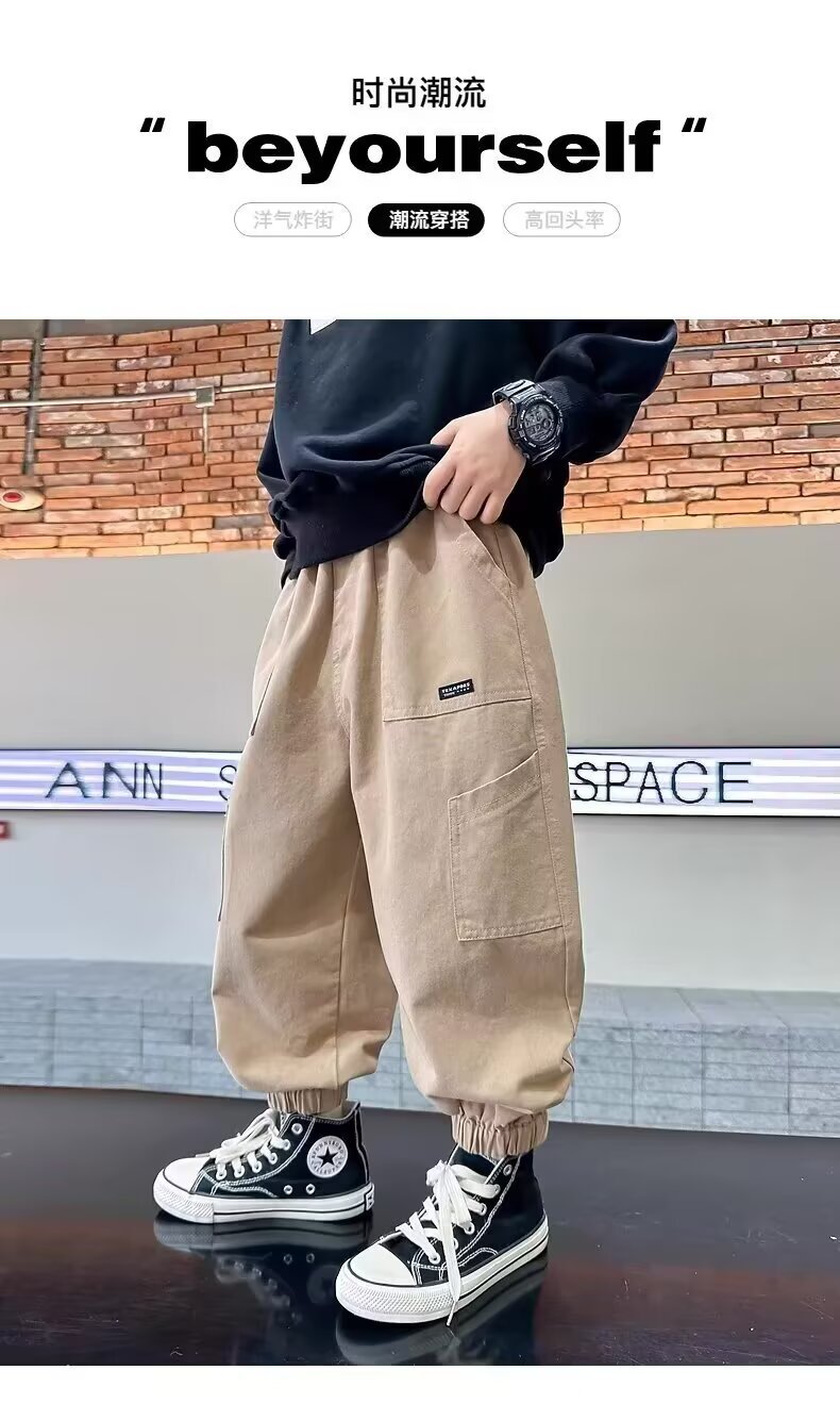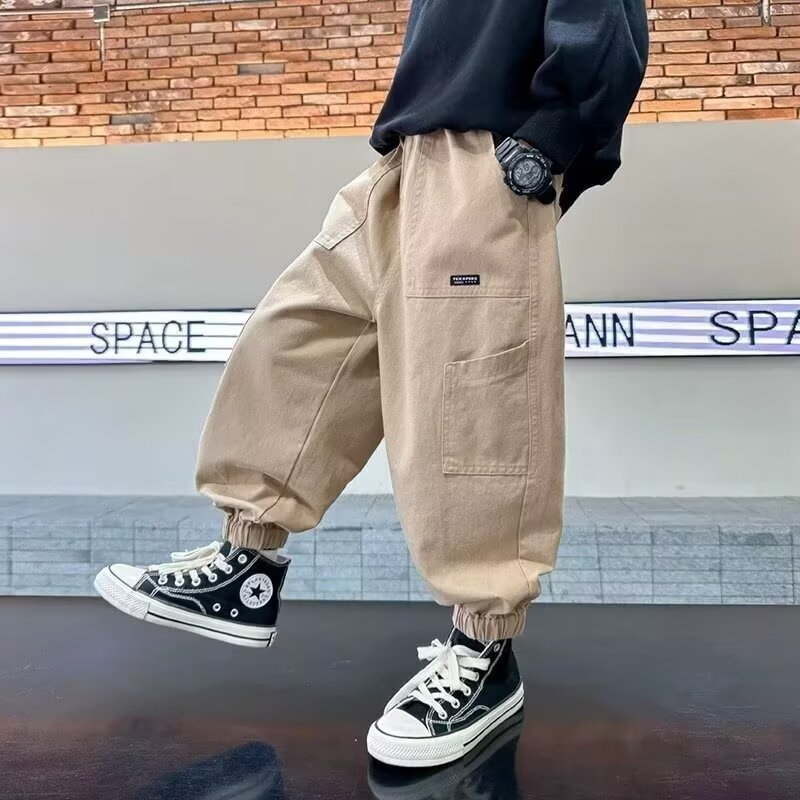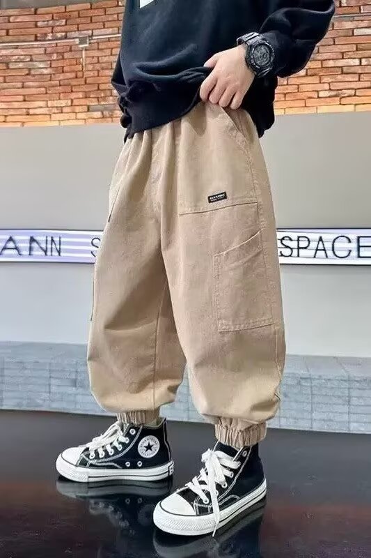 소년 바지 봄 착용 어린이 캐주얼 바지 2025 새로운 도착 소년 중 · 대형 어린이 트렌디 한 느슨한 바지 봄 가을스토어 가기