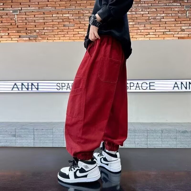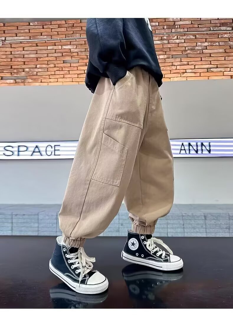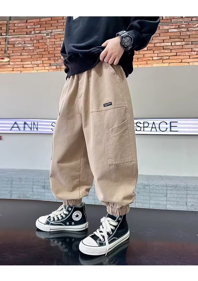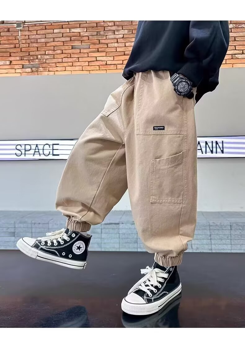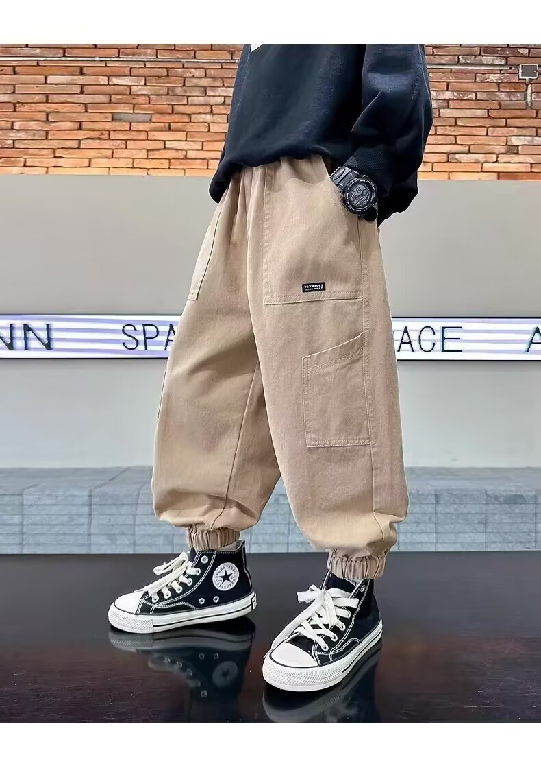 소년 바지 봄 착용 어린이 캐주얼 바지 2025 새로운 도착 소년 중 · 대형 어린이 트렌디 한 느슨한 바지 봄 가을스토어 가기