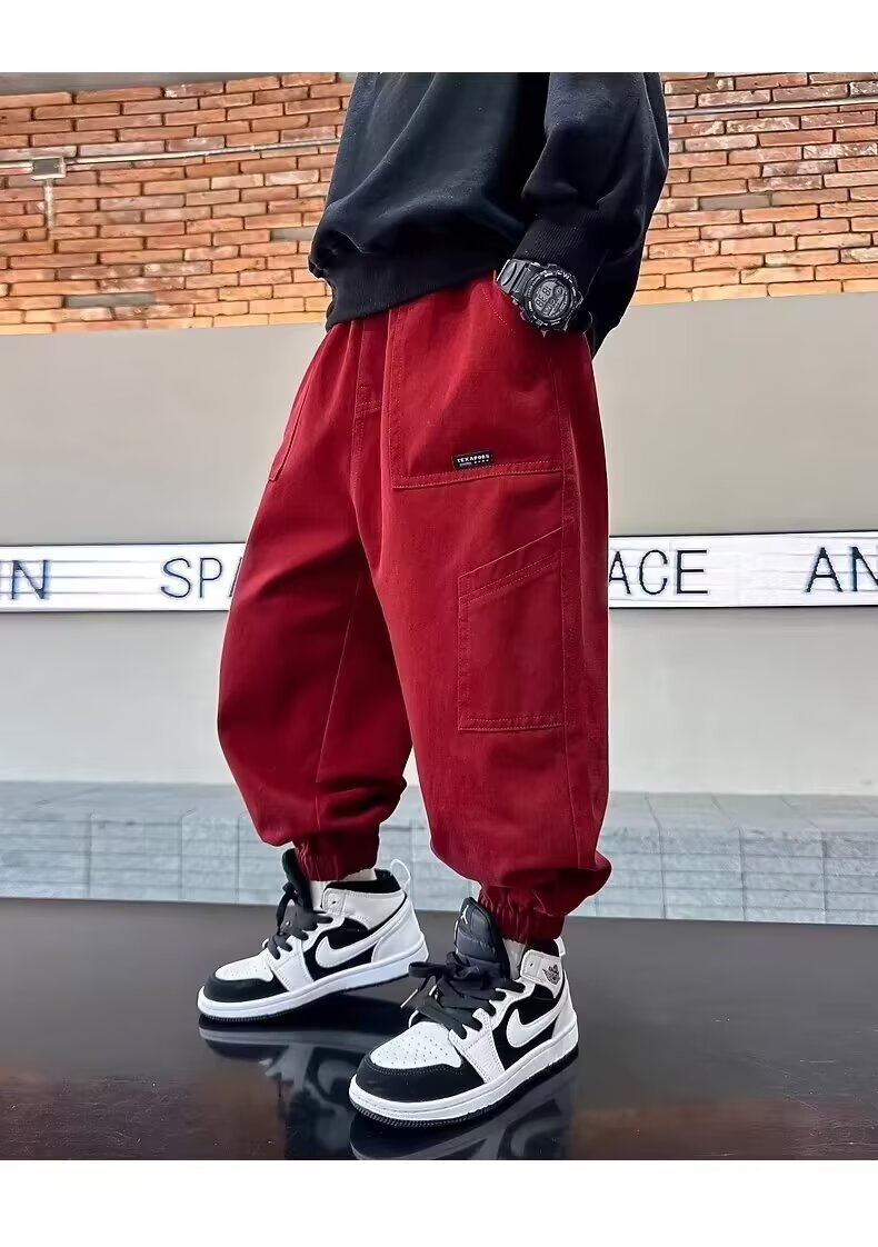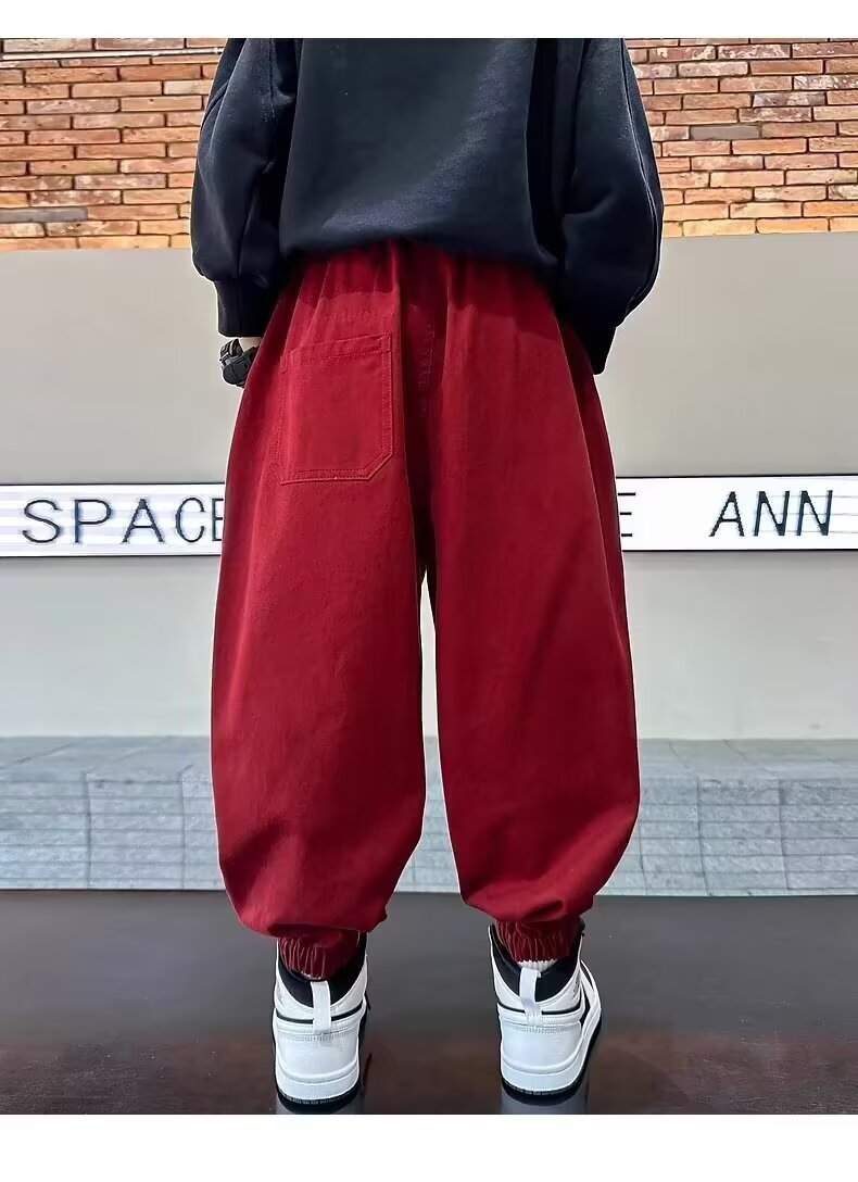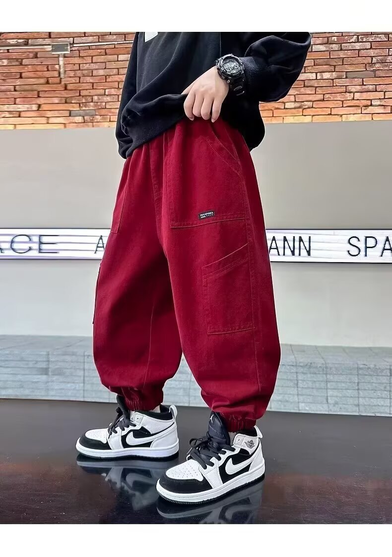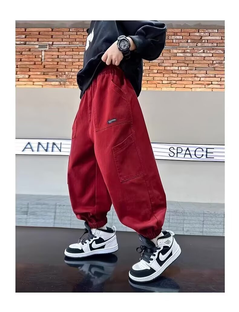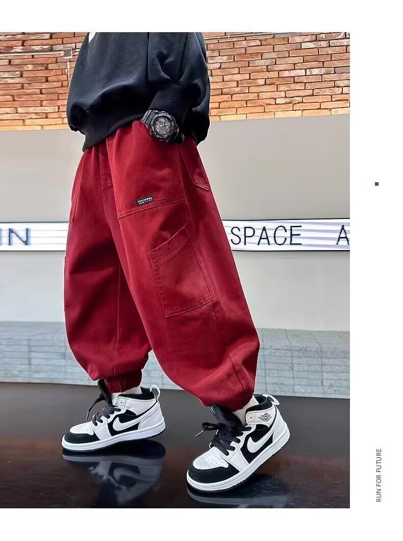 소년 바지 봄 착용 어린이 캐주얼 바지 2025 새로운 도착 소년 중 · 대형 어린이 트렌디 한 느슨한 바지 봄 가을스토어 가기