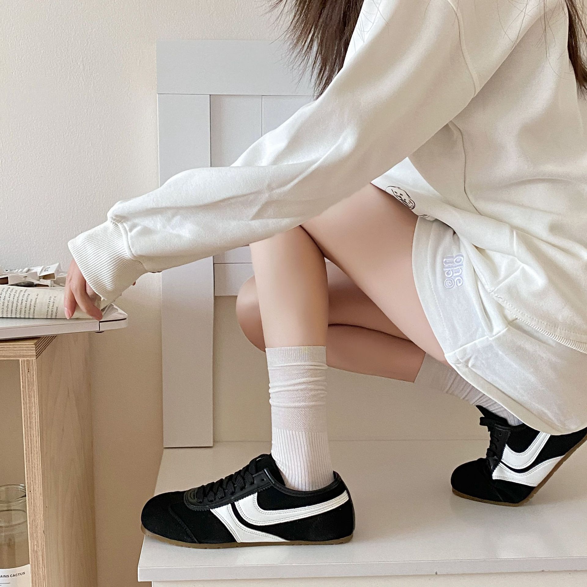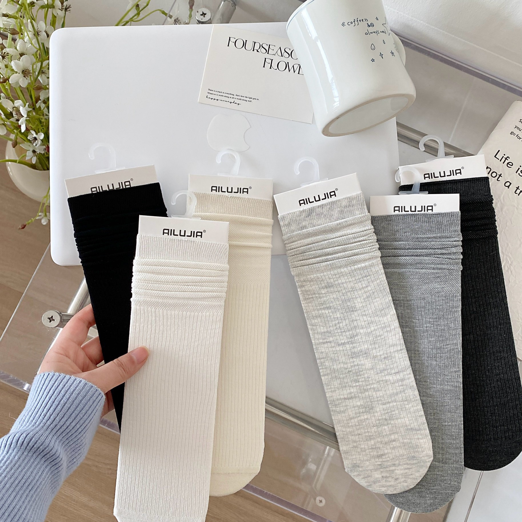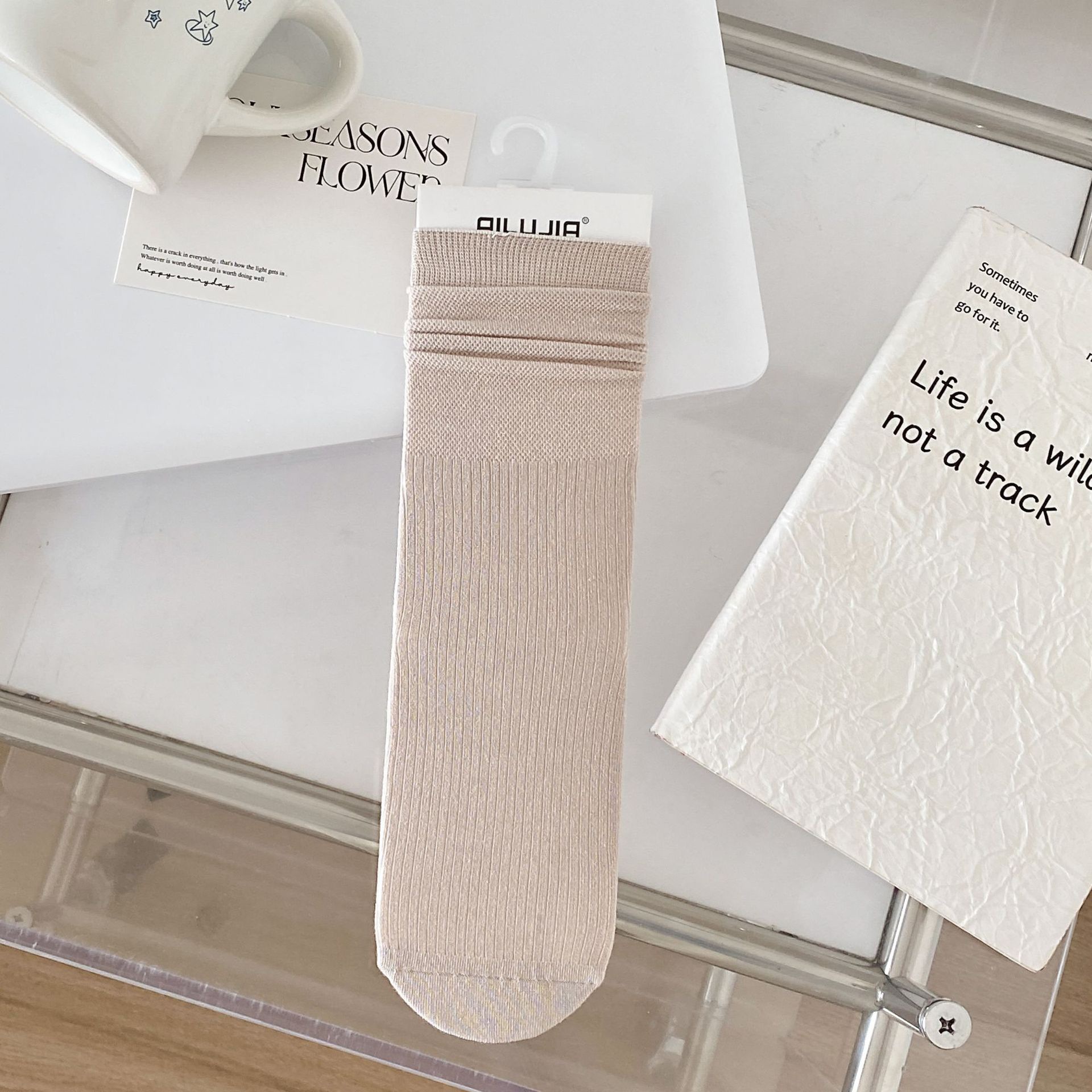 봄과 여름 올인원 기계 여성의 뼈없는 솔기 스타킹 발 뒤꿈치 스트레이트 메쉬 통기성 클래식 단색 미드 튜브 양말스토어 가기