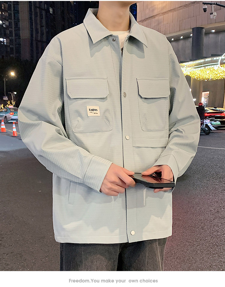 재킷 남자의 봄과 가을 새로운 유행 잘 생긴 느슨한 올 매치 옷깃 재킷 플러스 사이즈 플러스 뚱뚱한 캐주얼 남성 자켓스토어 가기