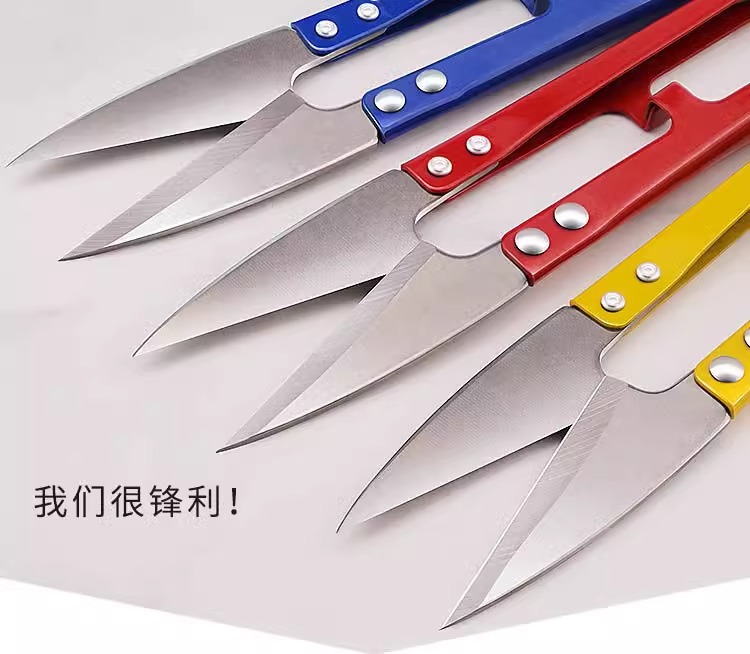 탄소 강철 작은 가위 절단 스레드 팁 가정용 U 자형 봄 원사 크로스 스티치 망간 강철 의류 절단 재봉 스몰 사이즈 가위