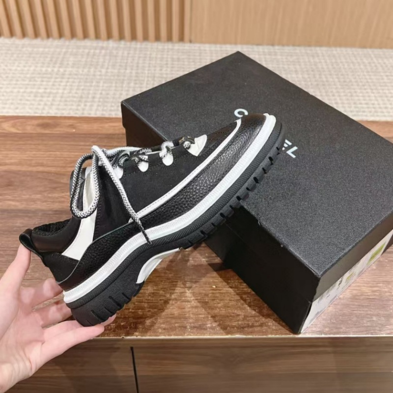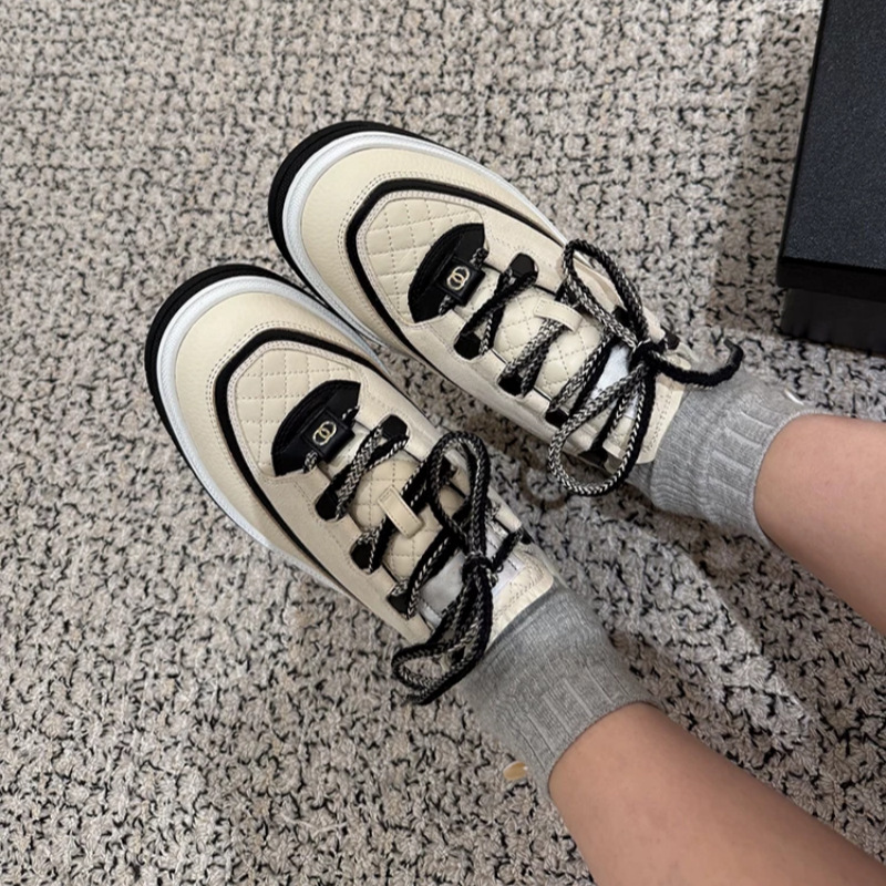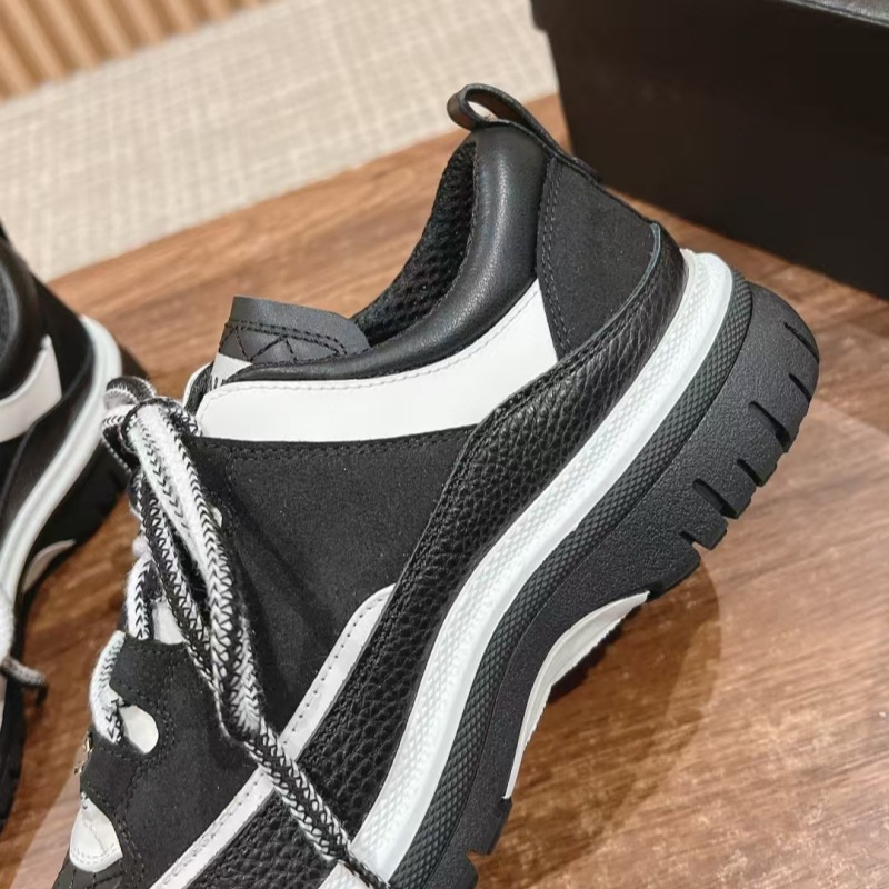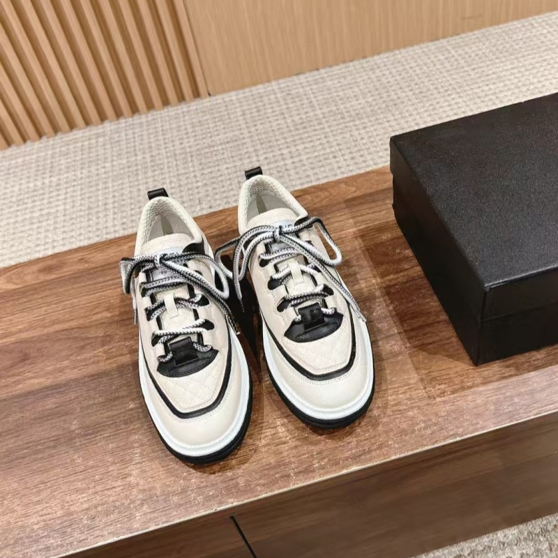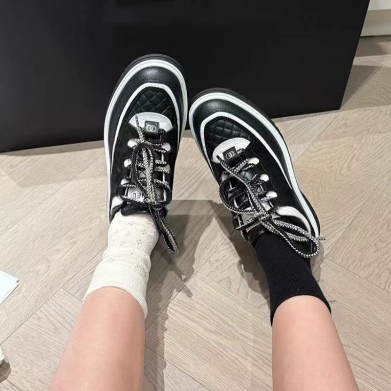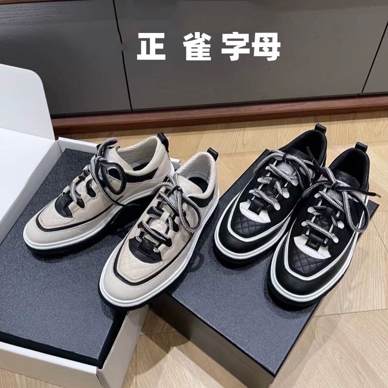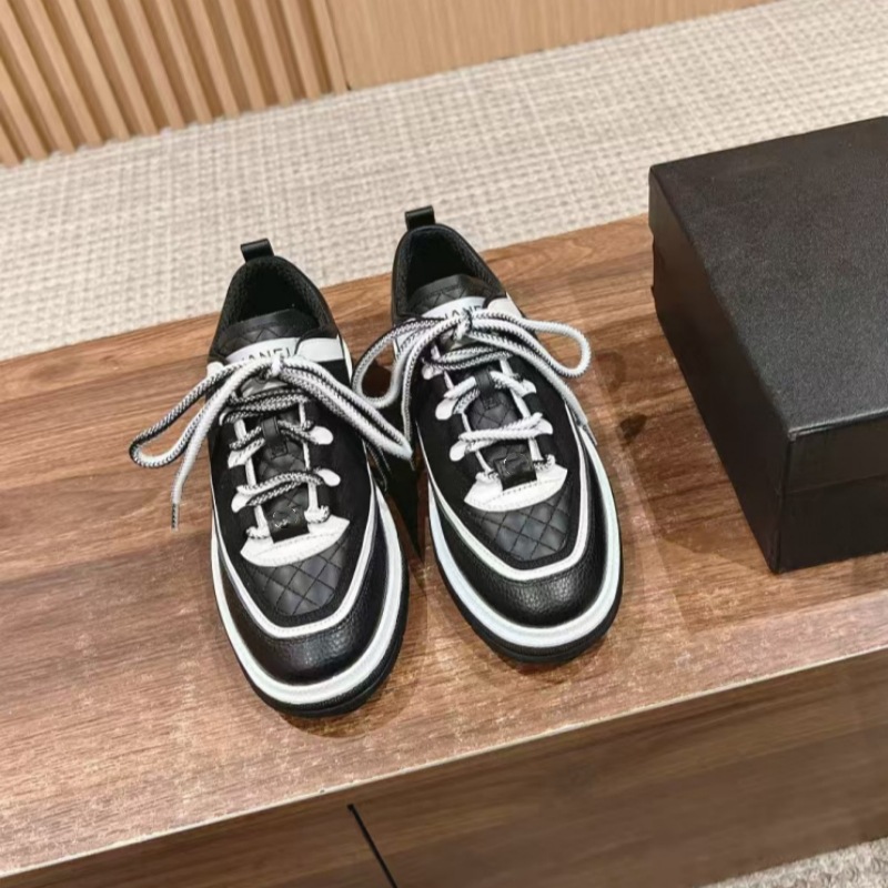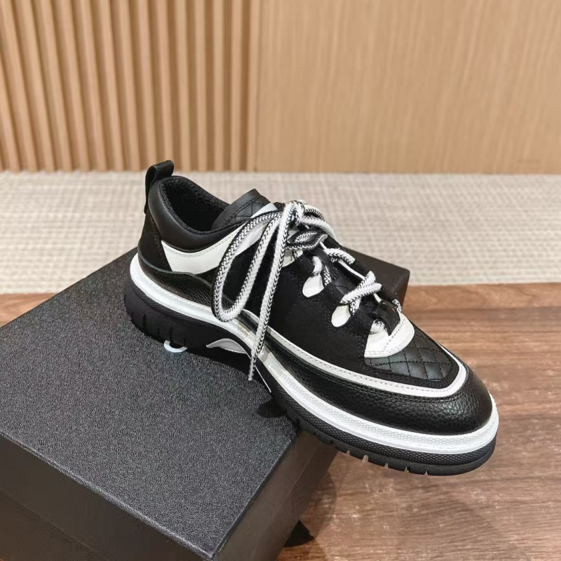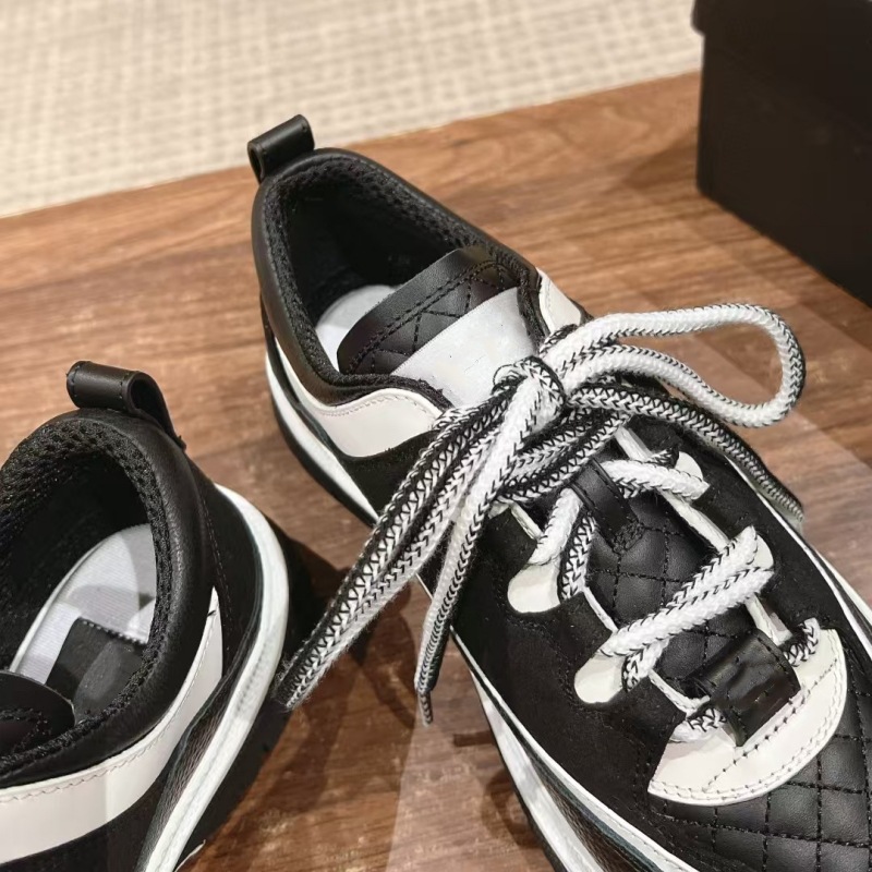 25 봄 새로운 스타일 샤넬 스타일 팬더 컬러 매칭 다이아몬드 레이스 업 캐주얼 운동화 플랫폼 플랫폼 연인 흰색 신발
