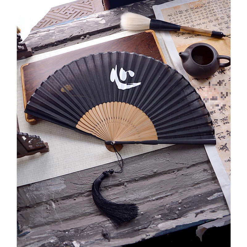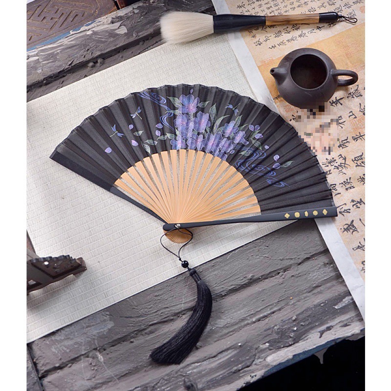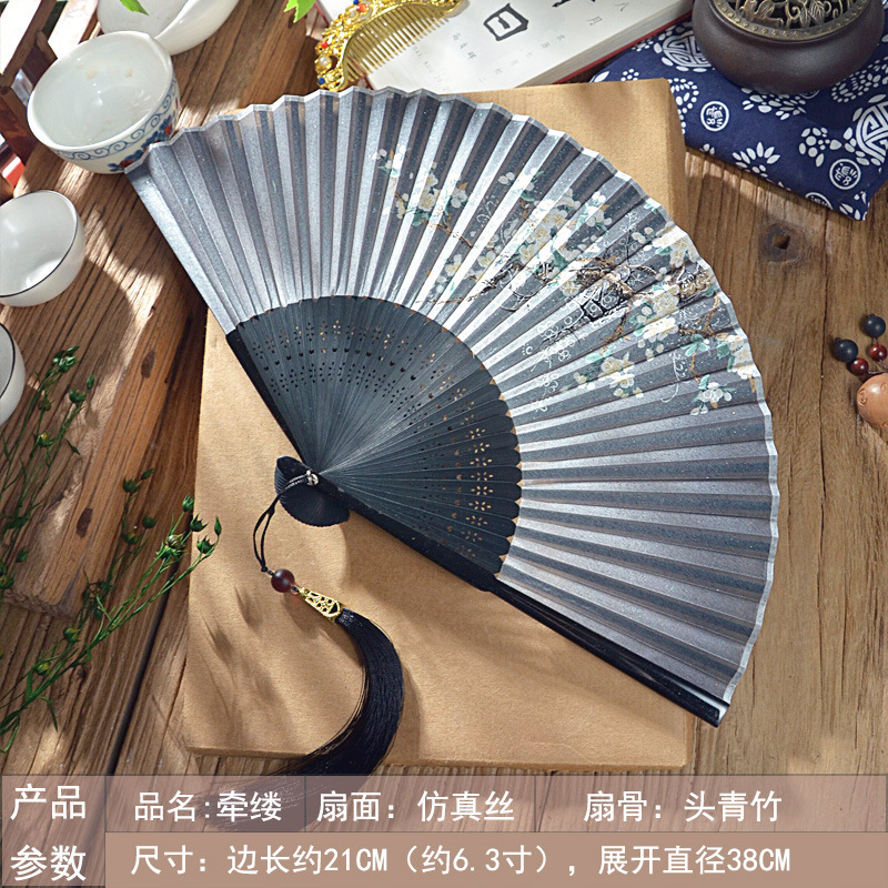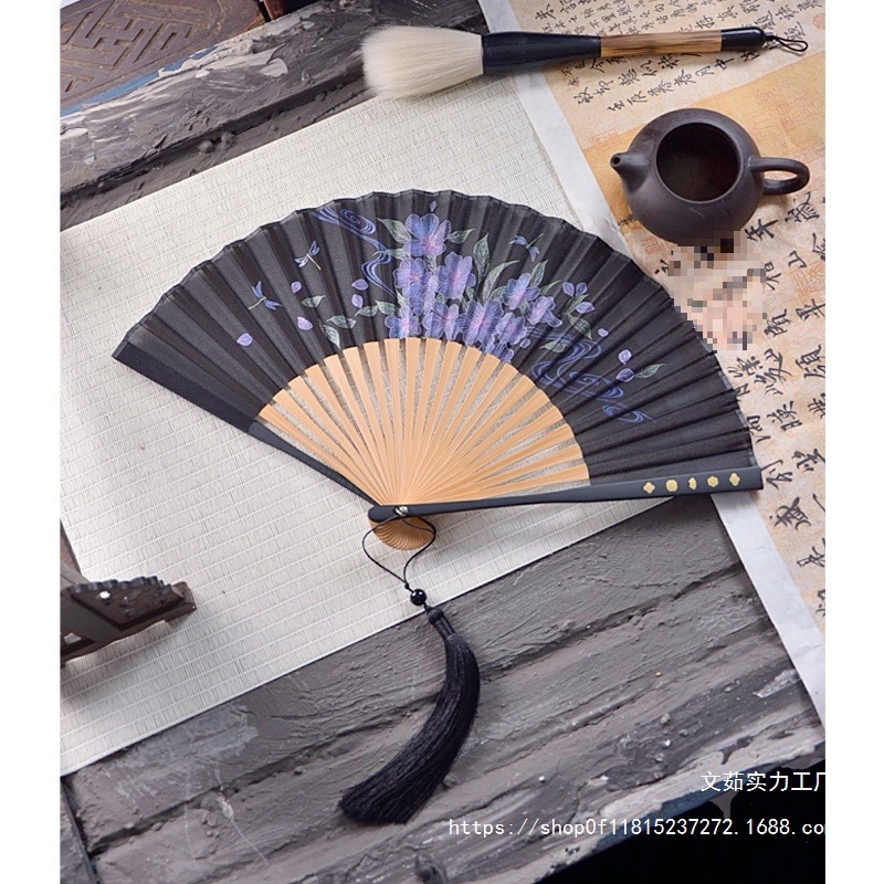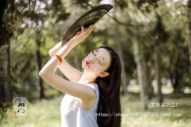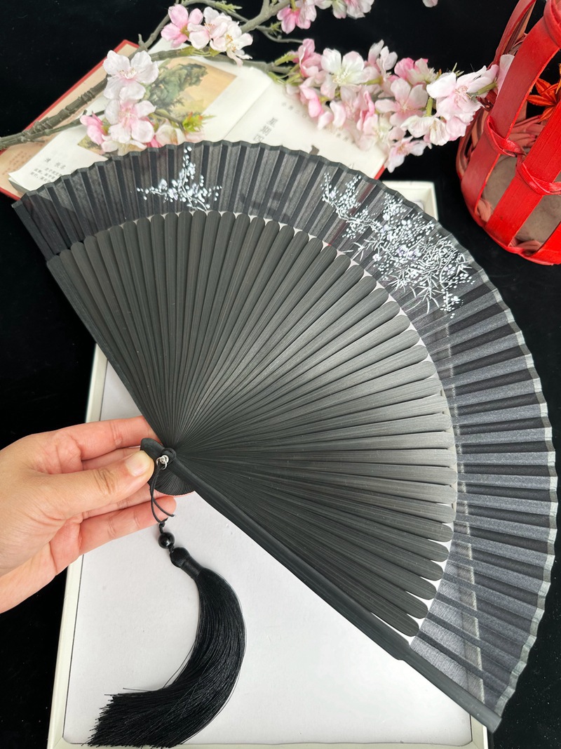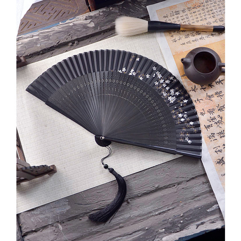 중국 스타일 풀 대나무 조각 빈 팬 일본 스타일 솔리드 컬러 블랙 팬 고대 스타일 청삼 여름 댄스 팬 남녀스토어 가기