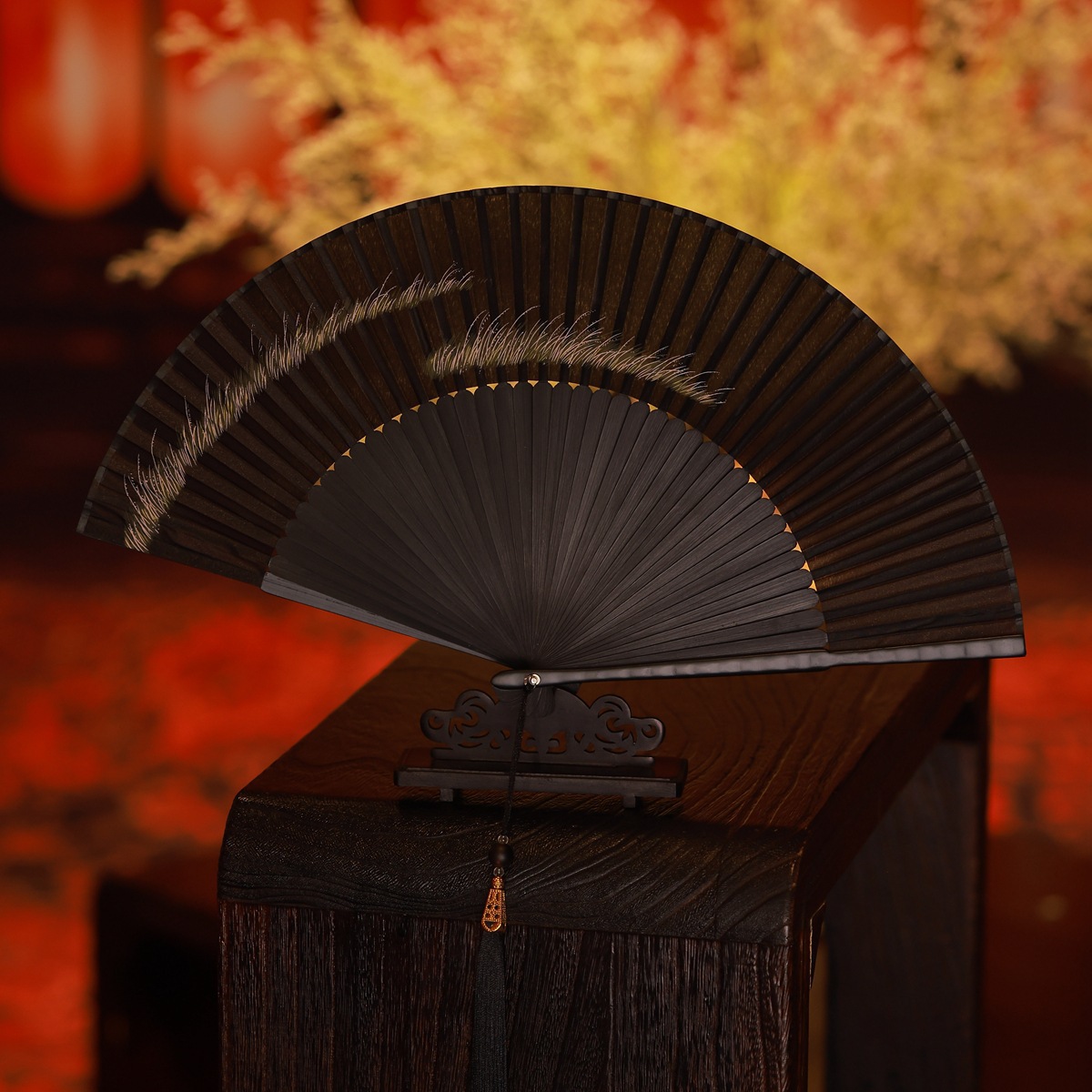 • 검은 벚꽃 + 큰 빨간색 술이 달린 검은색