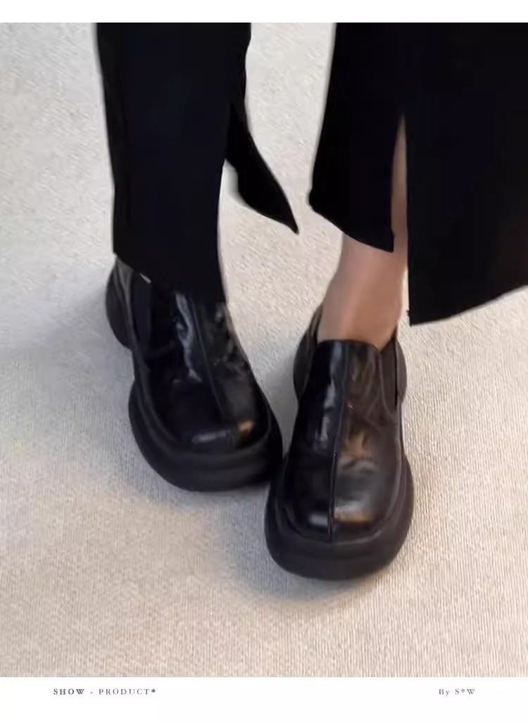 양가죽 버전 ~ 내부 높이 증가 머핀 두꺼운 밑창 복고풍 가죽 신발 여성의 입 깊은 싱글 레이어 신발 한 단계 영국 스타일 로퍼스토어 가기