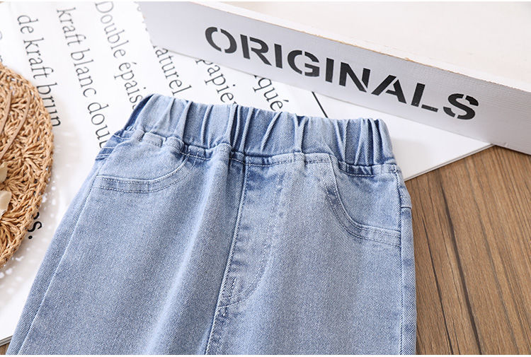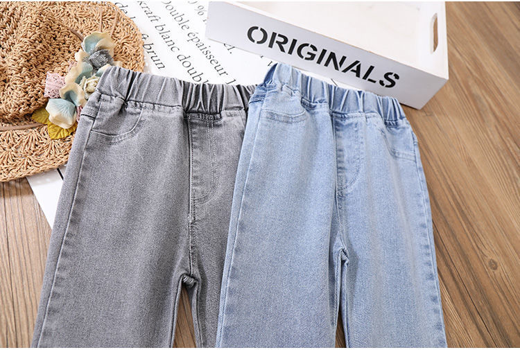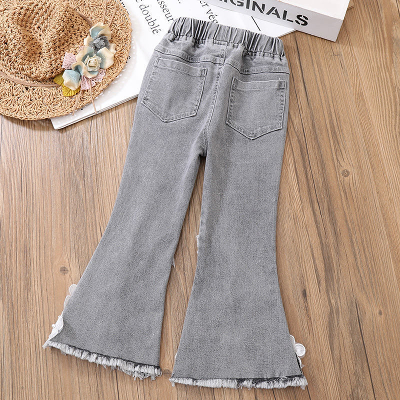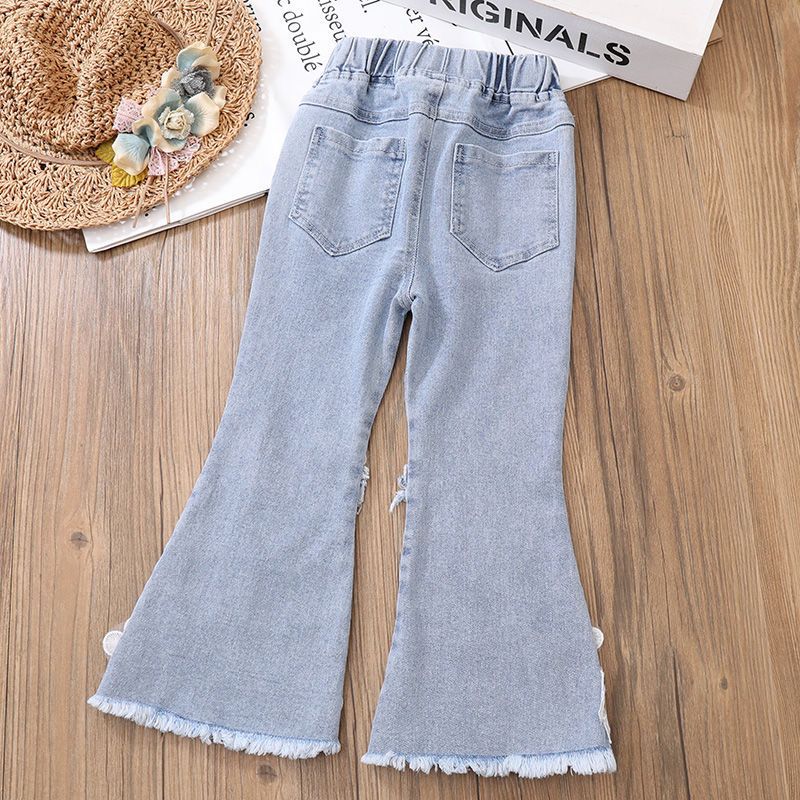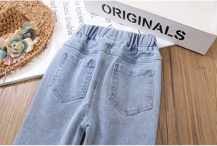 소녀 플라워 바지 봄과 가을 서양식 유행 데님 한국 스트레치 9 점 중 · 대형 어린이 슬림 적합 12 세 어린이 찢어진 구멍스토어 가기