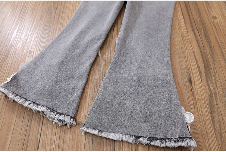 소녀 플라워 바지 봄과 가을 서양식 유행 데님 한국 스트레치 9 점 중 · 대형 어린이 슬림 적합 12 세 어린이 찢어진 구멍
