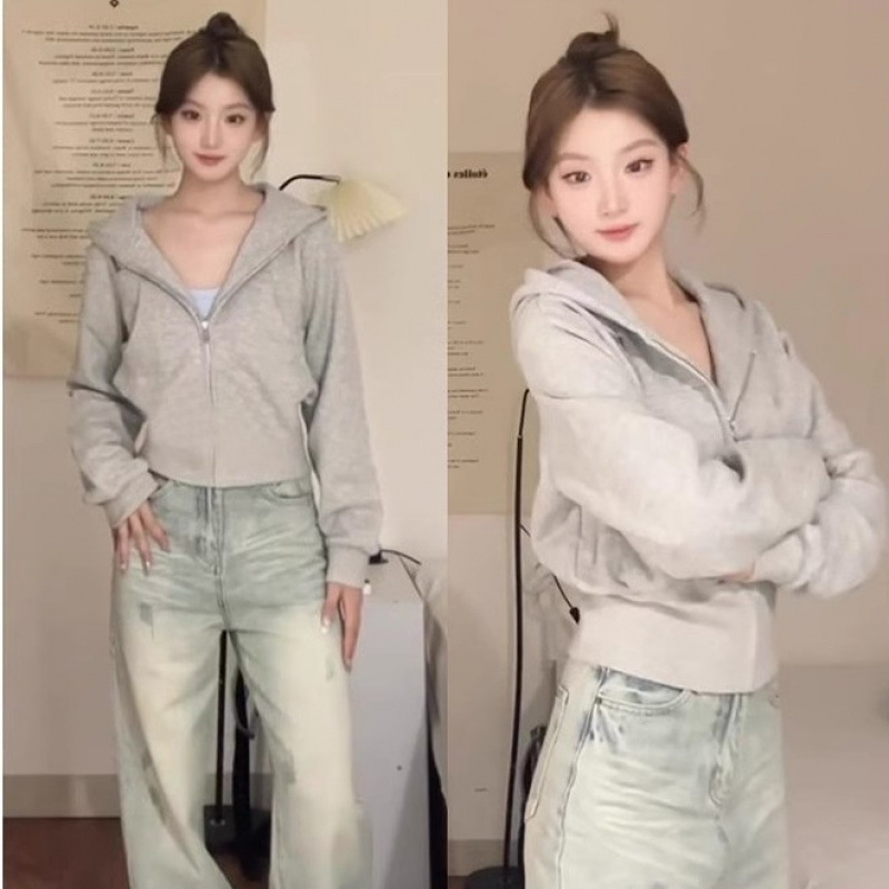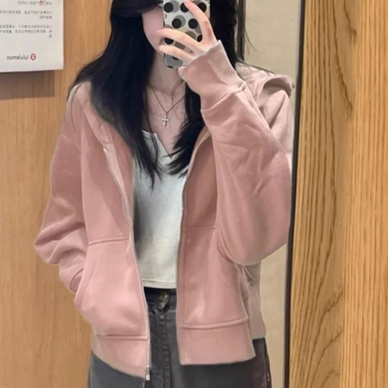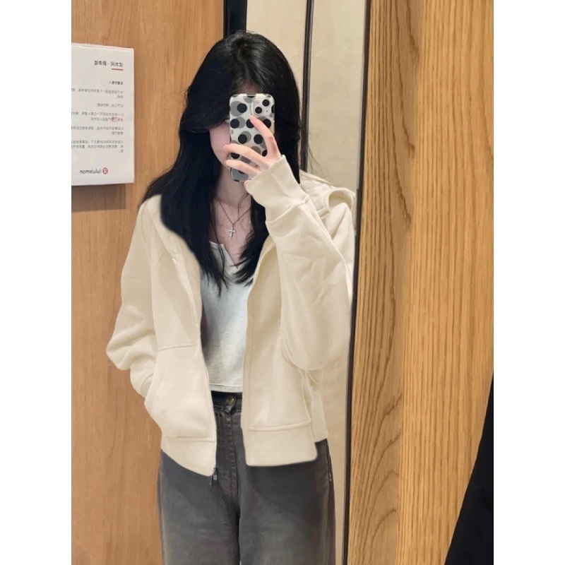 아메리칸 스타일 레트로 짧은 스웨트 코트 여성의 봄과 가을 2025 새로운 우아한 스포츠 얇은 탑 슬림 핏 착용 짧은스토어 가기