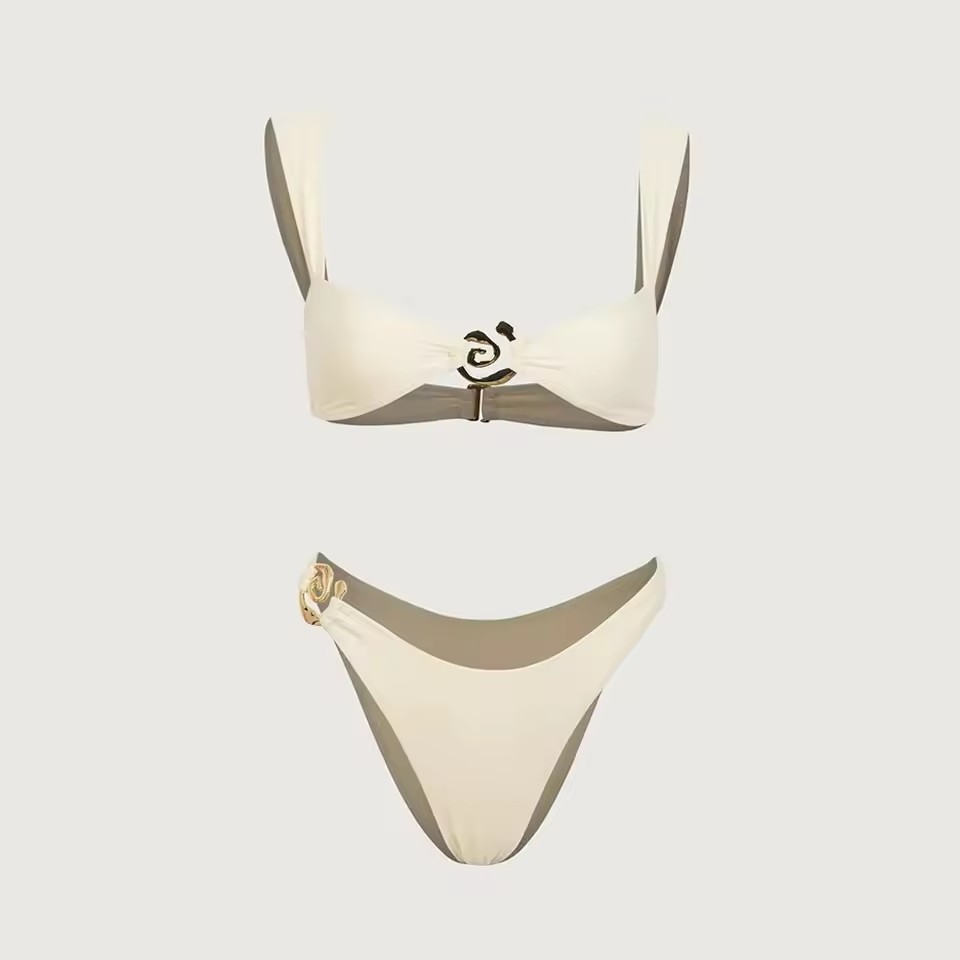 2025 단색 가슴 금속 장식 어깨끈 유럽 및 미국 스타일 비키니 알리익스프레스 분리형 수영복 슬림핏