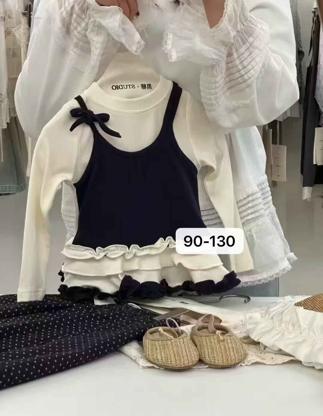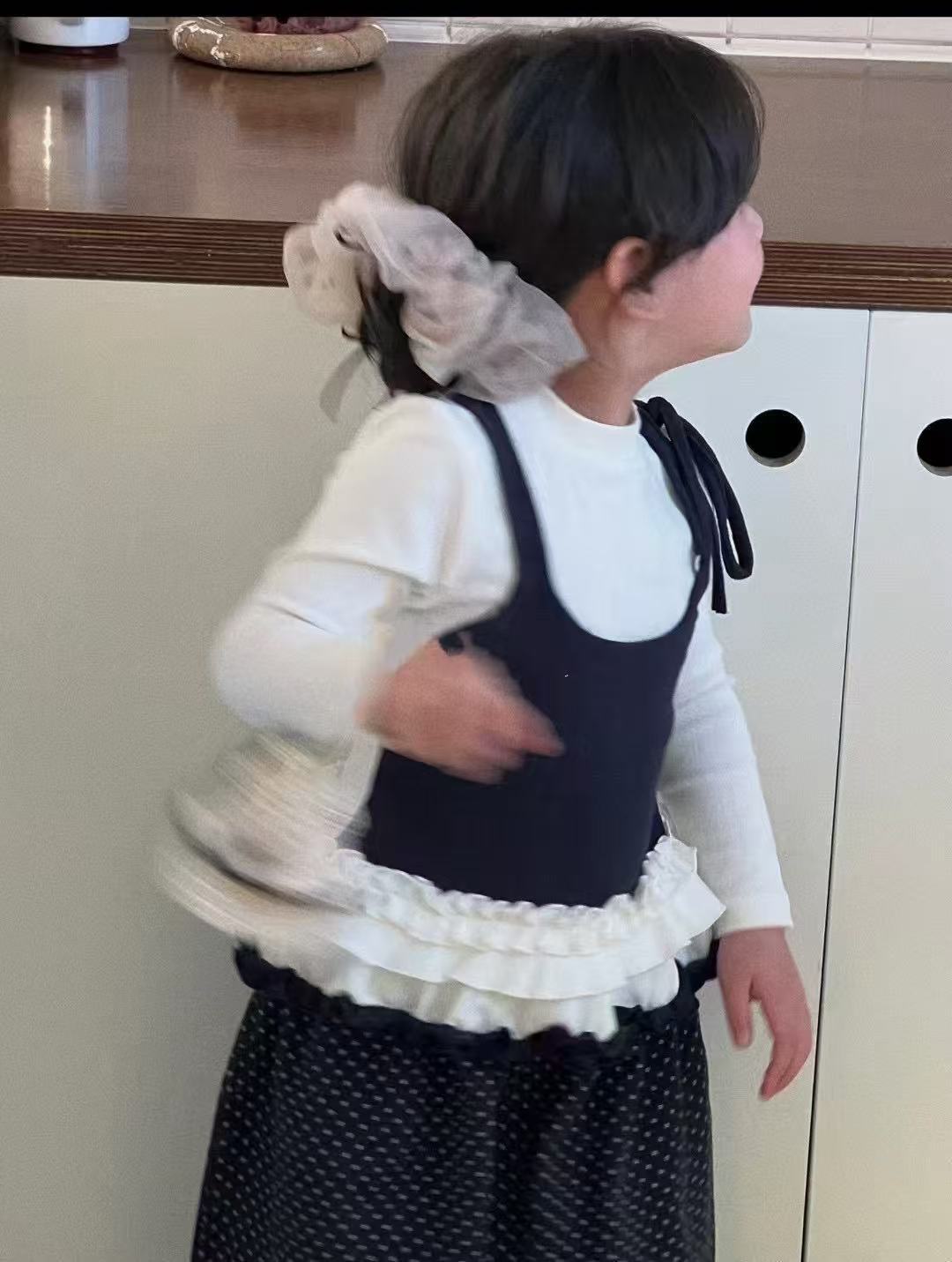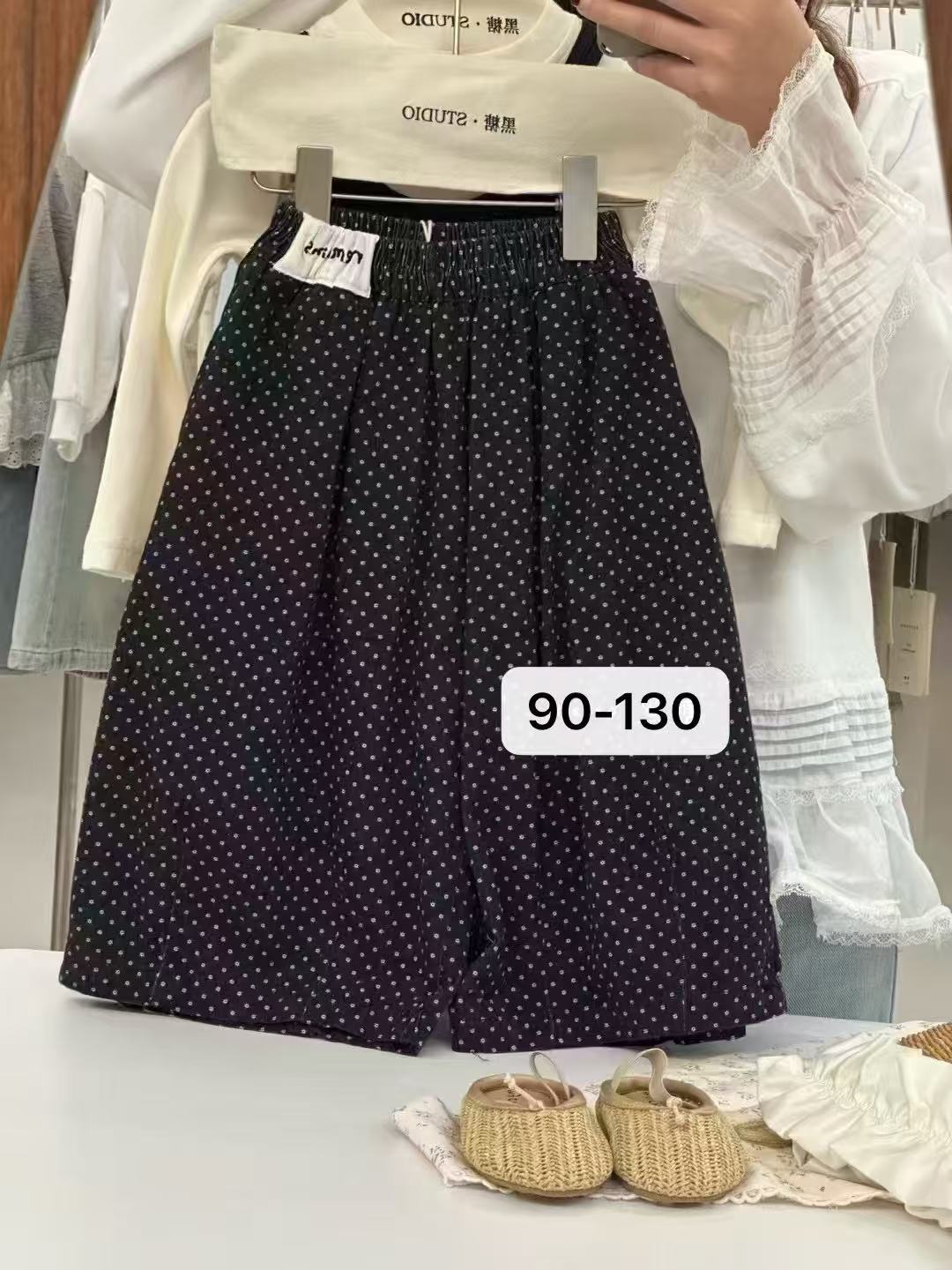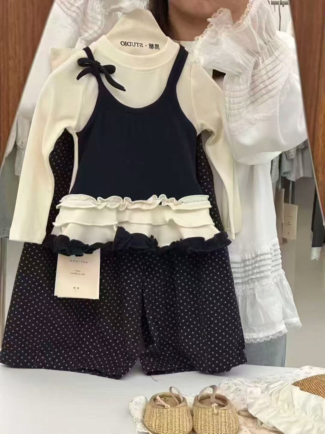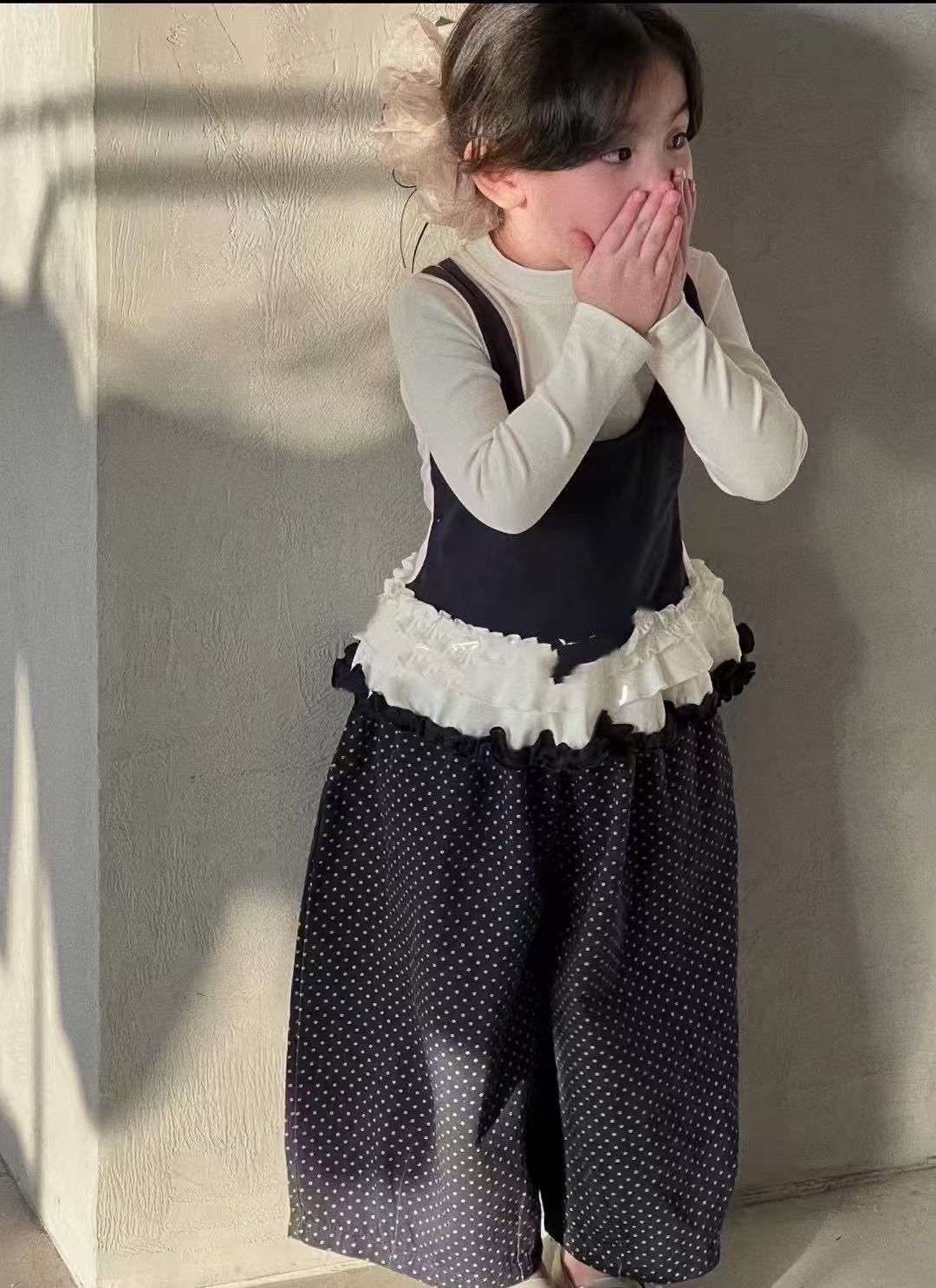소녀 긴팔 보토밍 셔츠 봄과 가을 소녀 슬링 바느질 티셔츠 폴도트 와이드 다리 바지 세트스토어 가기