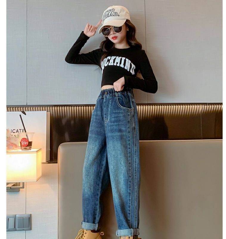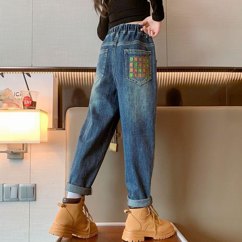 소녀 청바지 봄과 가을 스트레칭 유행 새 어린이 스트레치 한국 슬림 바지 대형 어린이 올매치 당근 바지스토어 가기
