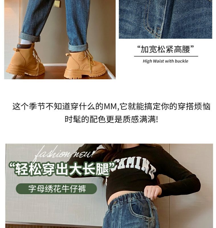 • 뒷면 포켓 자수 레터 스트레치 청바지와 벨벳 버전