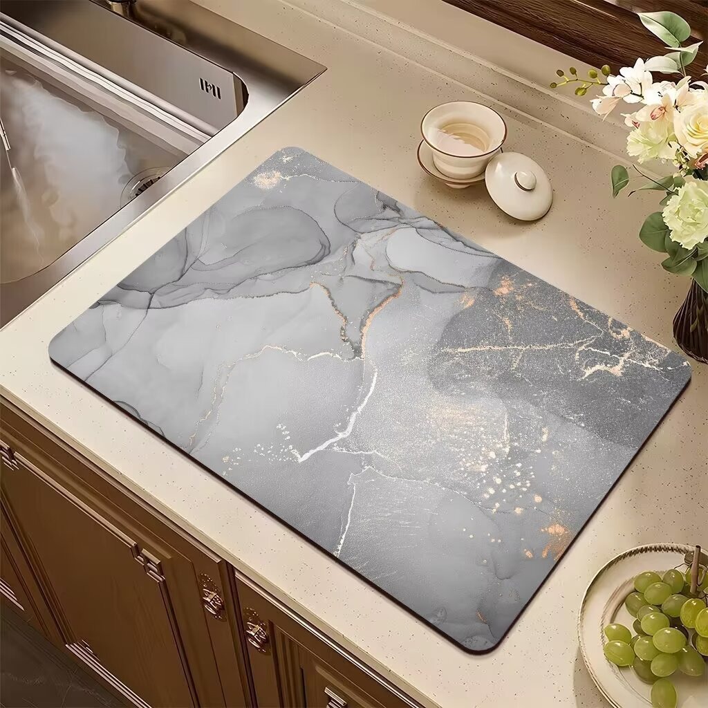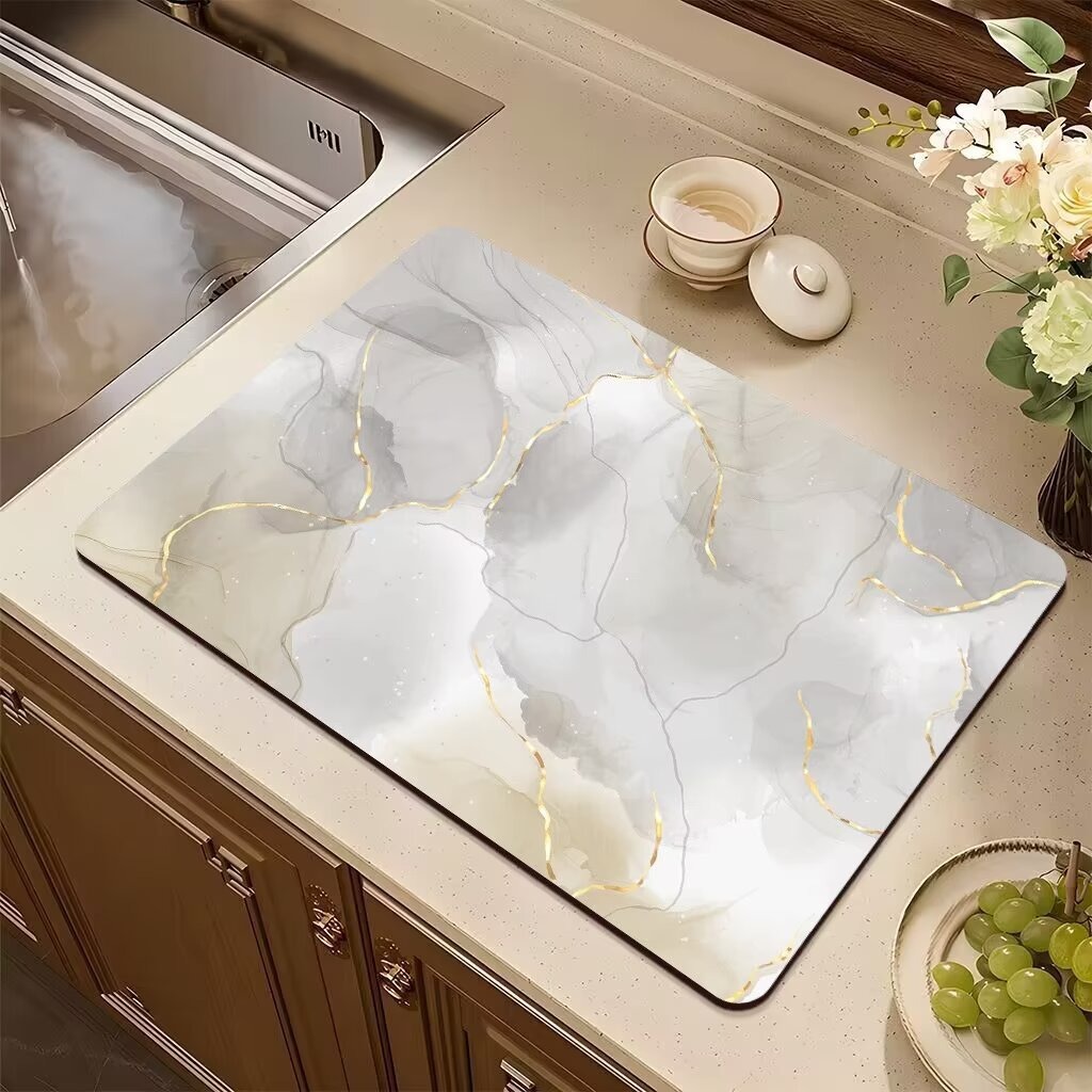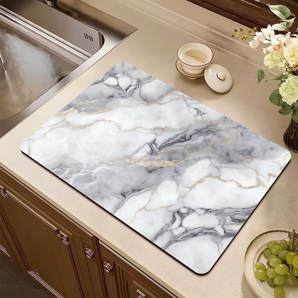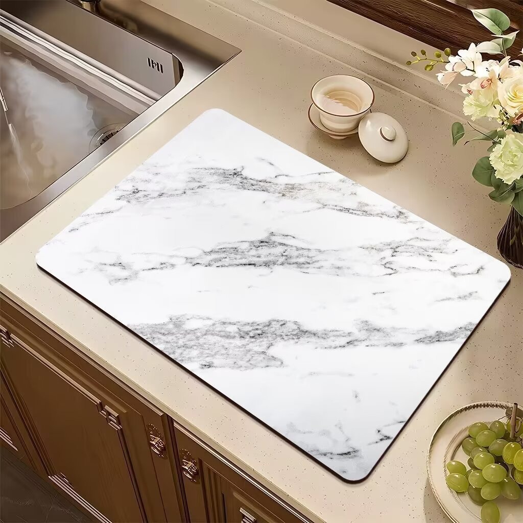 국경 간 대리석 주방 배수 매트 식탁 매트 흡수성 미끄럼 방지 열 절연 가정용 조리대 쉬운 청소 빠른 건조 매트스토어 가기