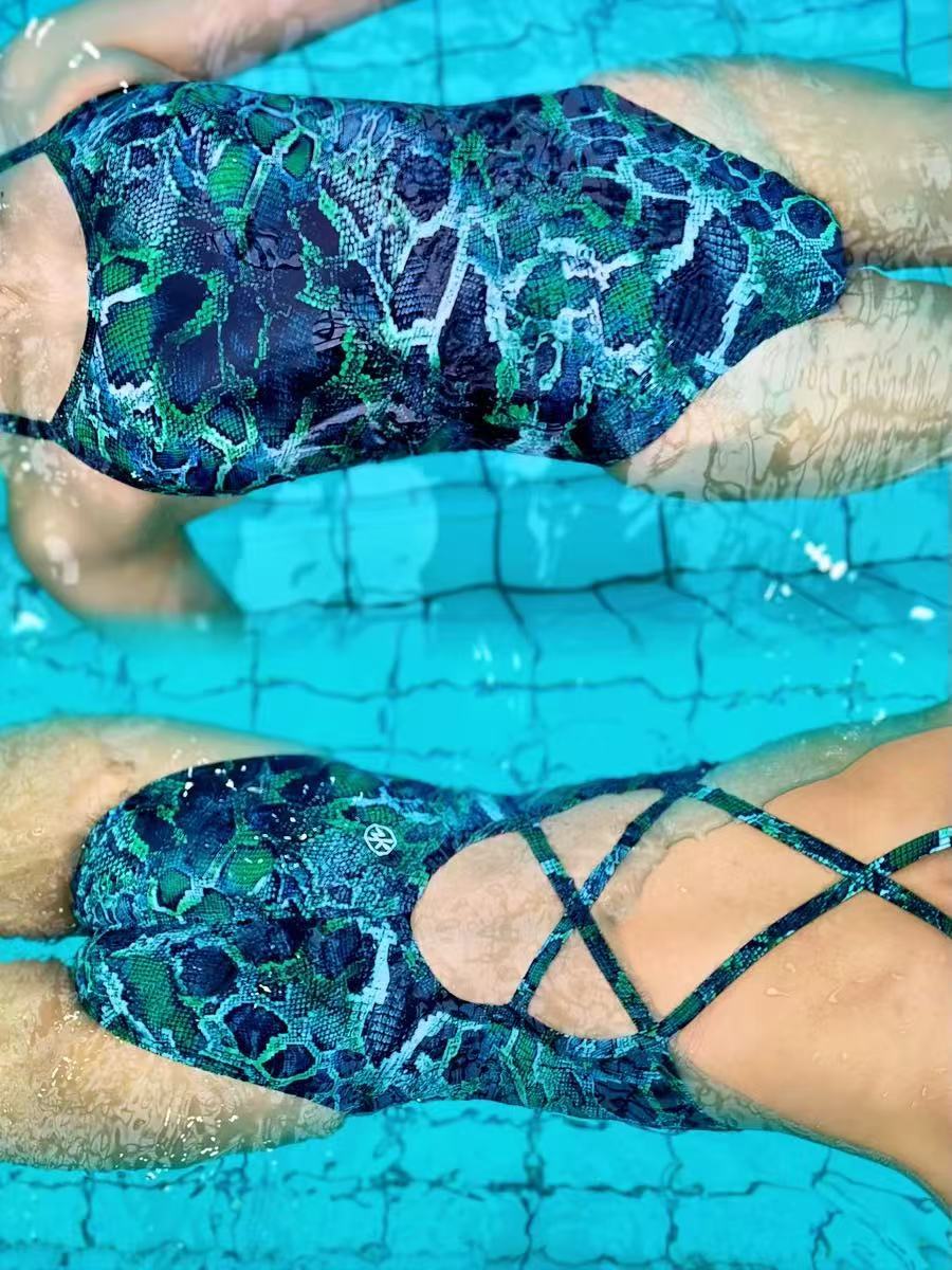 새로운 도착 그린 파이썬 패턴 수영복 여성 전문 결합 삼각형 경쟁 훈련 수영복 섹시한 플러스 사이즈 여성 수영복스토어 가기