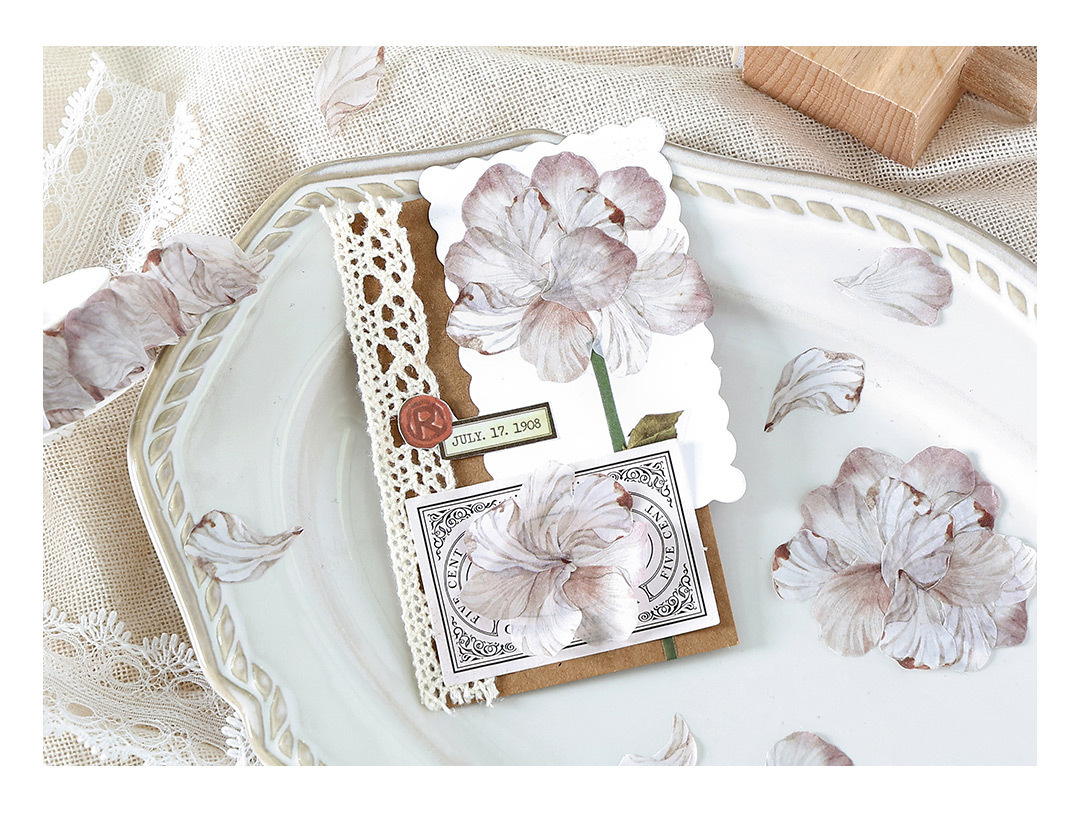 인필. 나 외계인과 종이 모 놀리 식 테이프 들어 본 꽃 이름 시리즈 꽃잎 테마 손 계정 diy 콜라주
