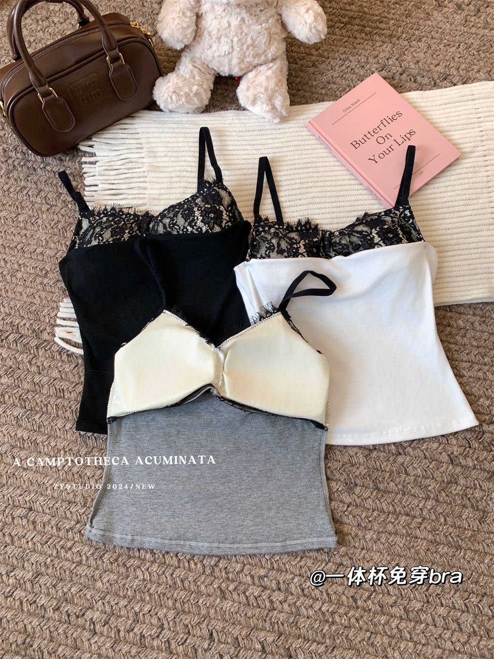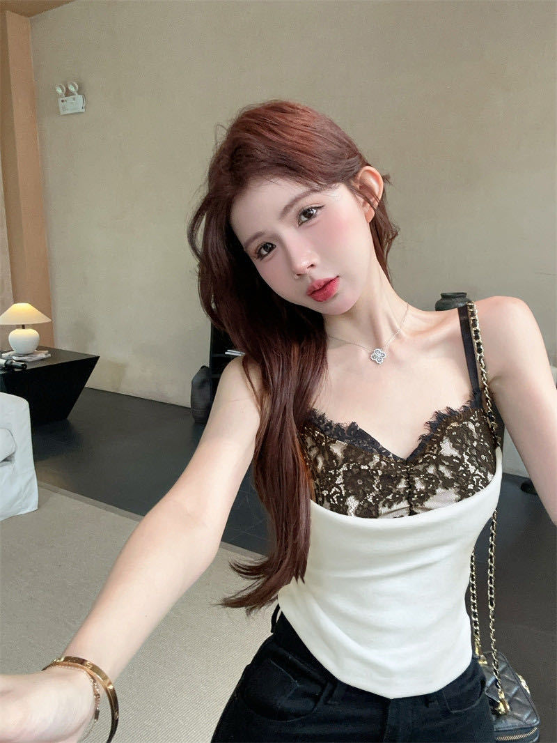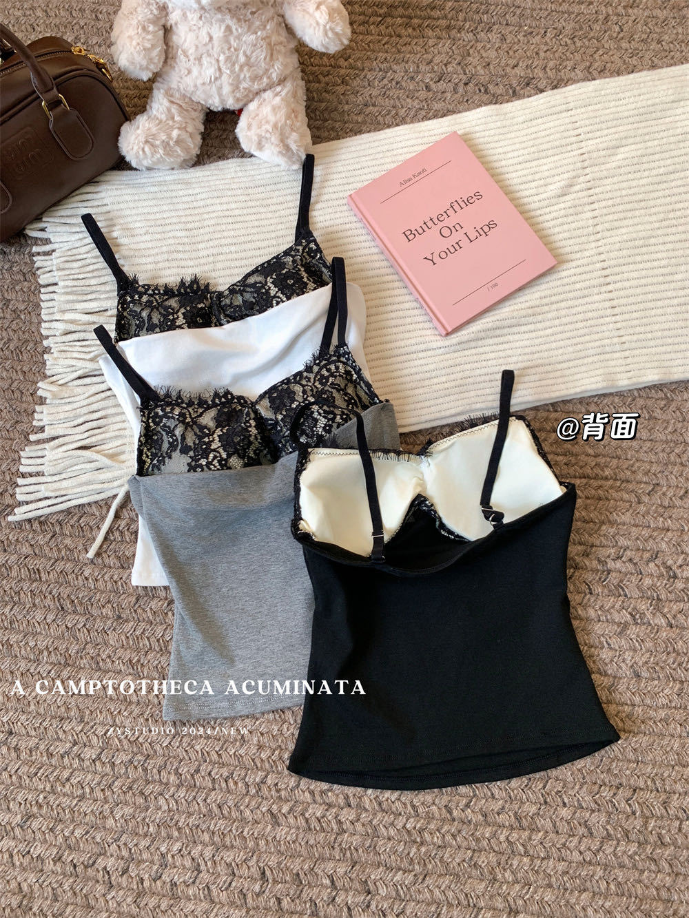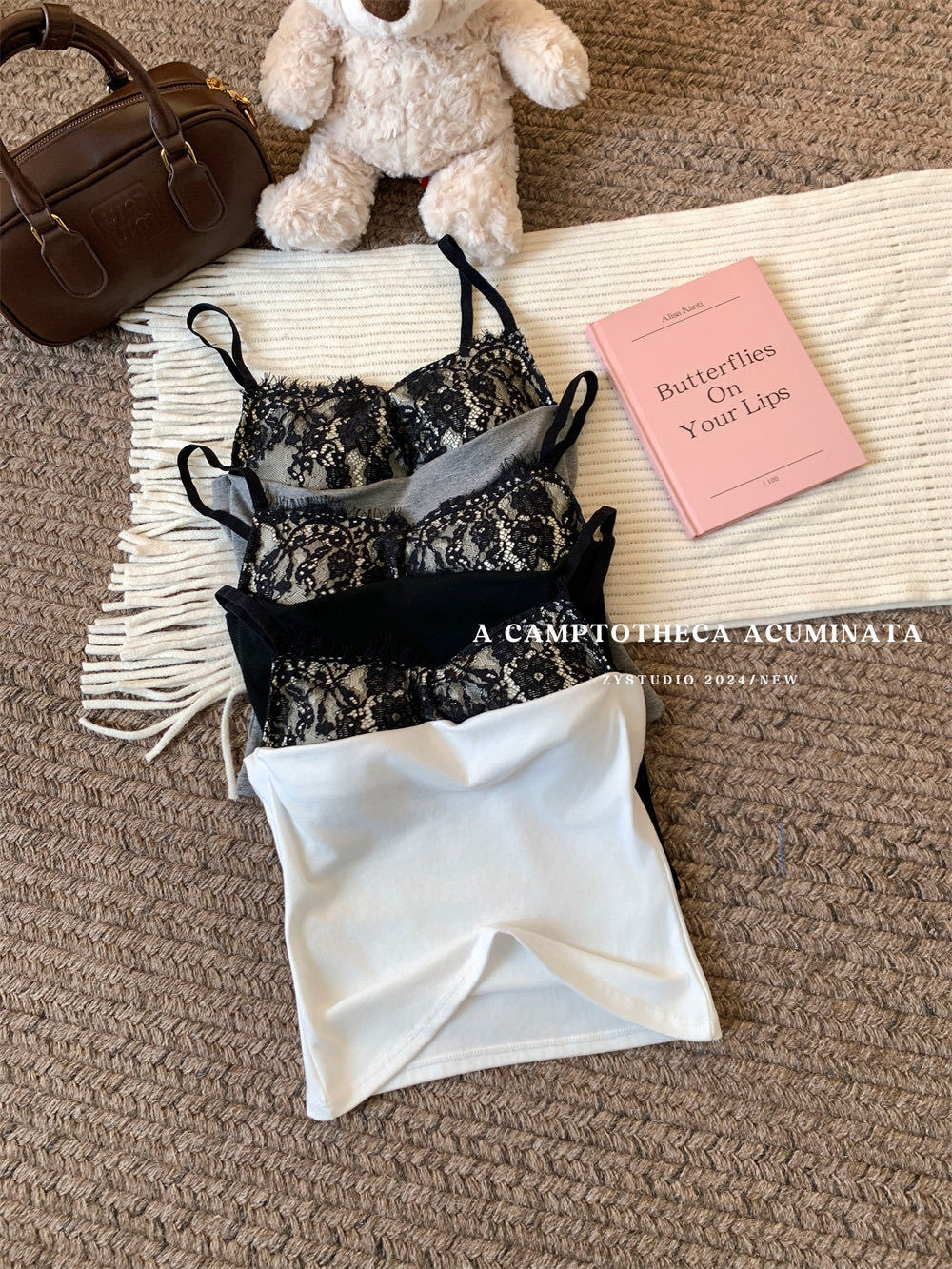 여름 순수한 섹시한 레이스 바느질 카미솔 조끼 여성 디자인 작은 아름다운 뒤 내부 봄과 가을 스파이스 소녀 튜브 탑