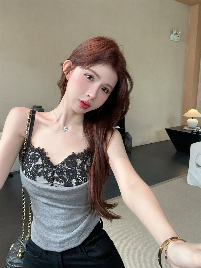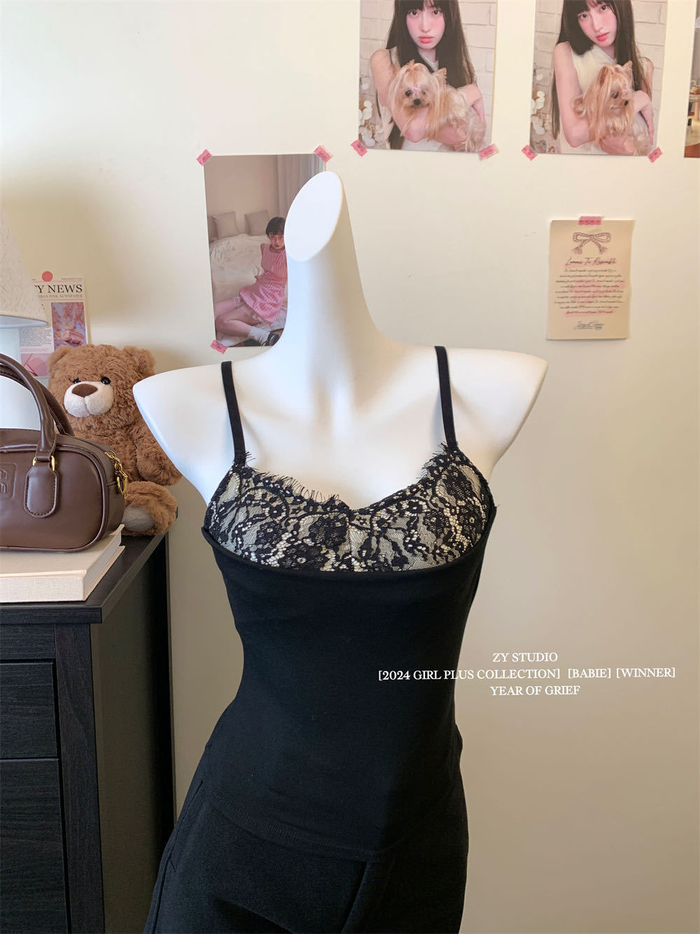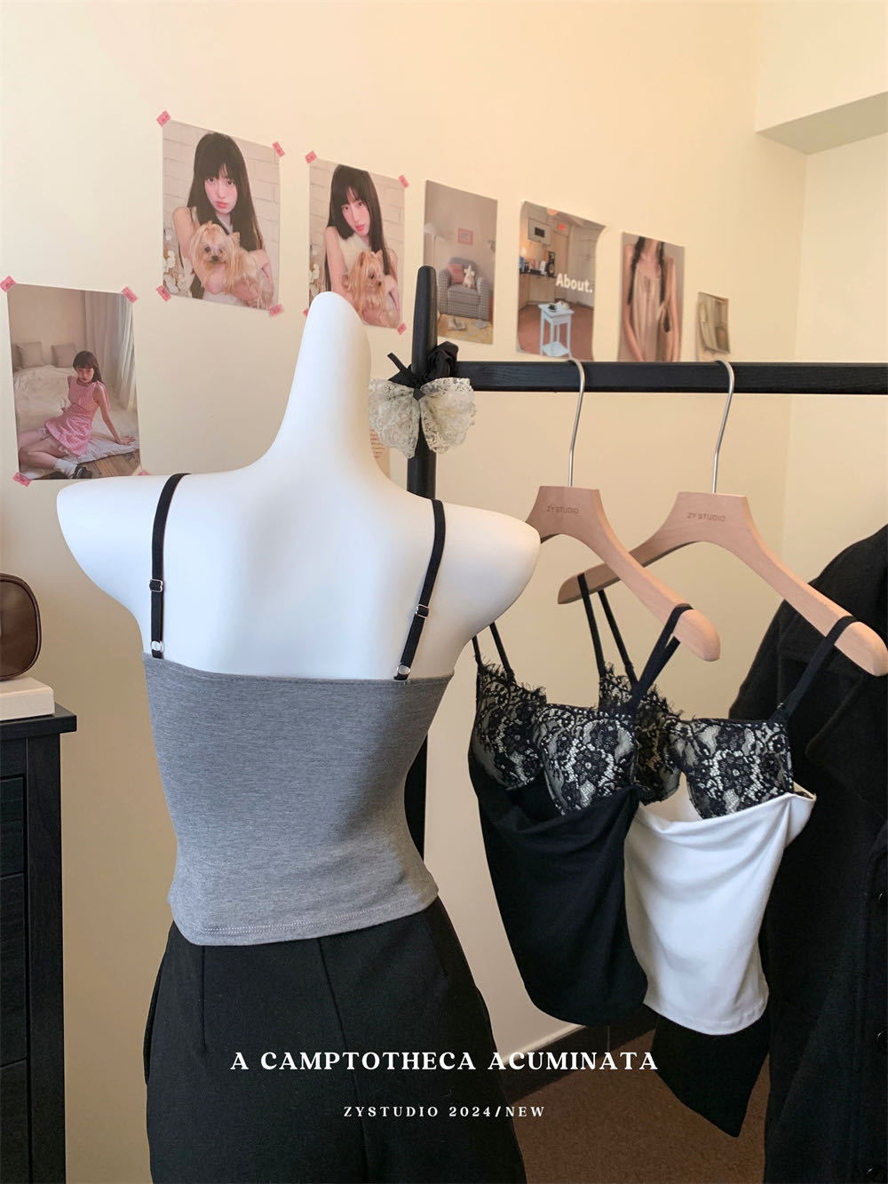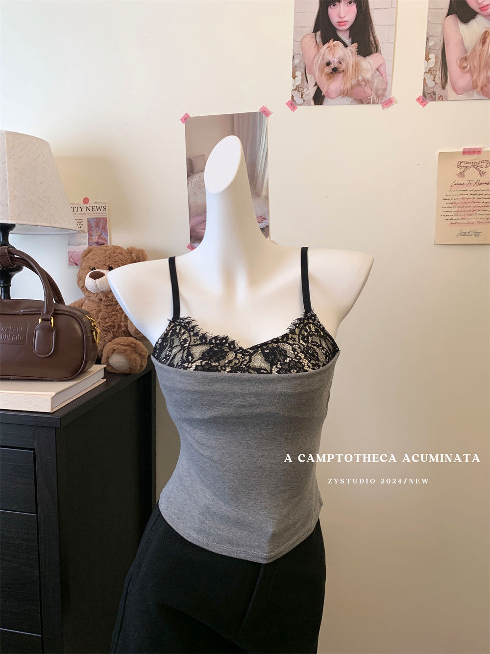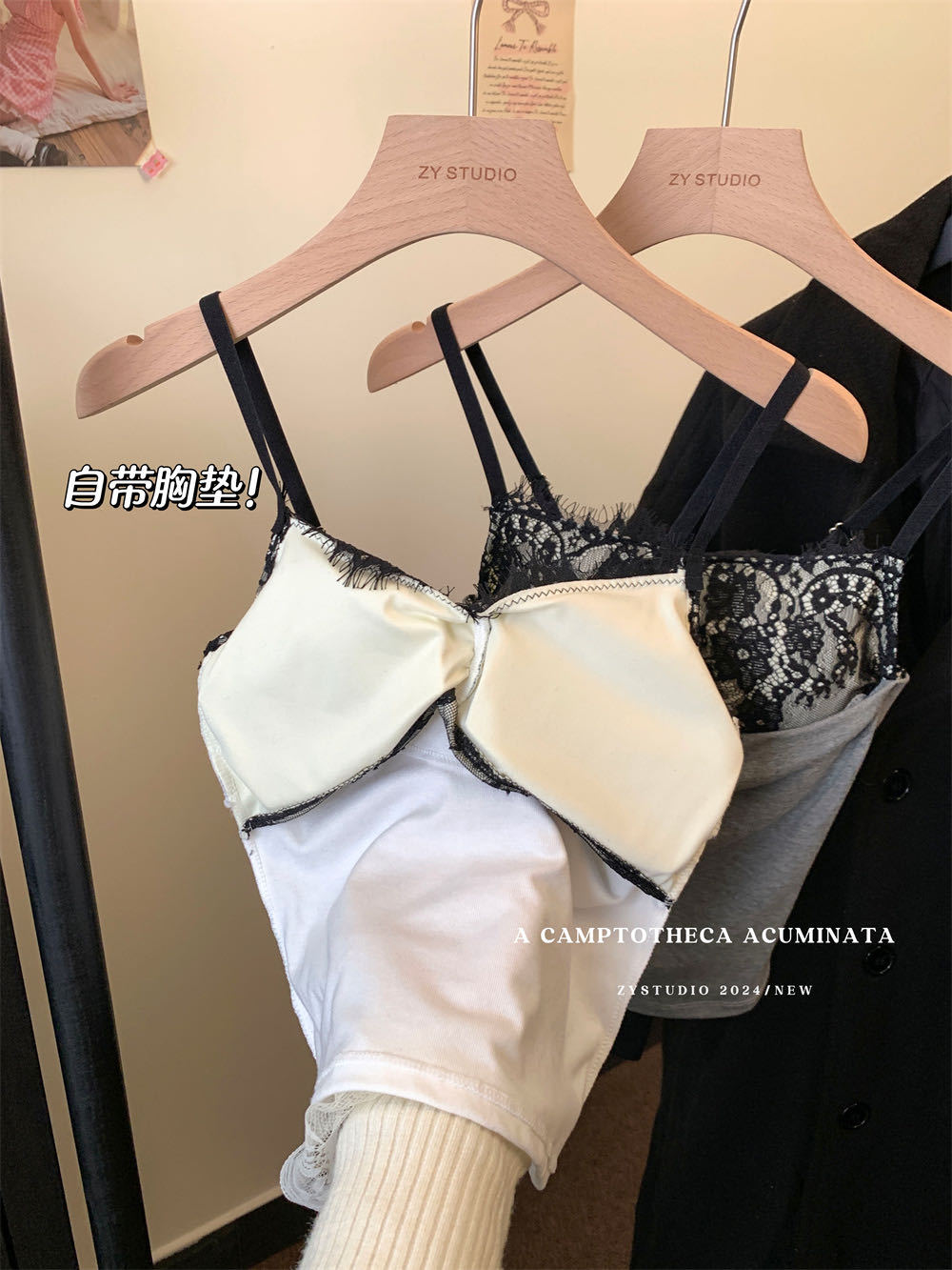 여름 순수한 섹시한 레이스 바느질 카미솔 조끼 여성 디자인 작은 아름다운 뒤 내부 봄과 가을 스파이스 소녀 튜브 탑