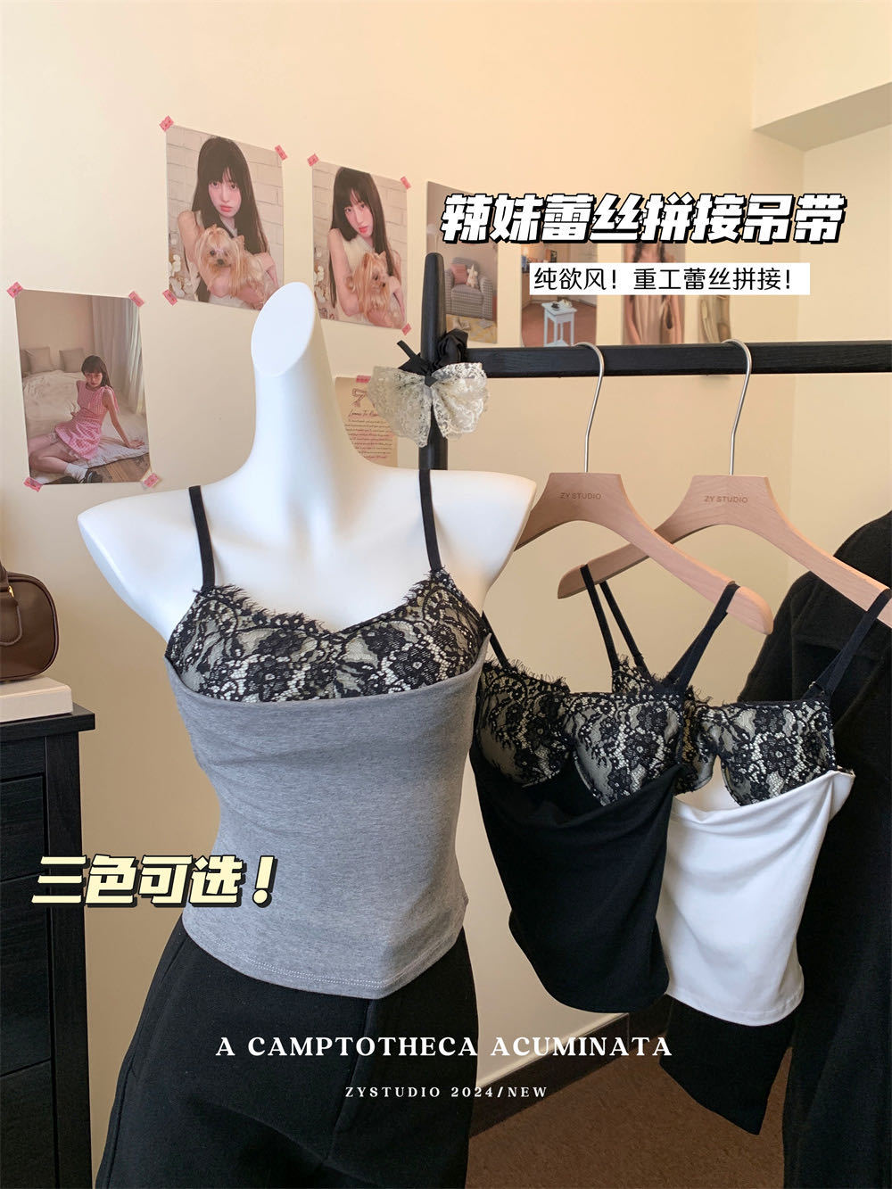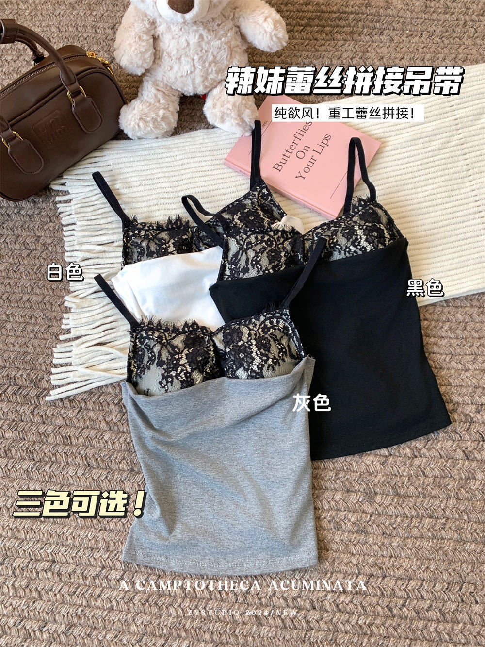 여름 순수한 섹시한 레이스 바느질 카미솔 조끼 여성 디자인 작은 아름다운 뒤 내부 봄과 가을 스파이스 소녀 튜브 탑스토어 가기