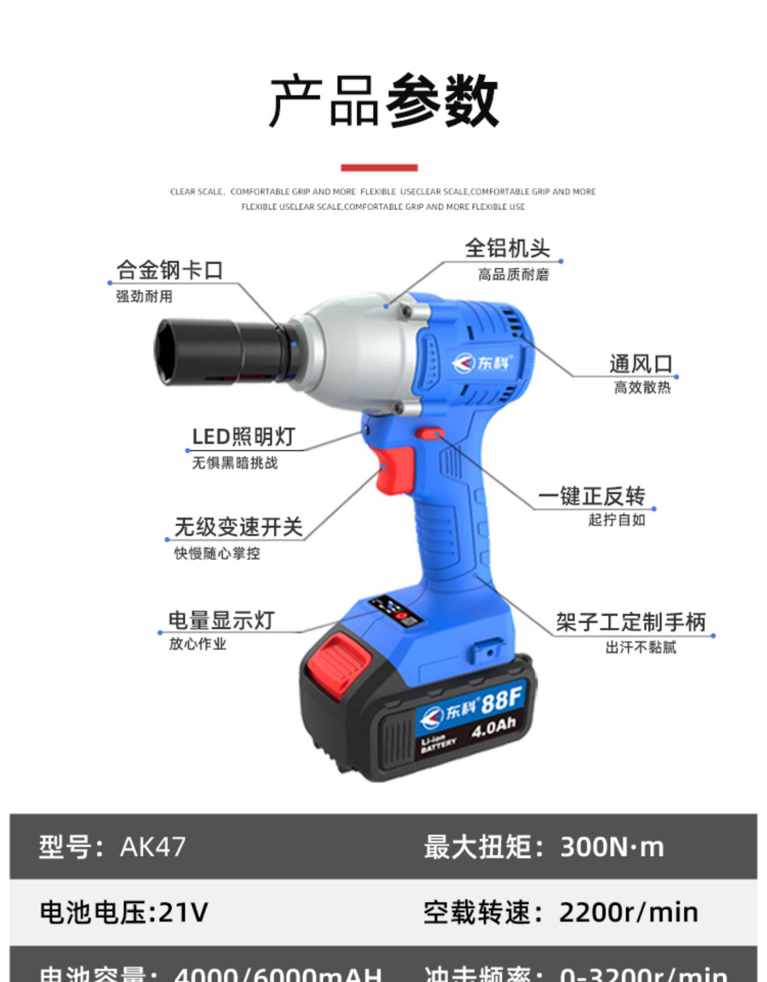 동케 충전식 전기 렌치 브러시리스 모터 대형 토크 전기 렌치 비계 목공 특수 자동 유지 보수