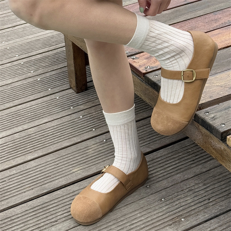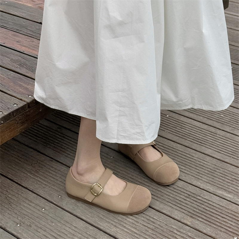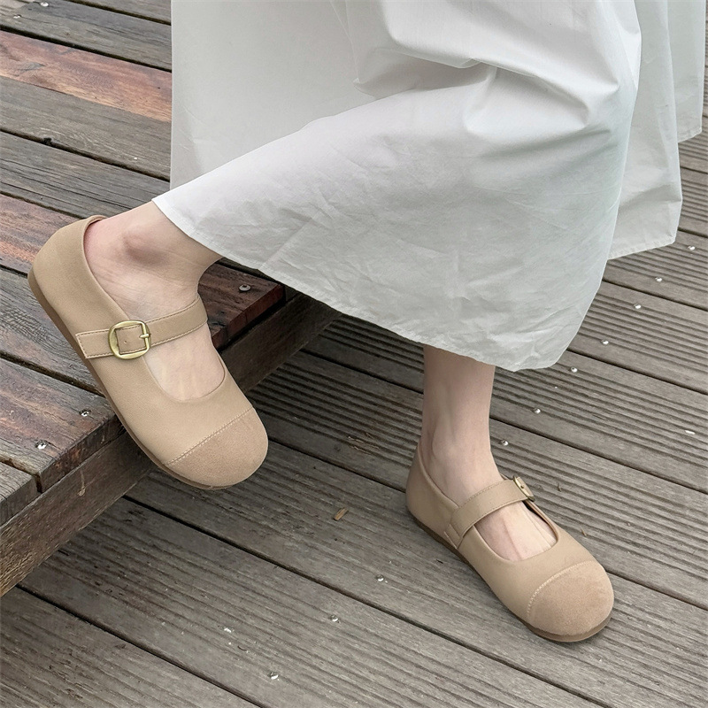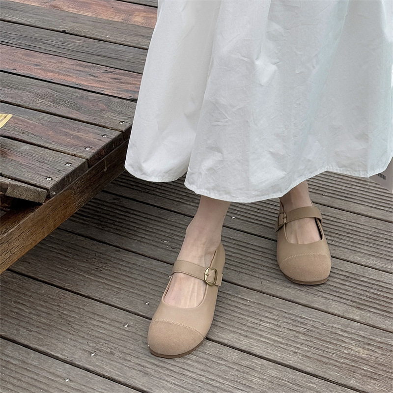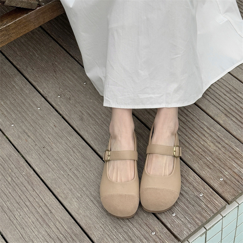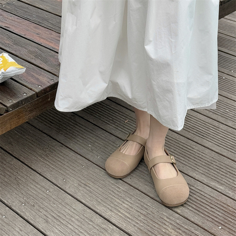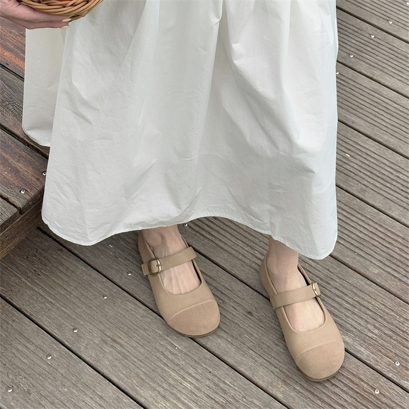 나비 오 니치 라운드 머리 바느질 편안한 얕은 입 싱글 레이어 신발 한국식 레트로 올매치 한 캐릭터 버클 벨트 메리 제인 플랫 신발스토어 가기