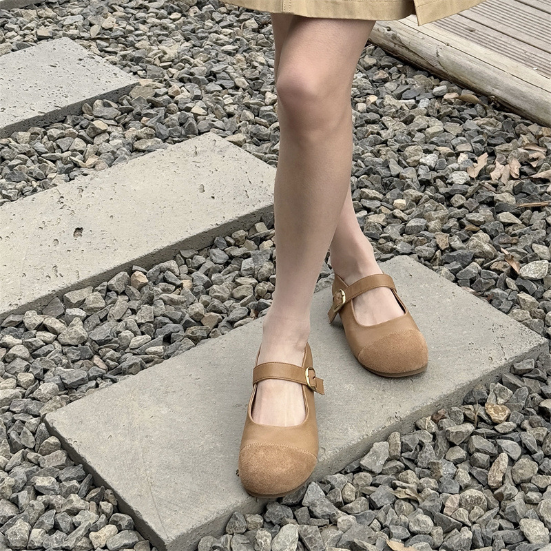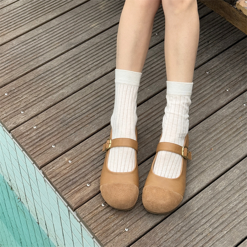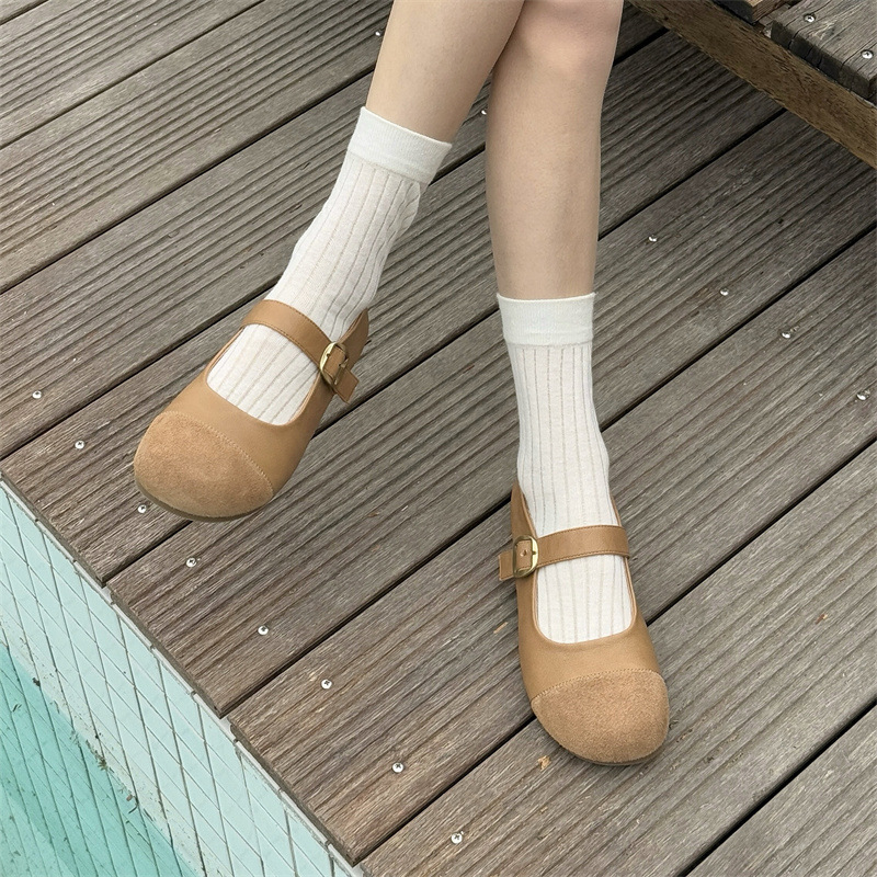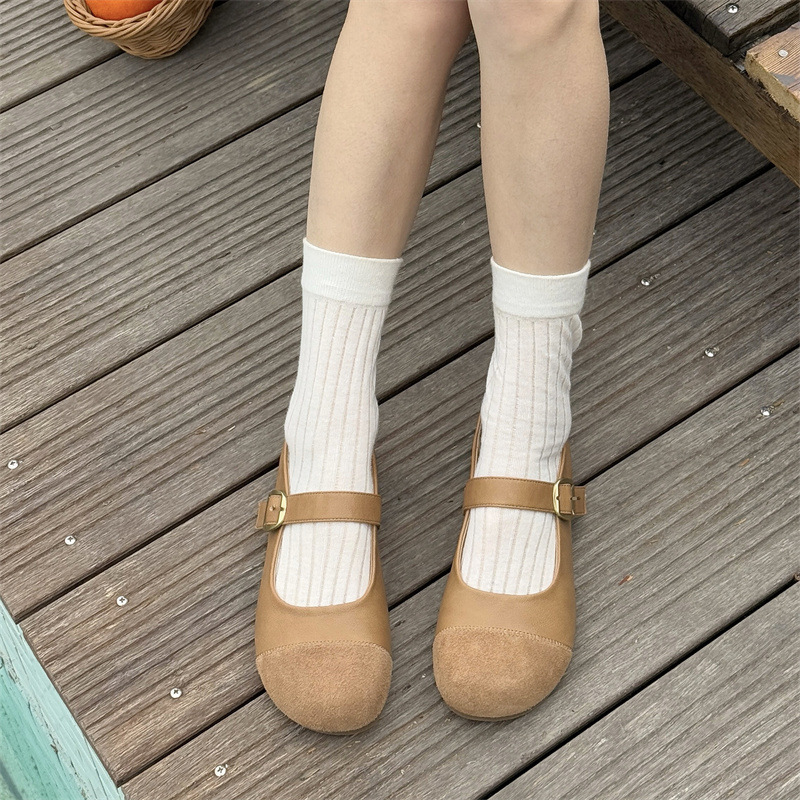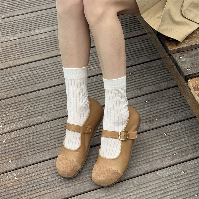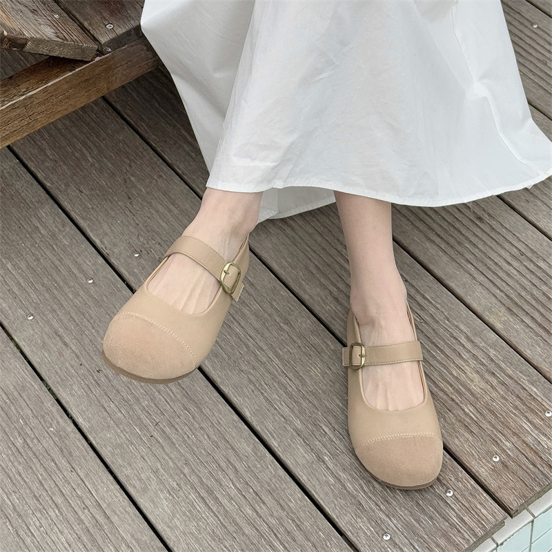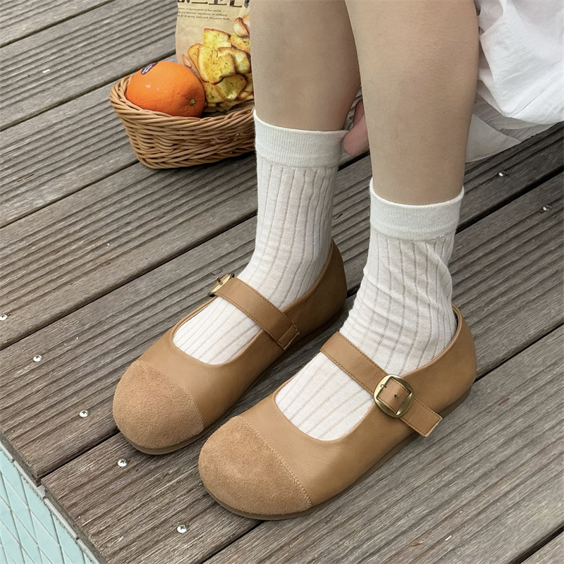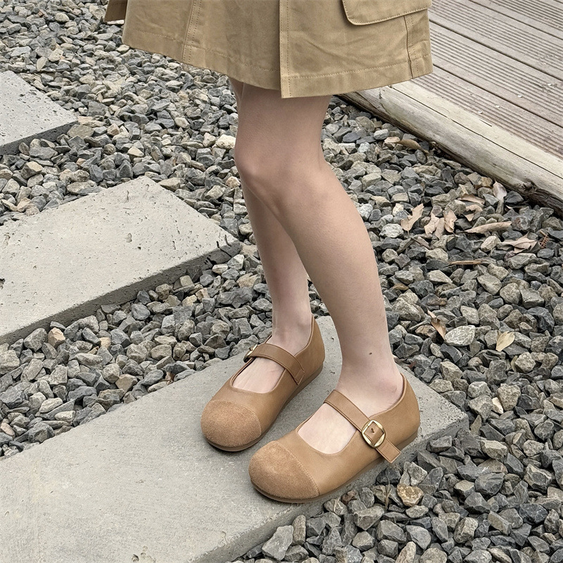 나비 오 니치 라운드 머리 바느질 편안한 얕은 입 싱글 레이어 신발 한국식 레트로 올매치 한 캐릭터 버클 벨트 메리 제인 플랫 신발스토어 가기
