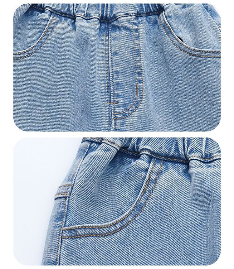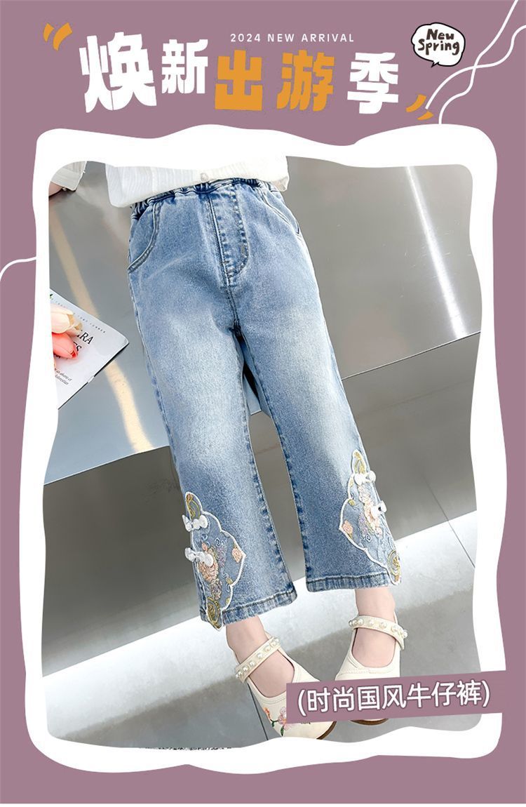 소녀 바지 2025 봄 새 스타일 프라이드 스트리트 어린이 새로운 중국 스타일 국가 스타일 경적 바지 아기 소녀 청바지 봄과 여름스토어 가기