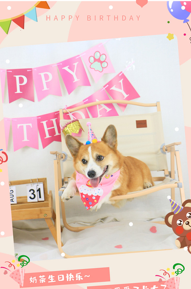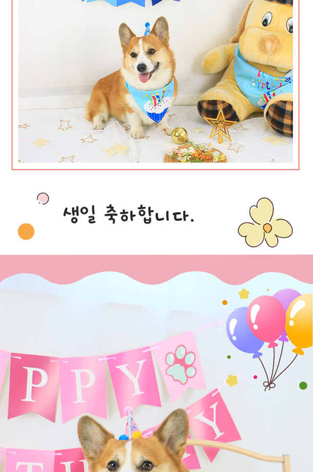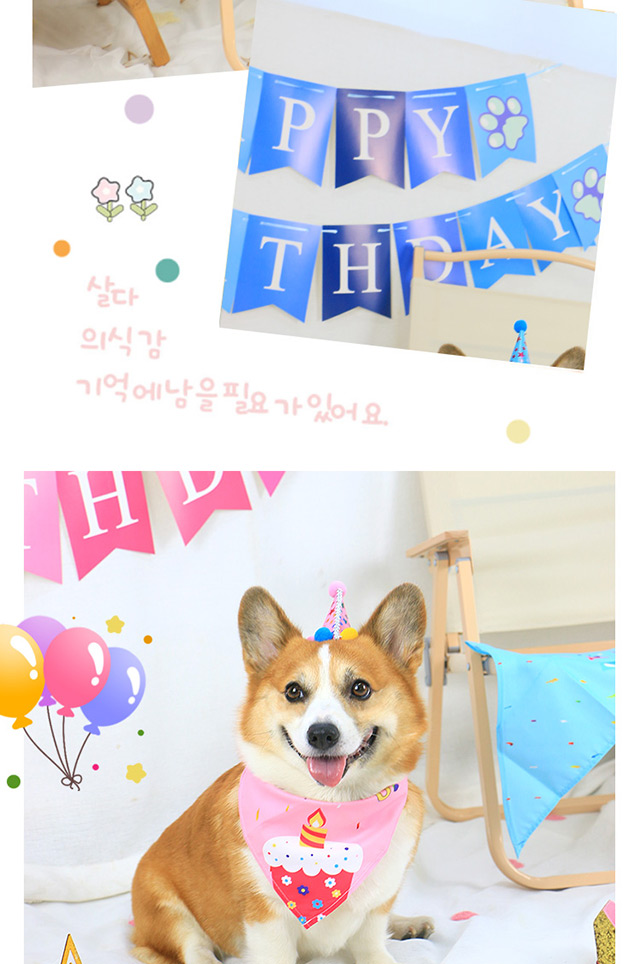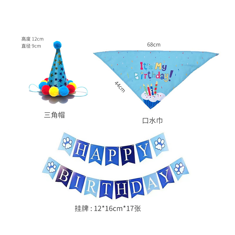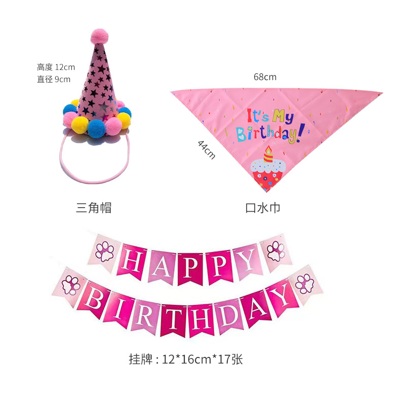 애완 동물 개 생일 모자 장식 장면 레이아웃 턱받이 헤드웨어 원피스 세트 생일 모자 테디 삼각형 수건