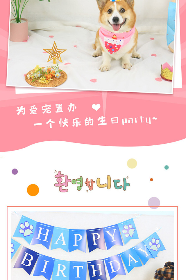 애완 동물 개 생일 모자 장식 장면 레이아웃 턱받이 헤드웨어 원피스 세트 생일 모자 테디 삼각형 수건스토어 가기