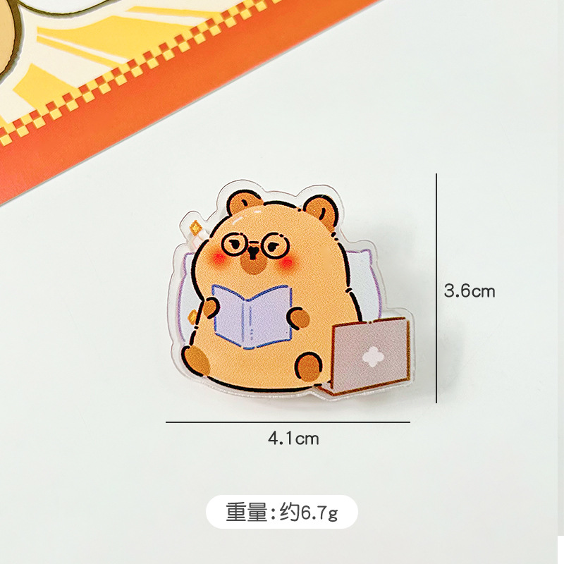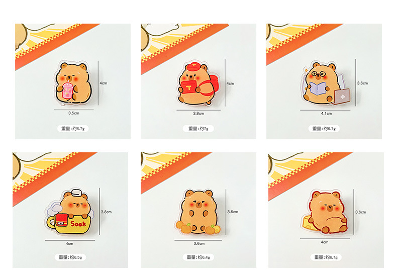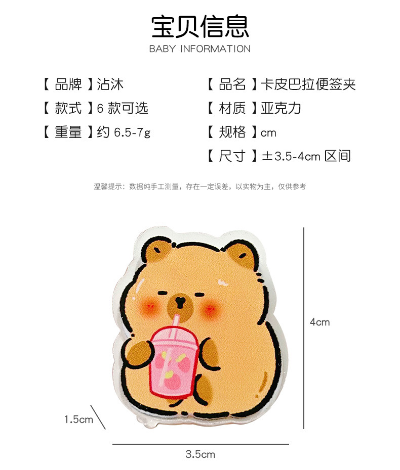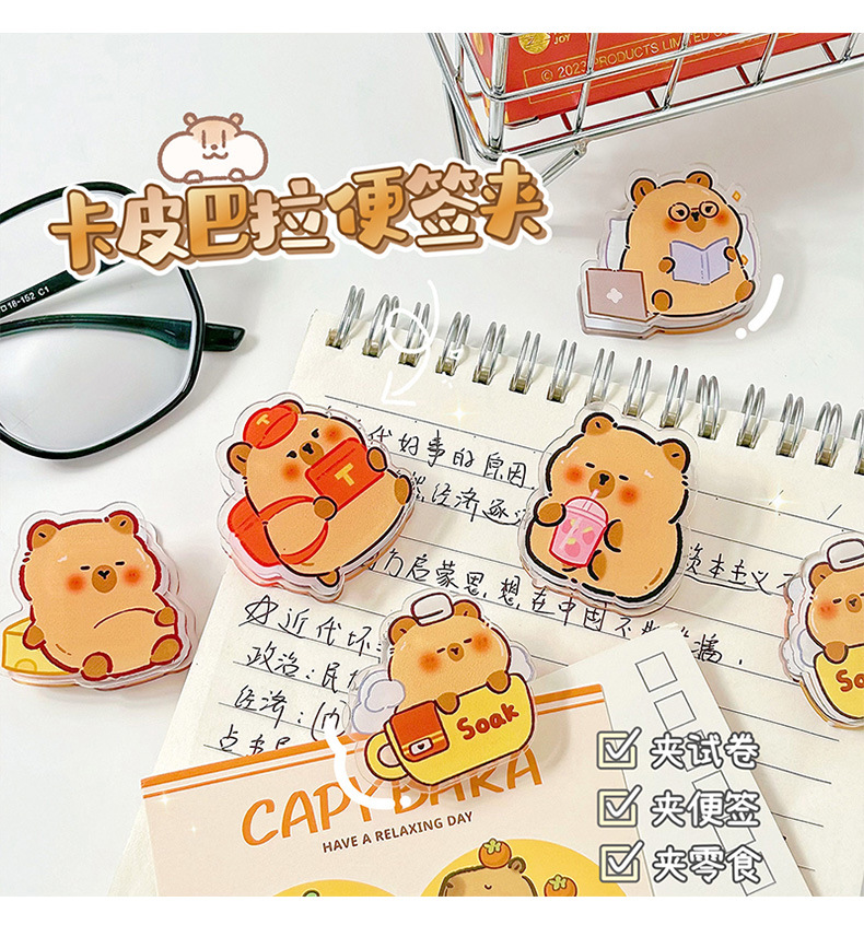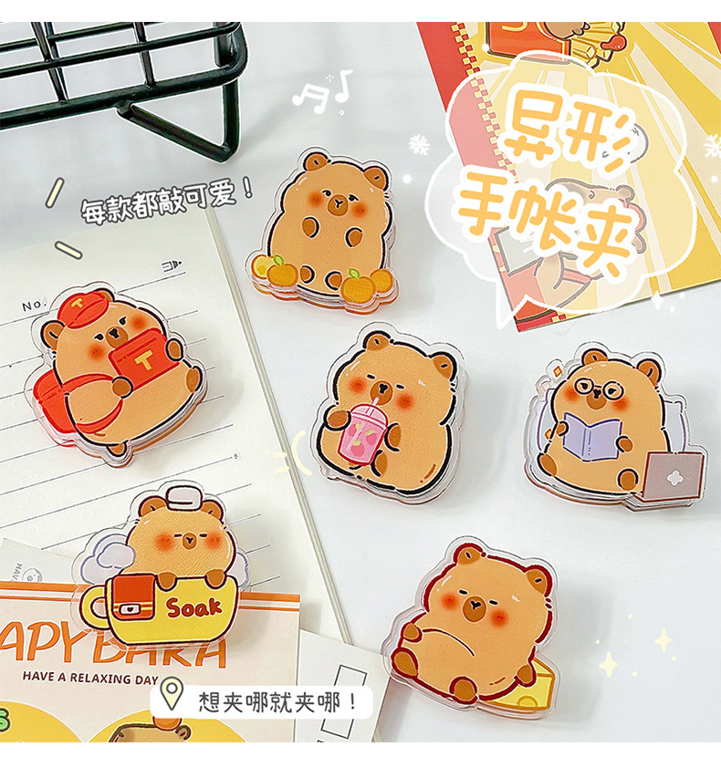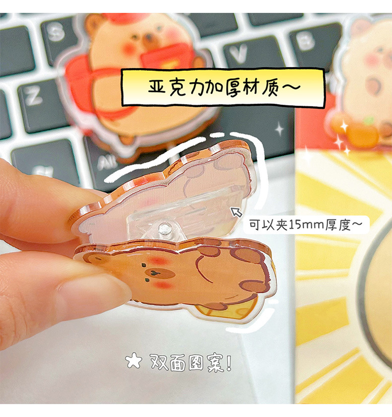 사랑스러운 Capibala Puffer 아크릴 PP 클립 학생 손 계정 노트 테스트 종이 클립 스낵 밀봉 클립